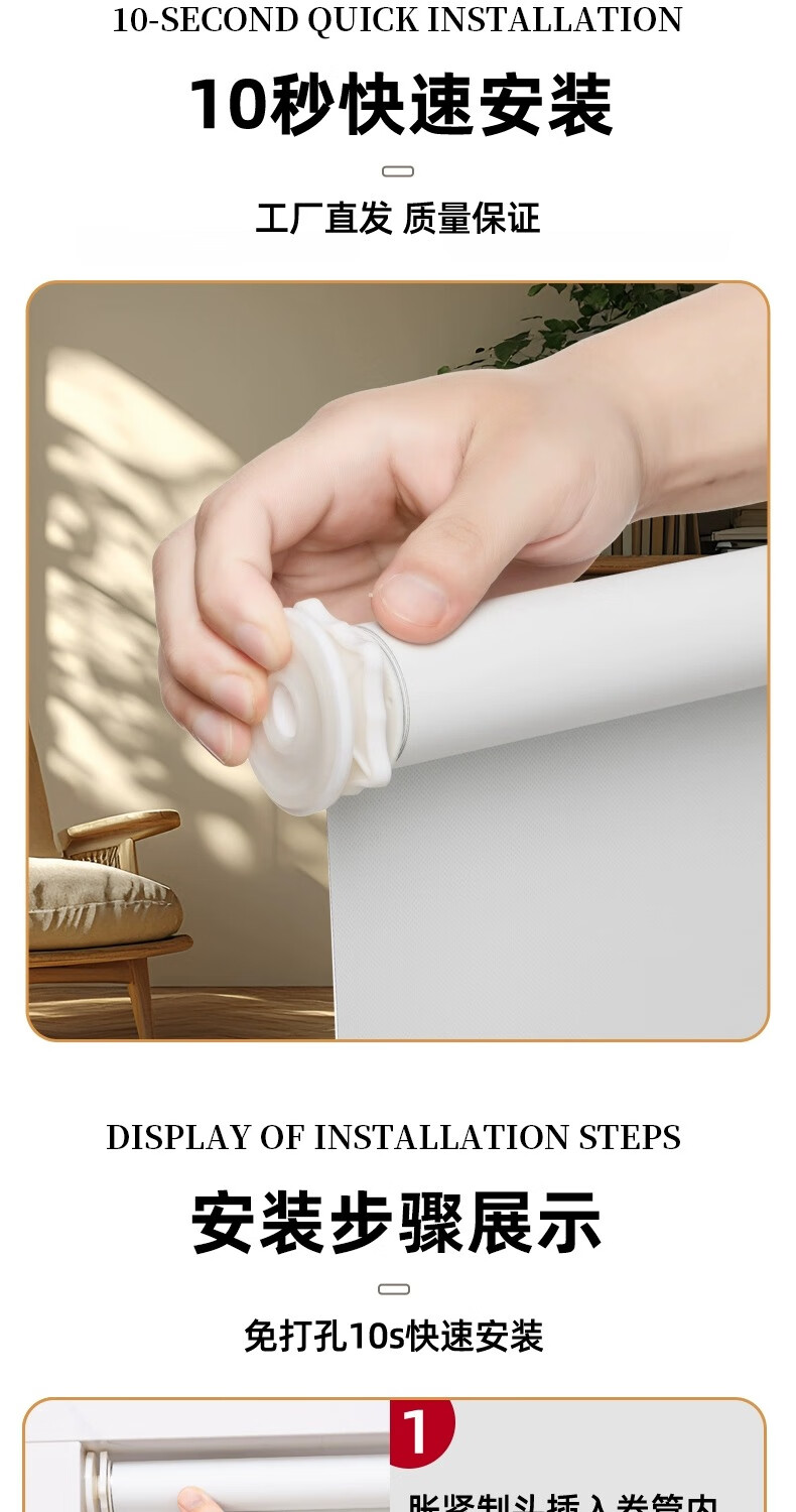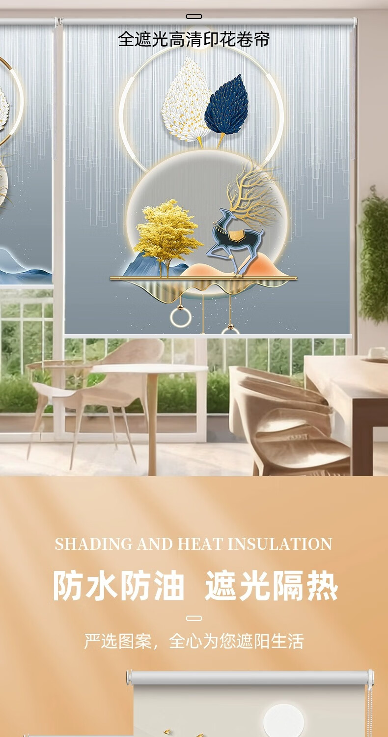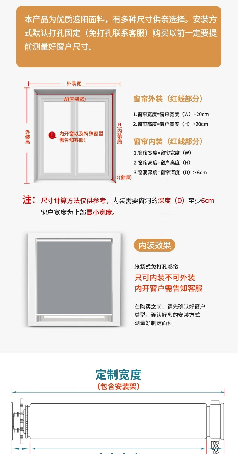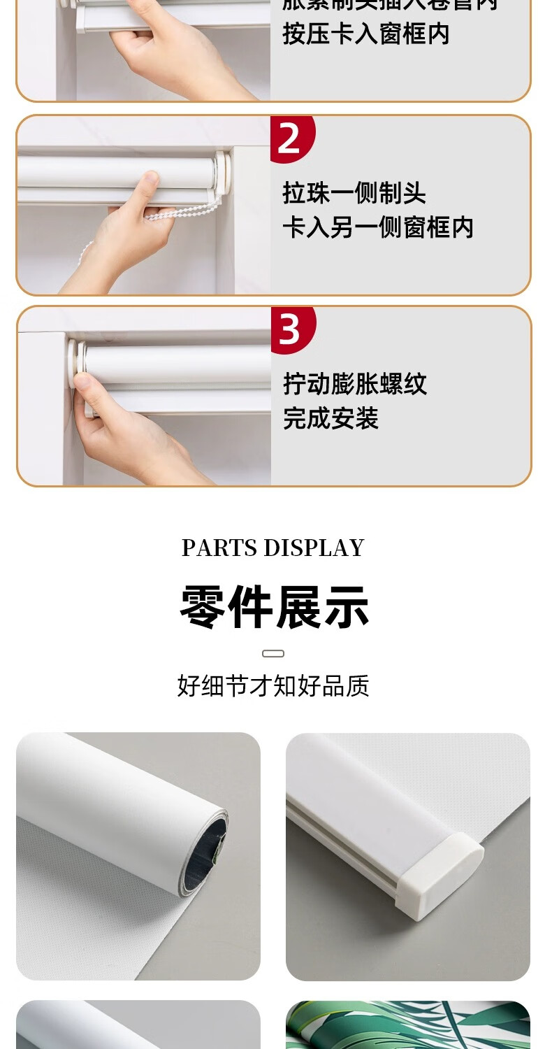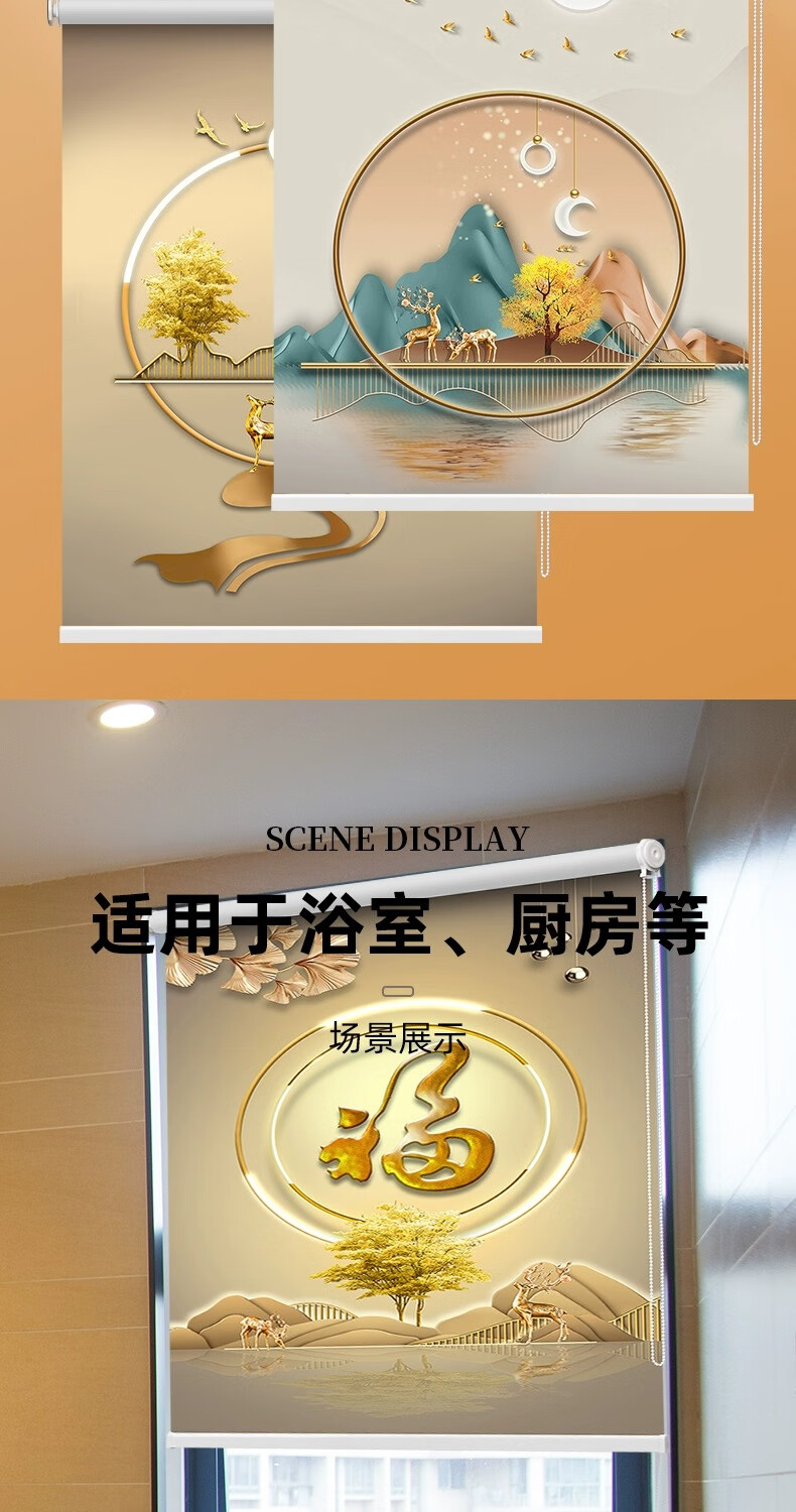 舟裕免打孔安装厨房卧室卫生间窗帘全遮光防水卷拉式遮阳帘新款遮挡帘 qc-10号图 加厚半遮光 平米