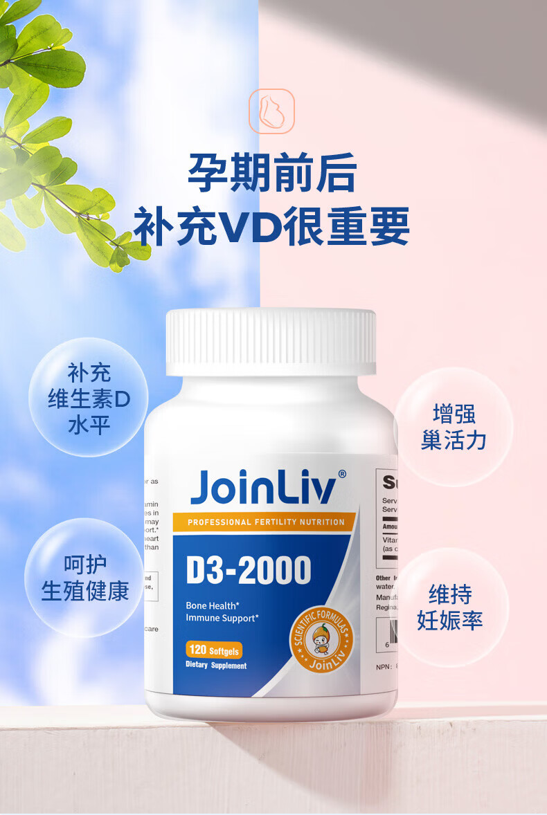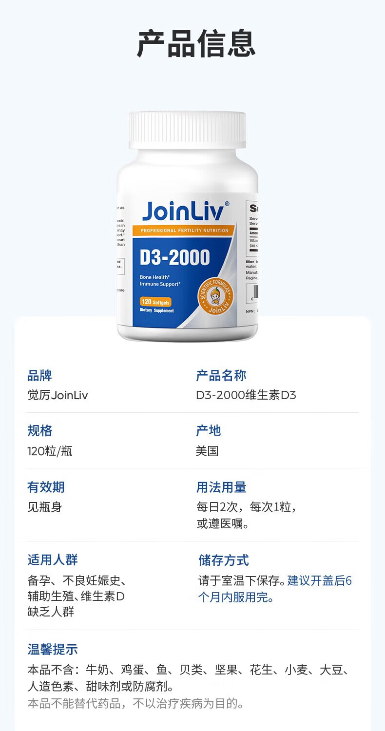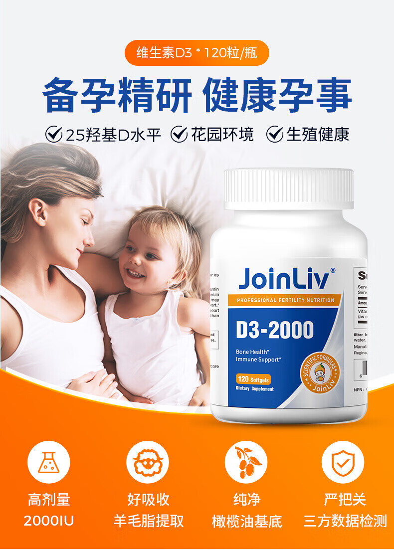 JOINLIV觉厉维生素D3-2000IU 120粒 备孕孕妇营养维生素必备 120粒*1瓶