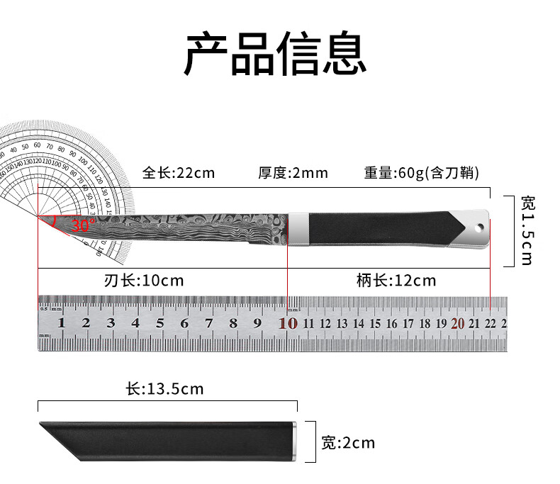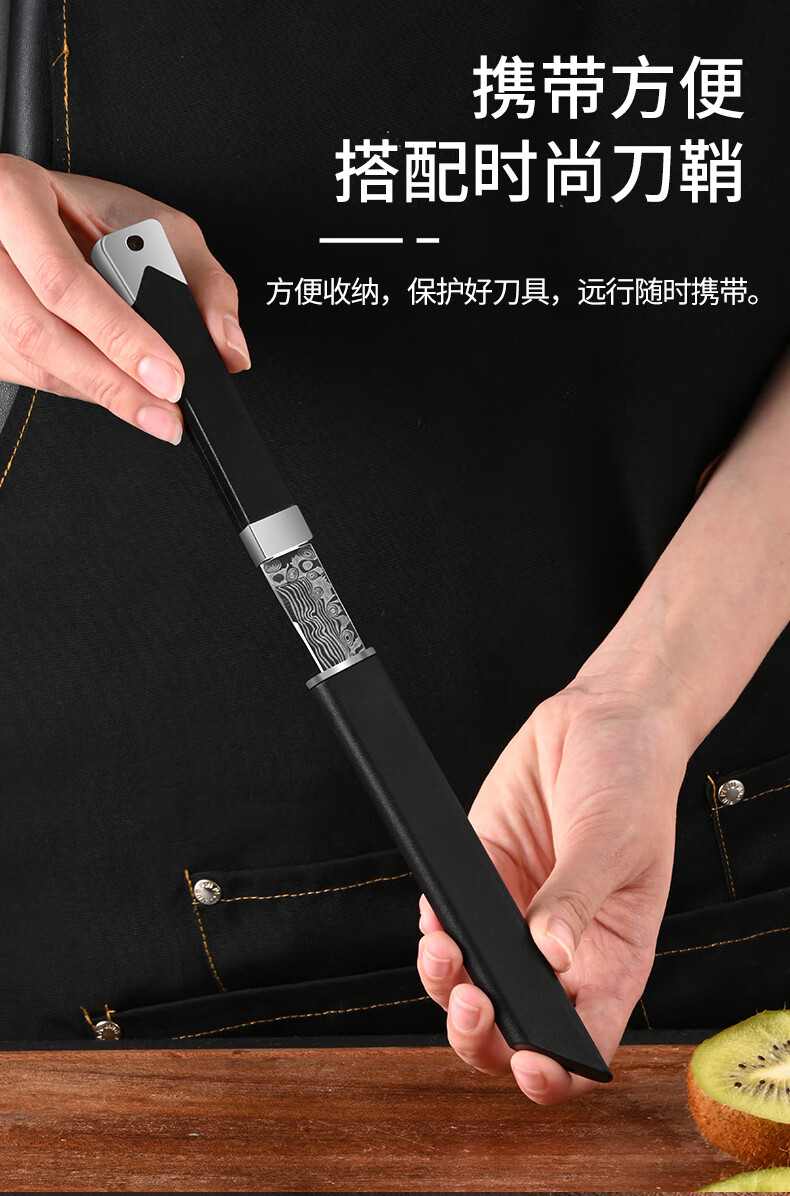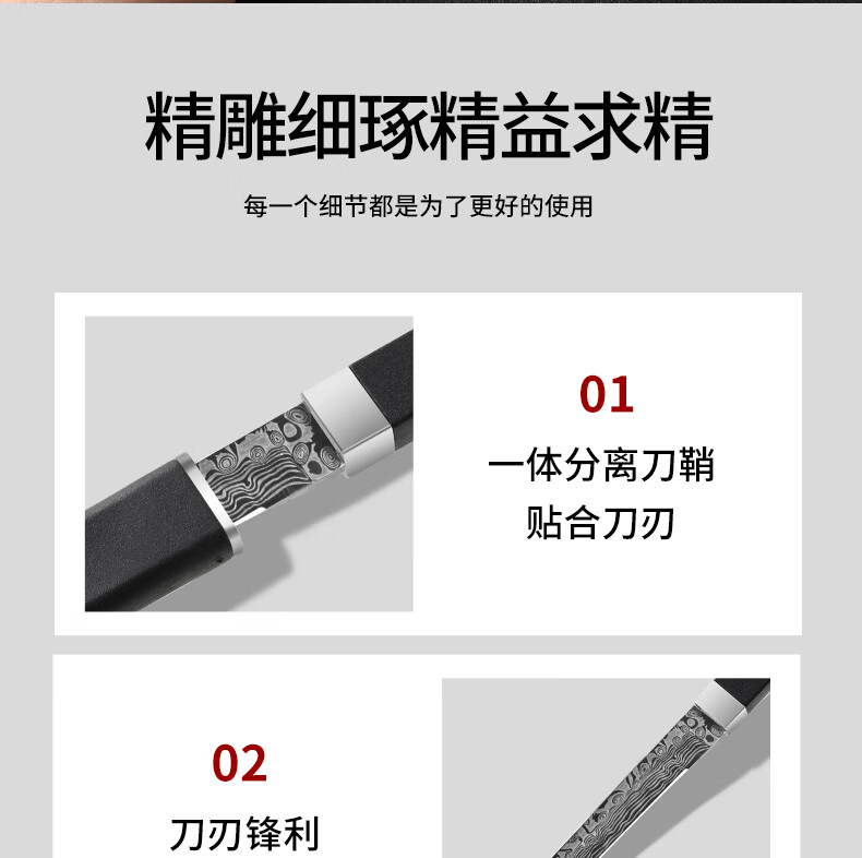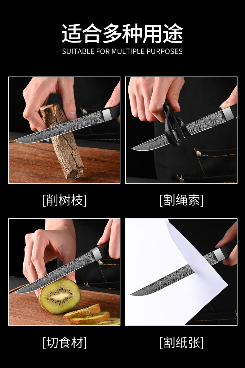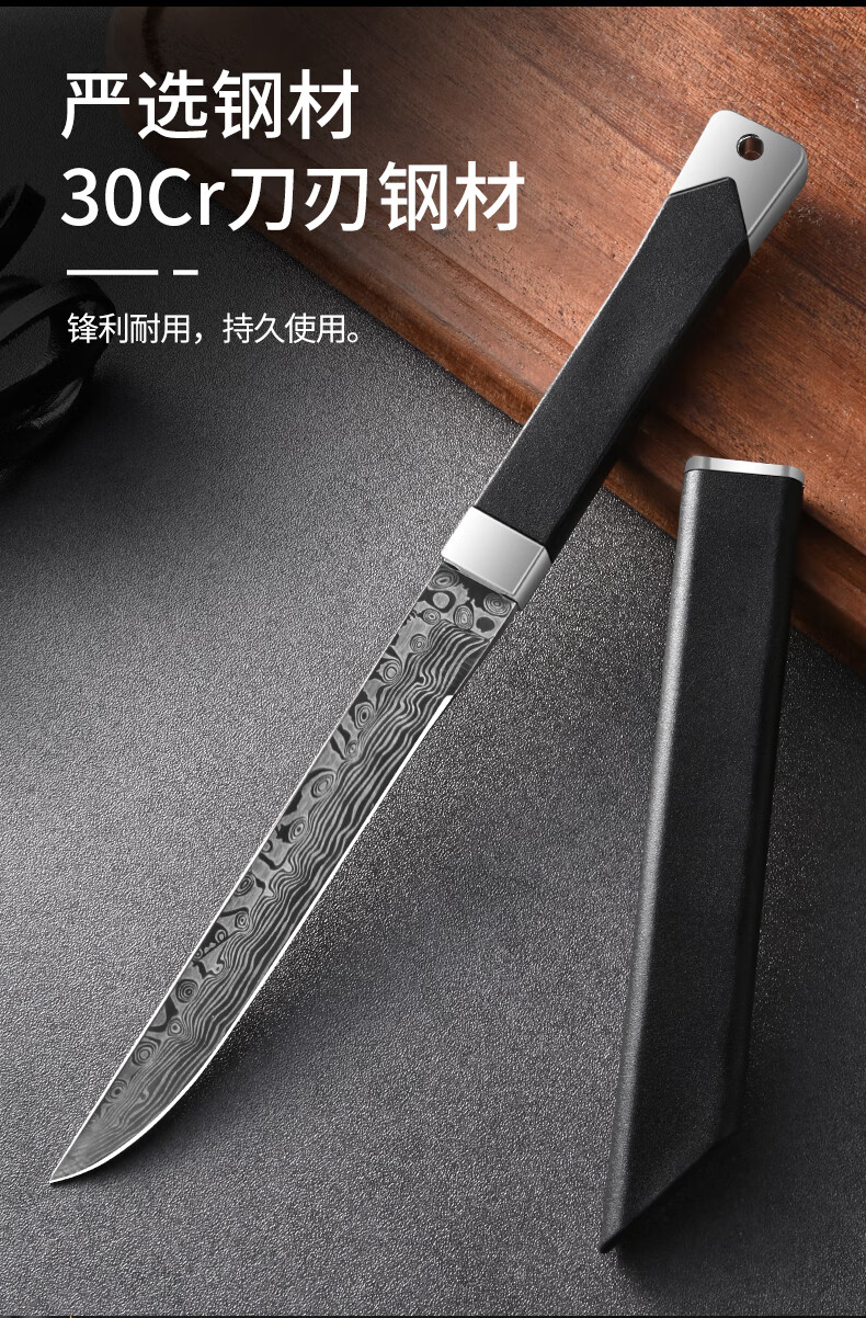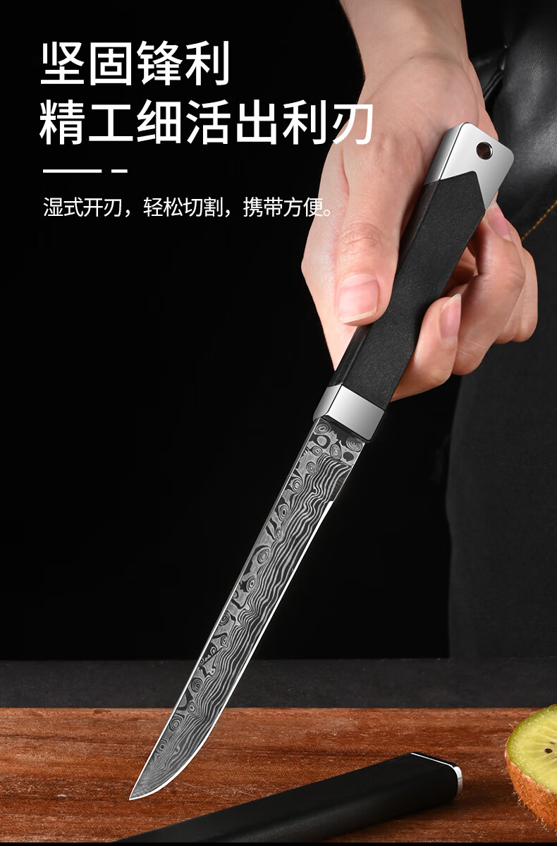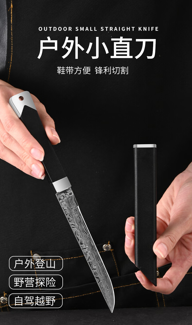 兴刃大马士革纹水果刀家用多功能小刀高硬度锋利户外直刀随身便携刀具 大马士革纹小直刀