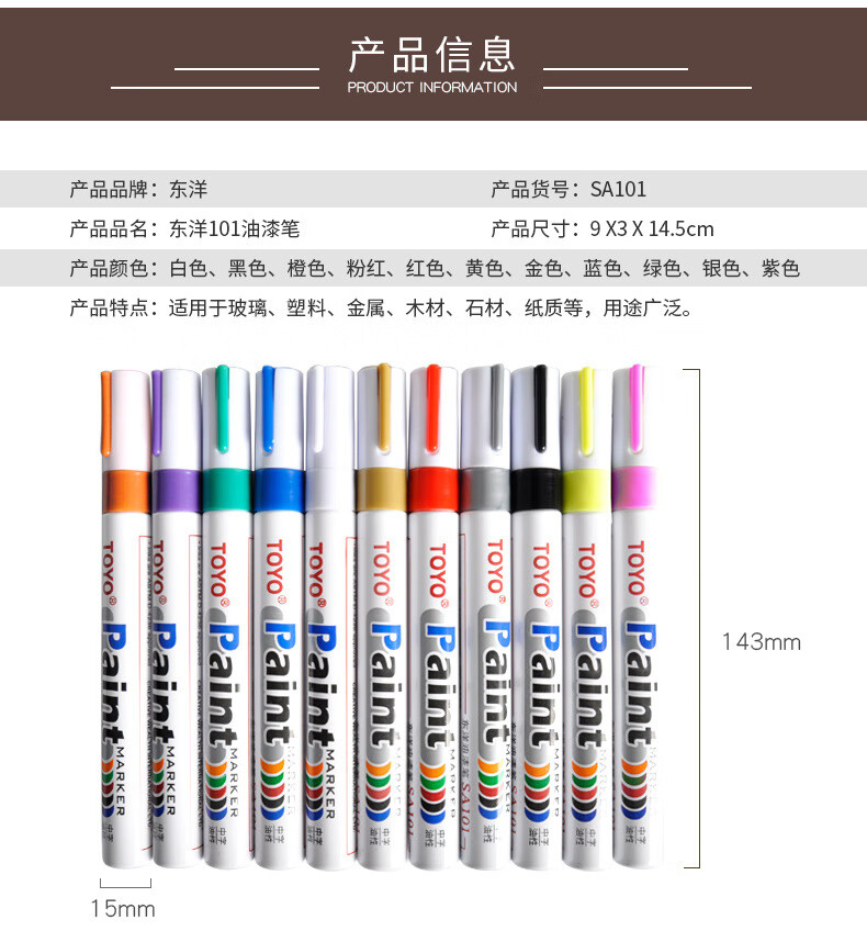 东洋【甄选厂家】SA101中字油漆笔 记号笔 补漆笔广告签名笔 红色