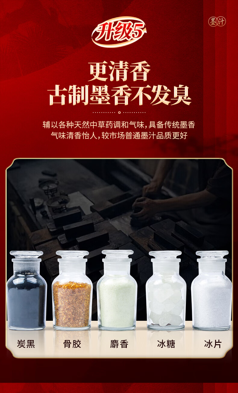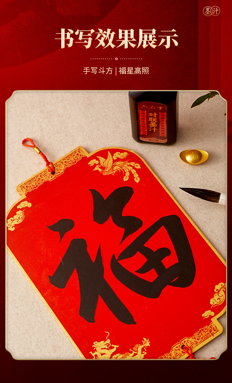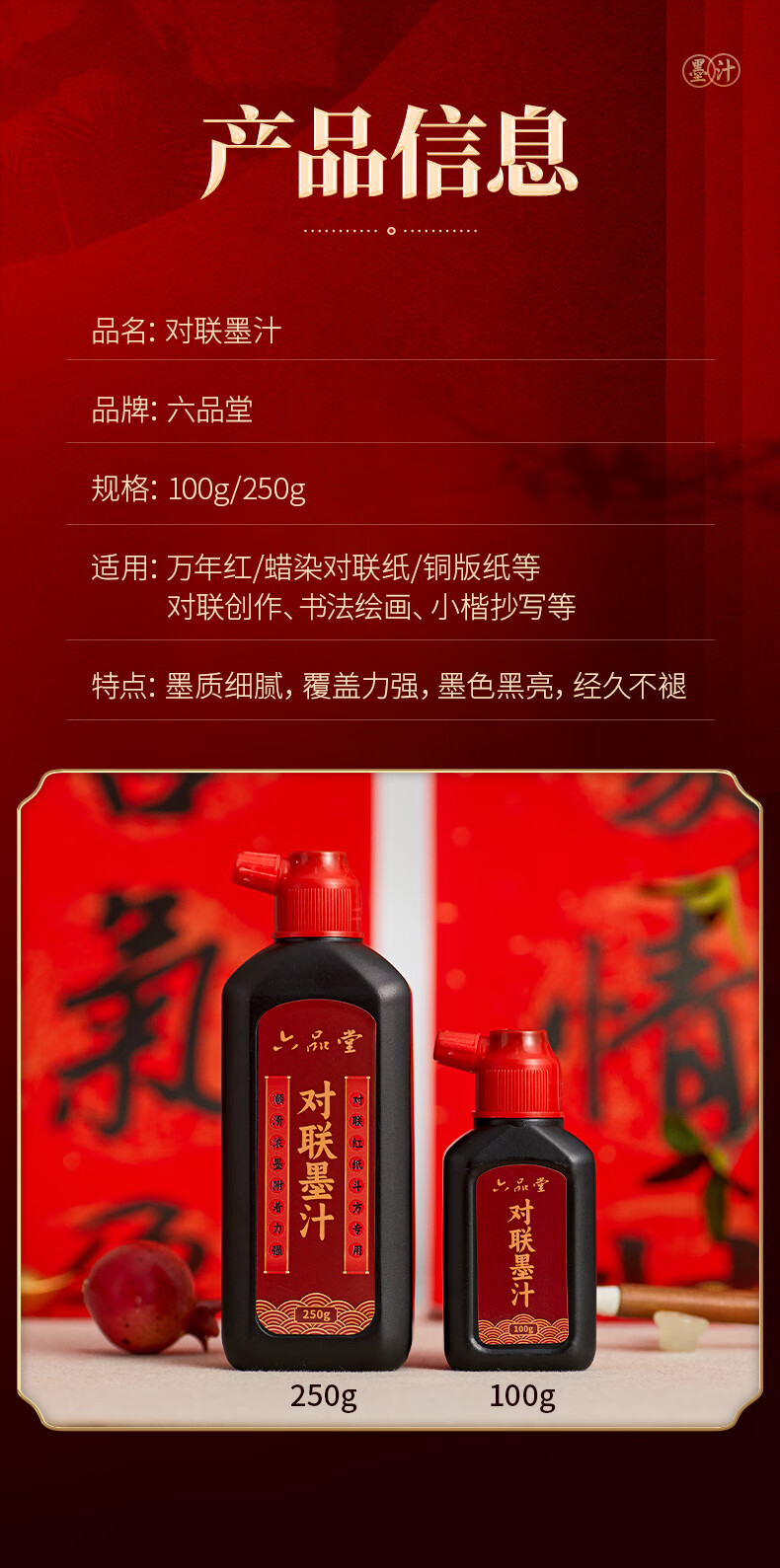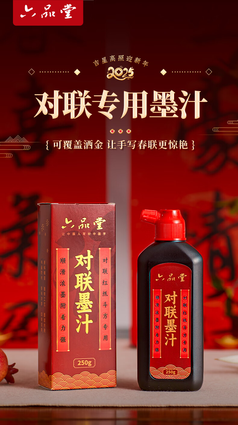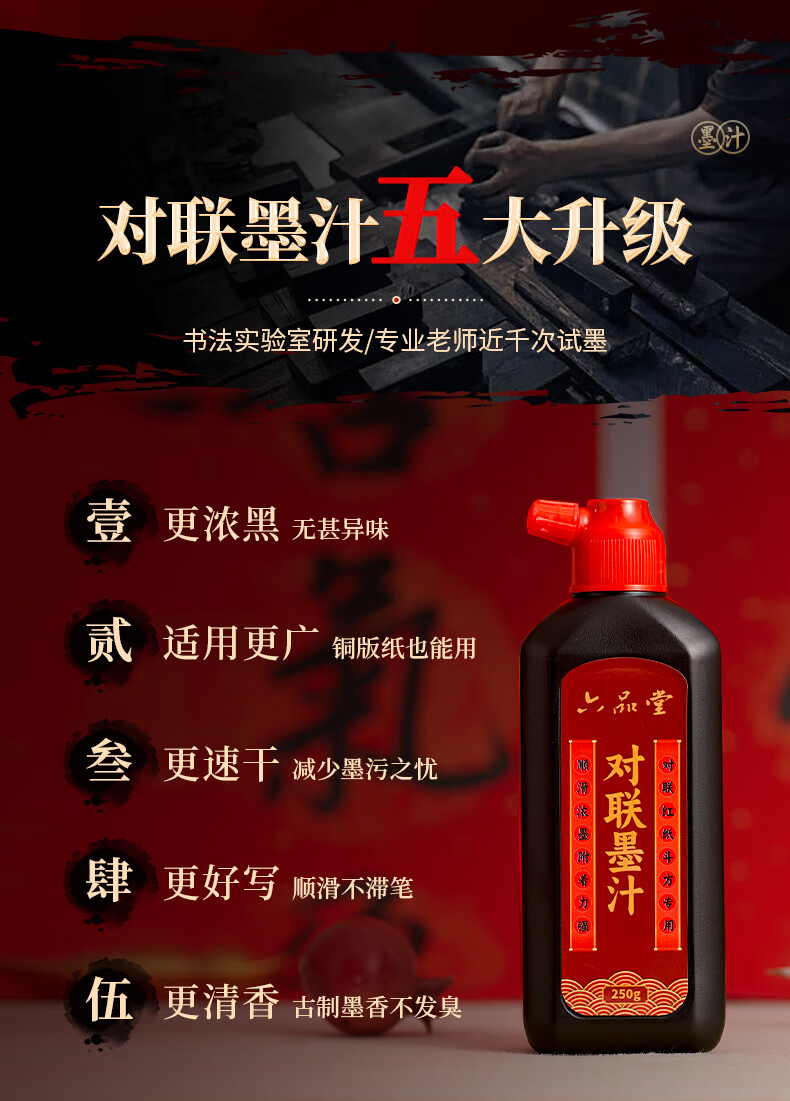 六品堂 对联墨汁250g书法专用新春斗方写毛笔字用墨水文房四宝练习速干油烟墨液快干高浓春联毛笔墨汁