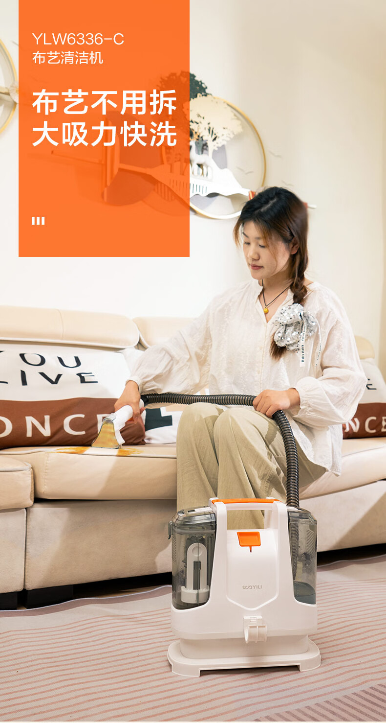 亿力家用布艺清洗机地毯沙发清洗机窗帘床垫喷刷抽洗吸一体清洁机全屋家政保洁布艺多功能清洁申请6336 YLW6336布艺清洗机