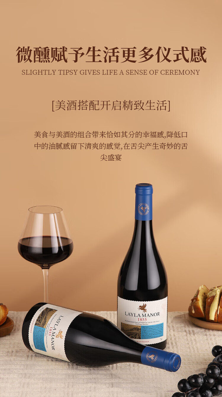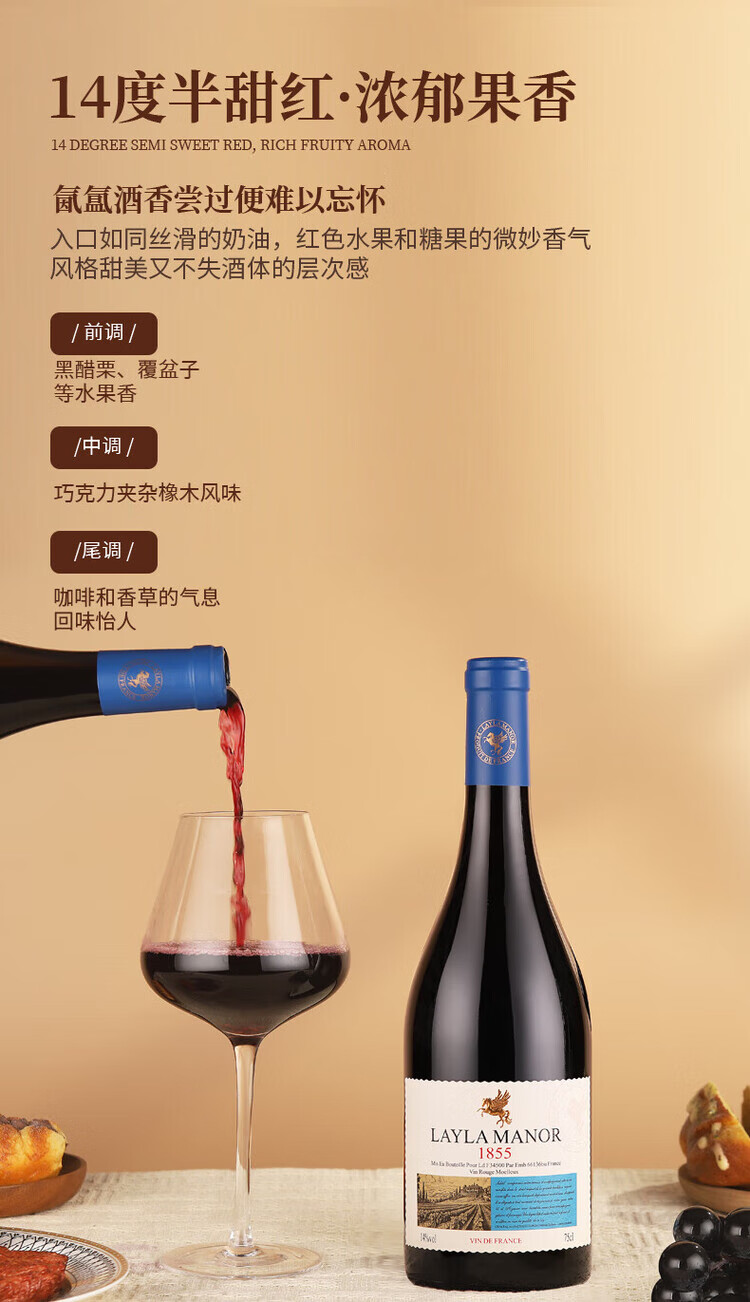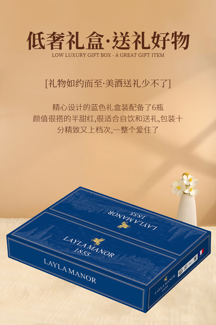 LAYLA【法国蕾拉】原瓶进口14度红酒 半甜红葡萄酒 750mlX6支礼盒装