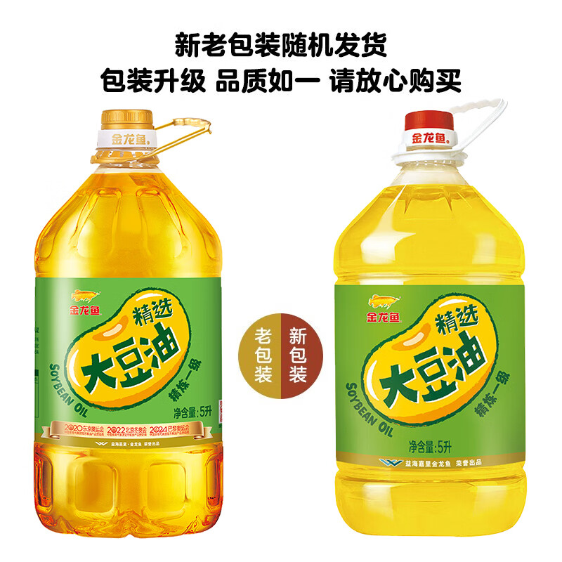 金龙鱼 食用油 精选大豆油 5L 精炼一级 家用桶装(新老包装随机发货) 5L*4桶 (整箱装)