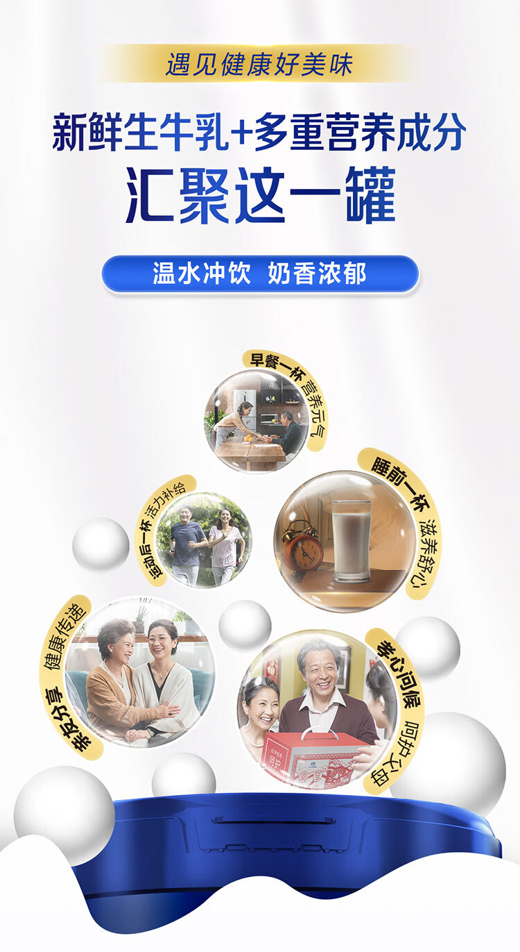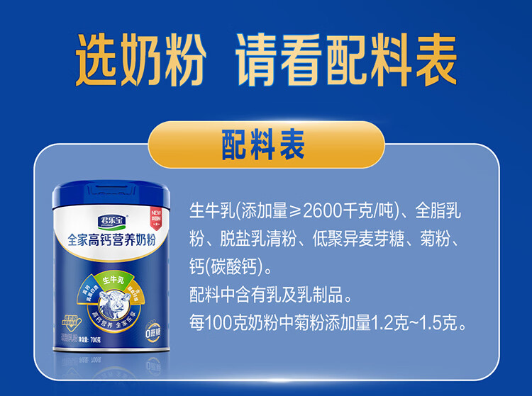 君乐宝全家成人高钙营养奶粉0添加蔗糖中老年送礼盒礼营养奶粉 中老年全家营养奶粉700克*2听(赠礼盒)