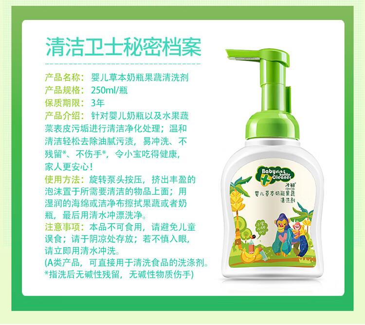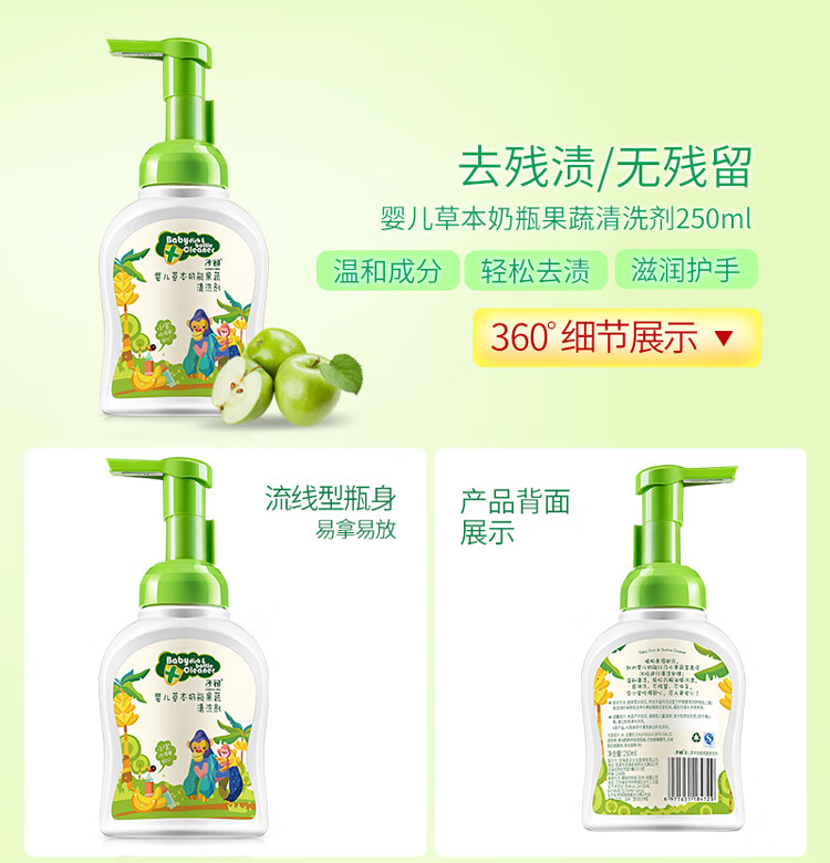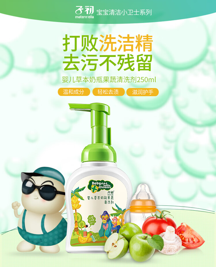 子初宝宝奶瓶清洗剂250ml*2瓶草本植萃果蔬清洗液除垢剂婴儿清洗奶瓶