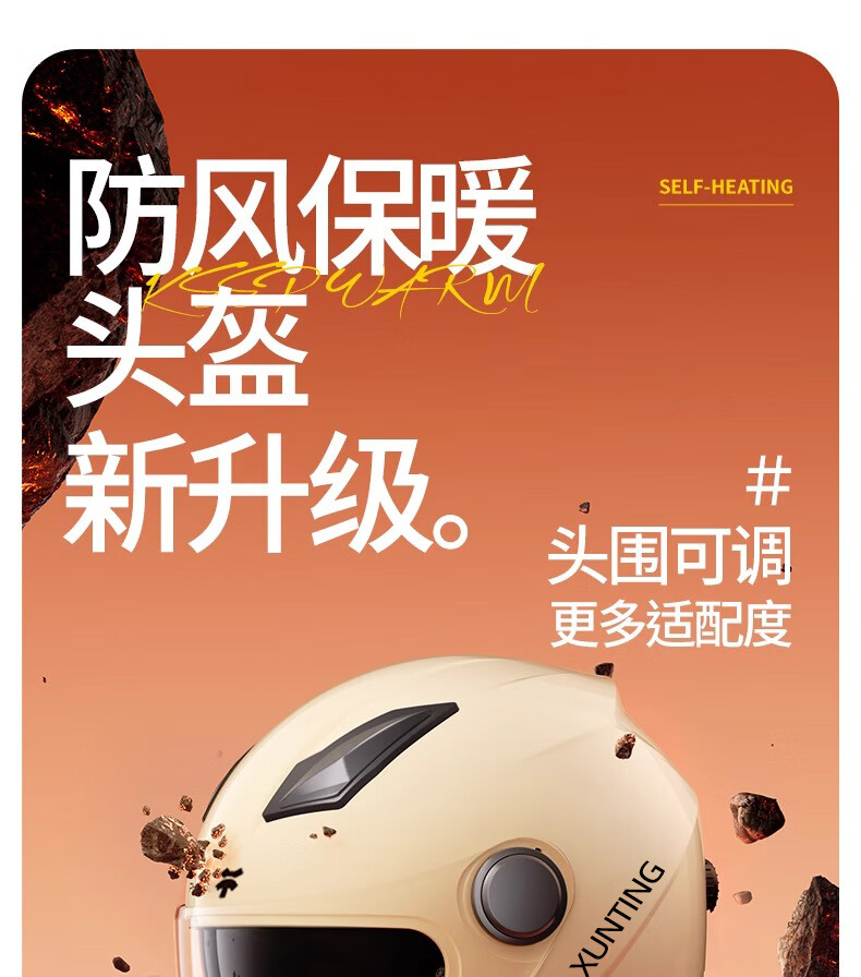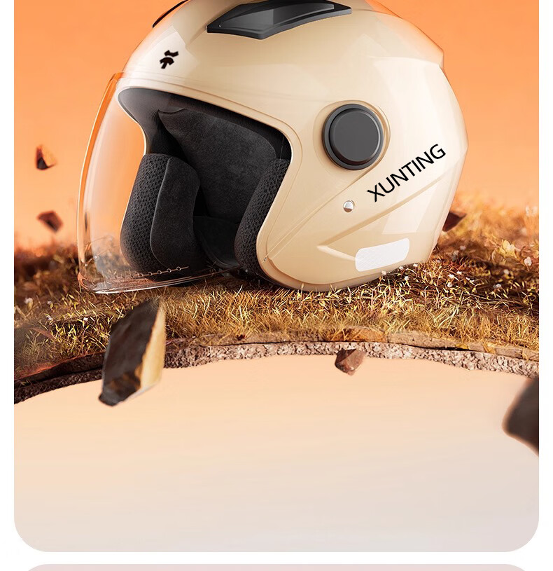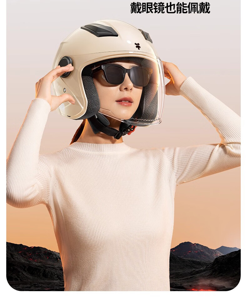 迅霆电动车头盔男女士3C认证四季通用冬季防冻保暖防雾四分之三盔电瓶车新国标安全帽 3C秋冬 黑【高清长透】新国标