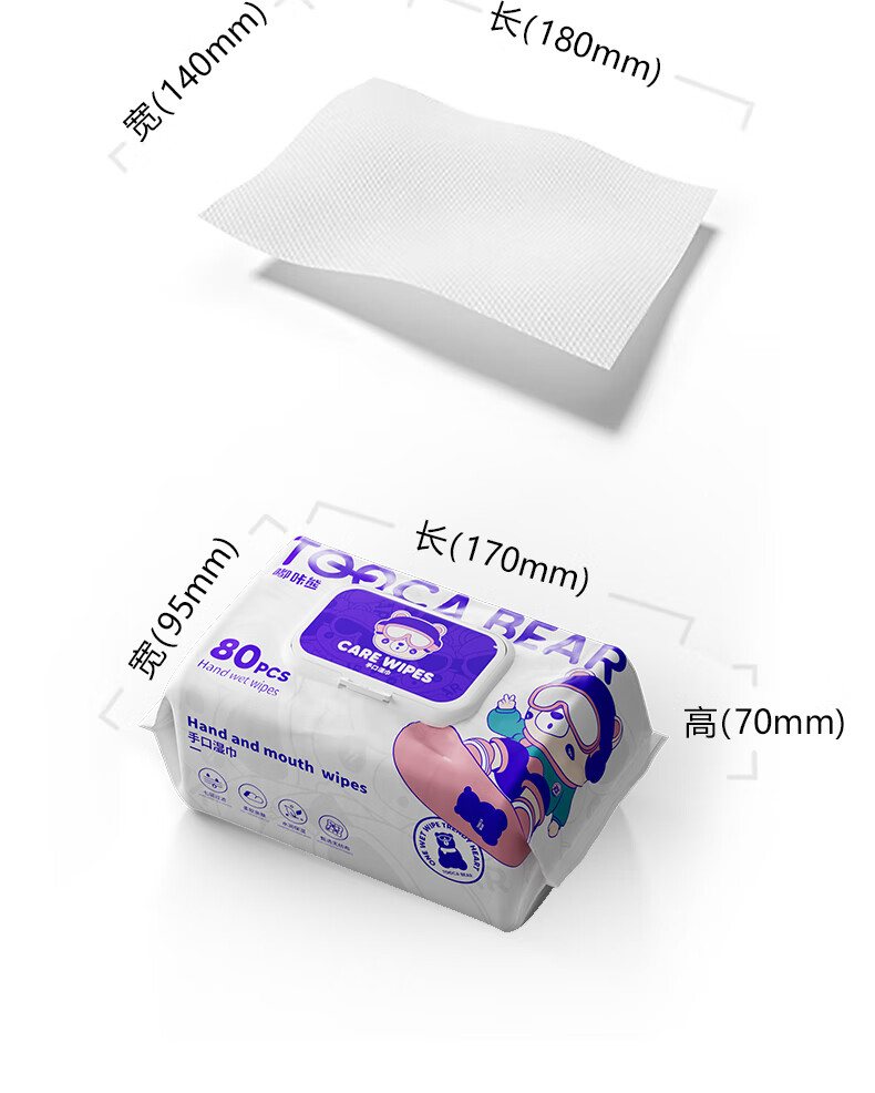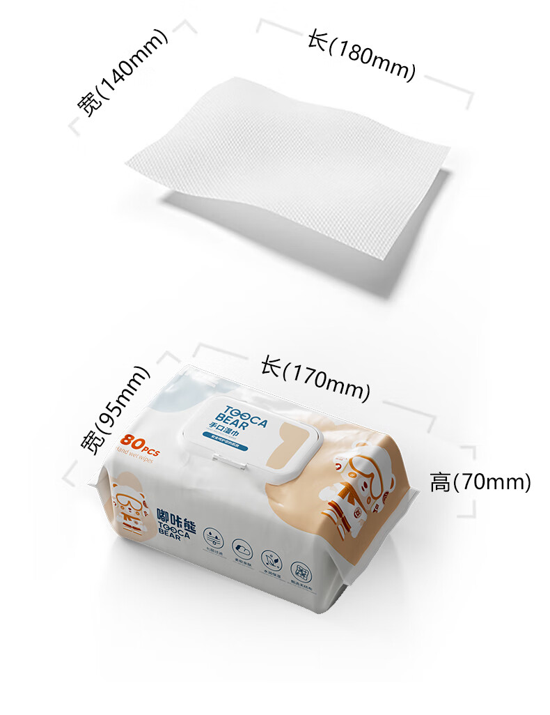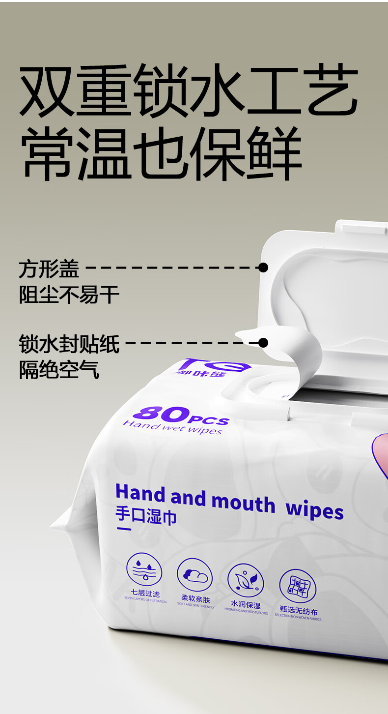 嘟咔熊婴儿湿巾湿纸巾珍珠纹 新生儿湿巾纸 宝宝手口湿巾 尝鲜装 80抽 1包