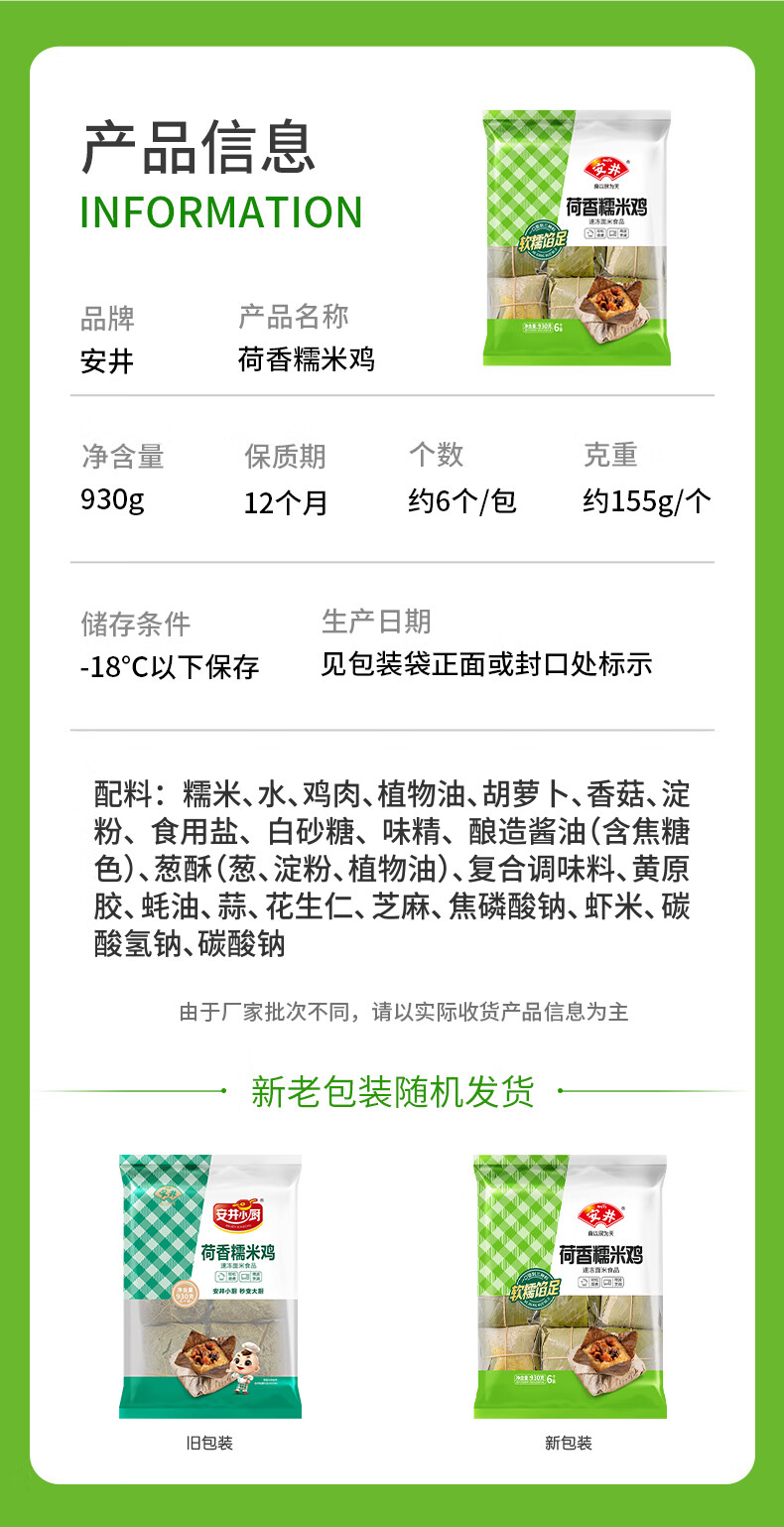 安井 荷香糯米鸡 930g 6只装 广式荷叶鸡饭团 速冻面点 早餐半成品