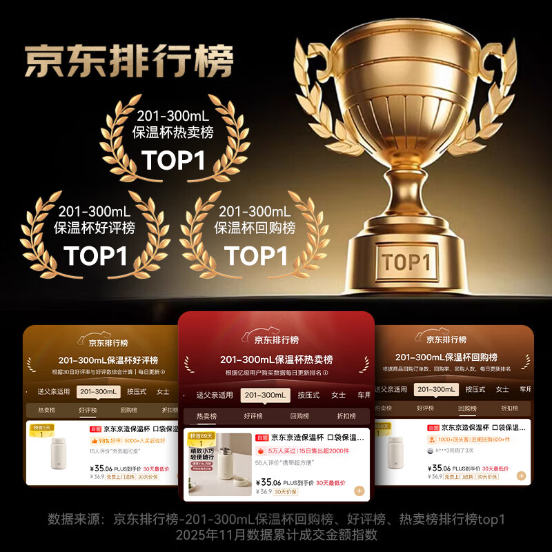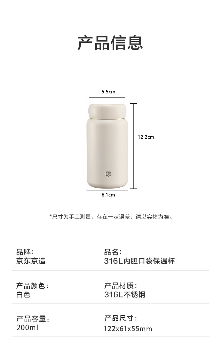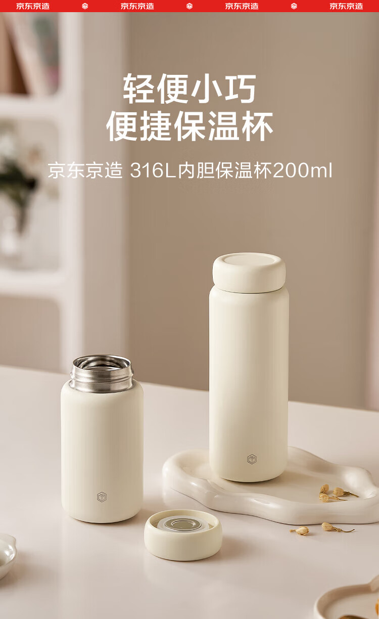 京东京造保温杯 口袋保温冷小巧便携随身男女士儿童水杯子316L不锈钢200ml
