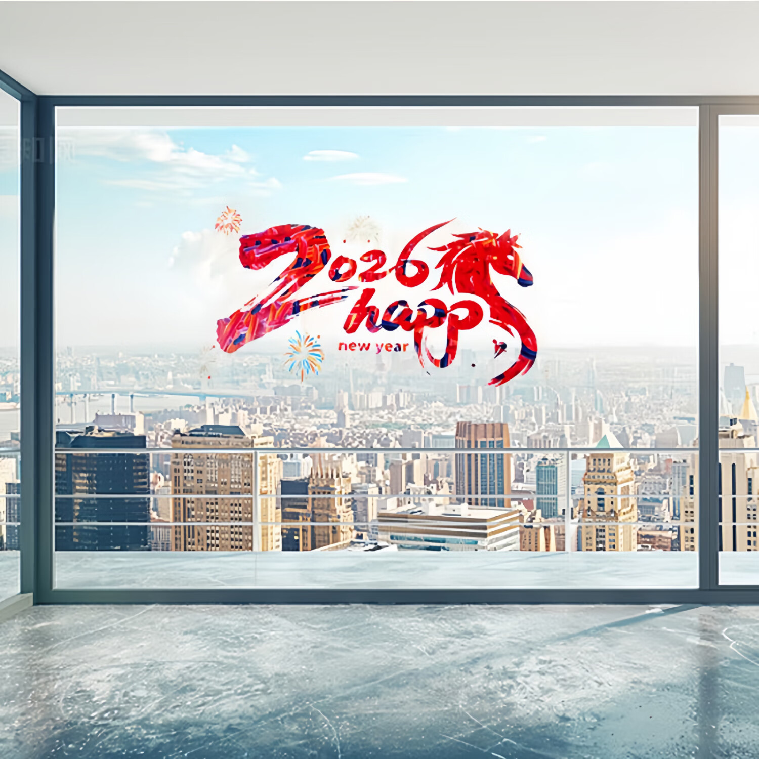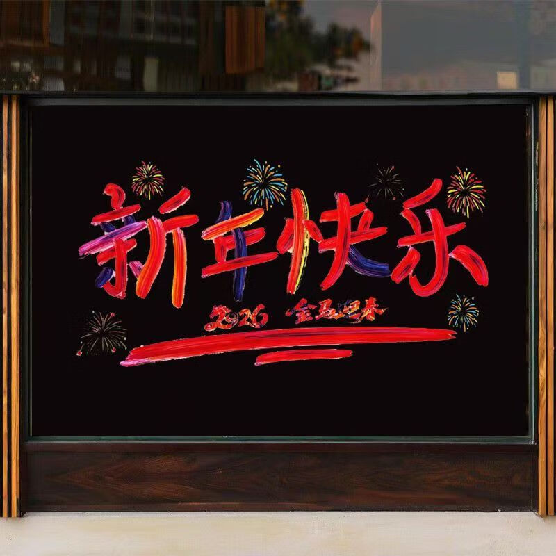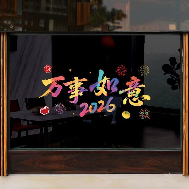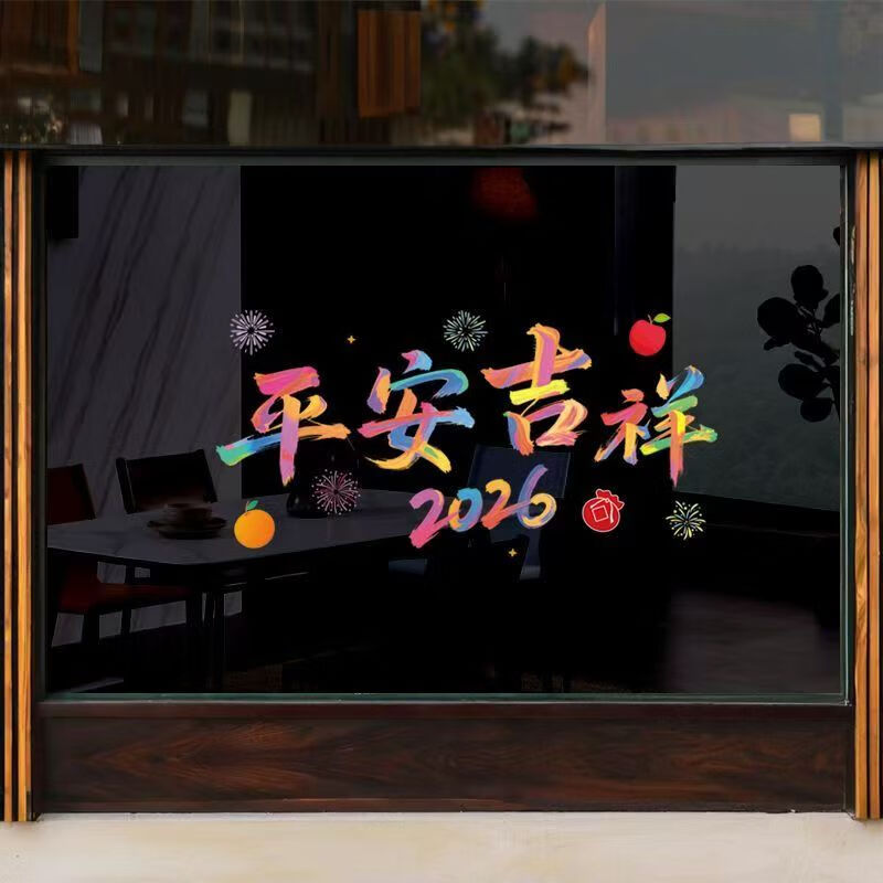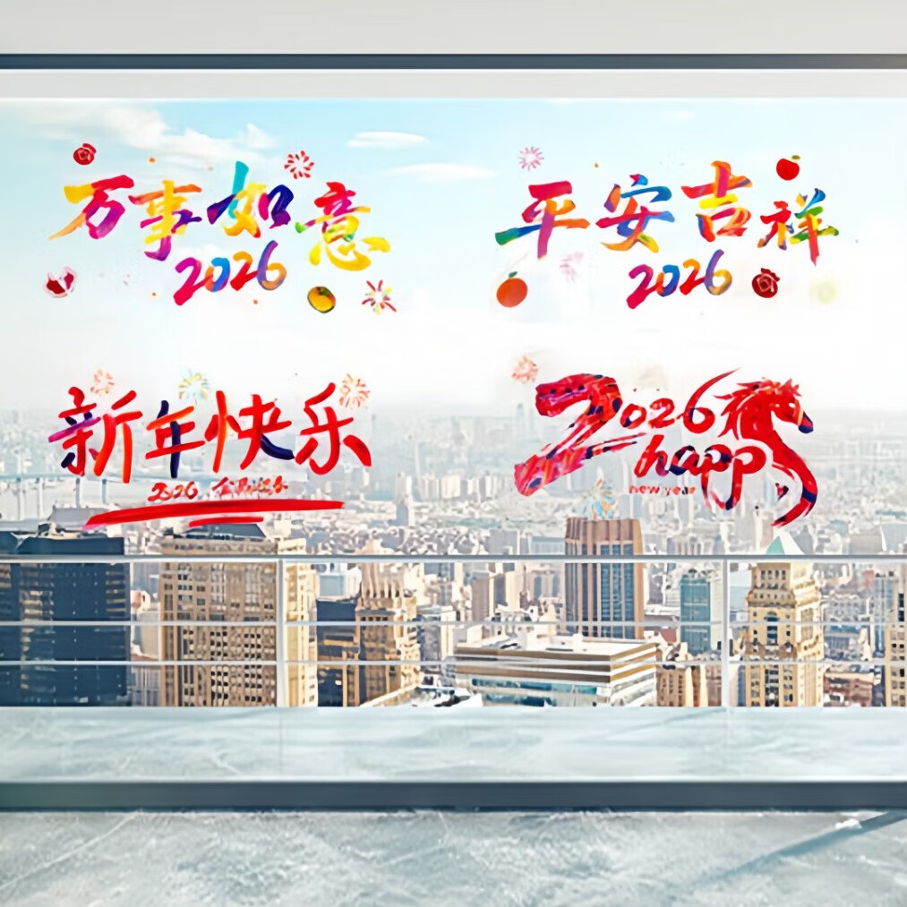 2026新年快乐玻璃贴马年布置氛围装饰贴纸橱窗拍照背景窗花 全家福(四款各一)1套(51.5cm*26cm)