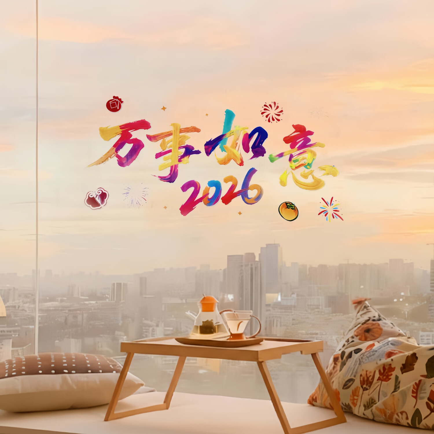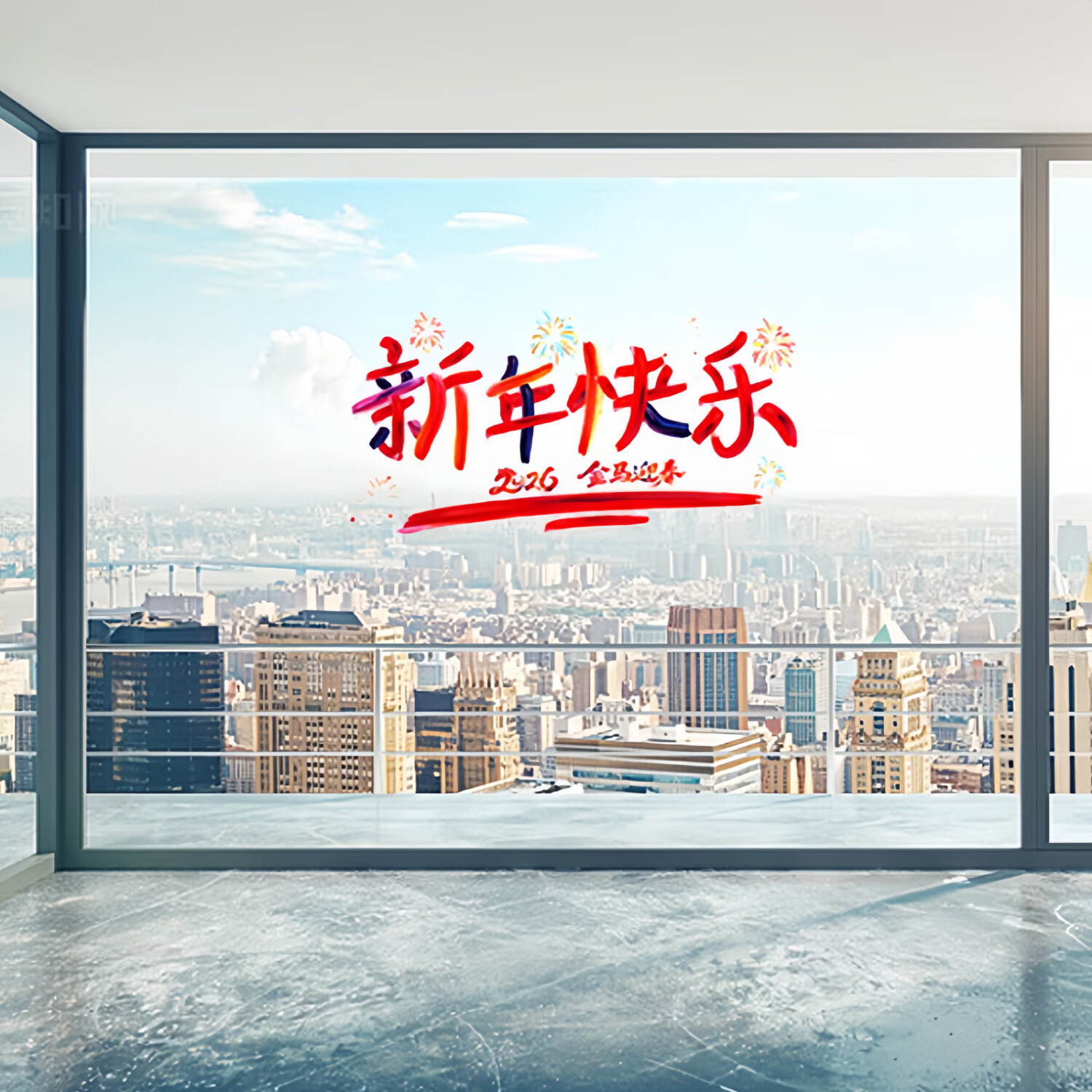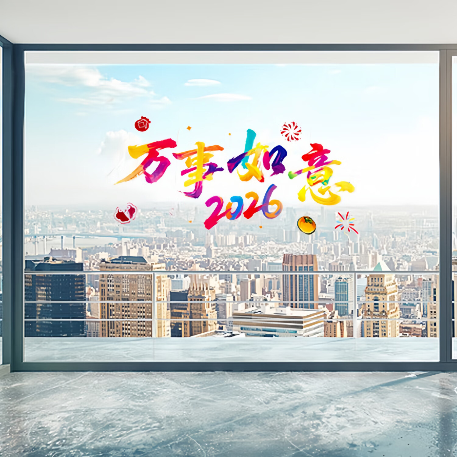 2026新年快乐玻璃贴马年布置氛围装饰贴纸橱窗拍照背景窗花 全家福(四款各一)1套(51.5cm*26cm)