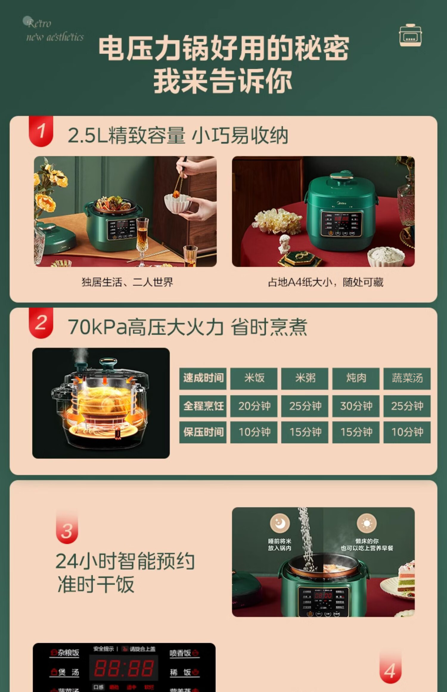 美的(Midea)【京东自营】官方电压力锅高压2.5L小型2-3人 全自动智能预约开盖火锅煮小米电饭锅MY-S340