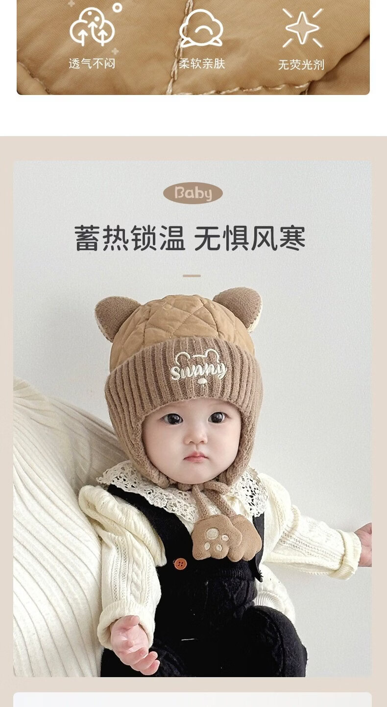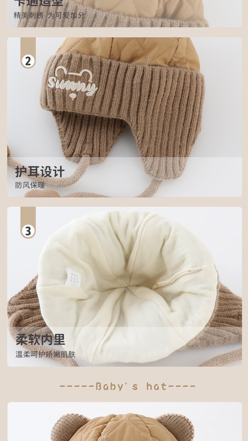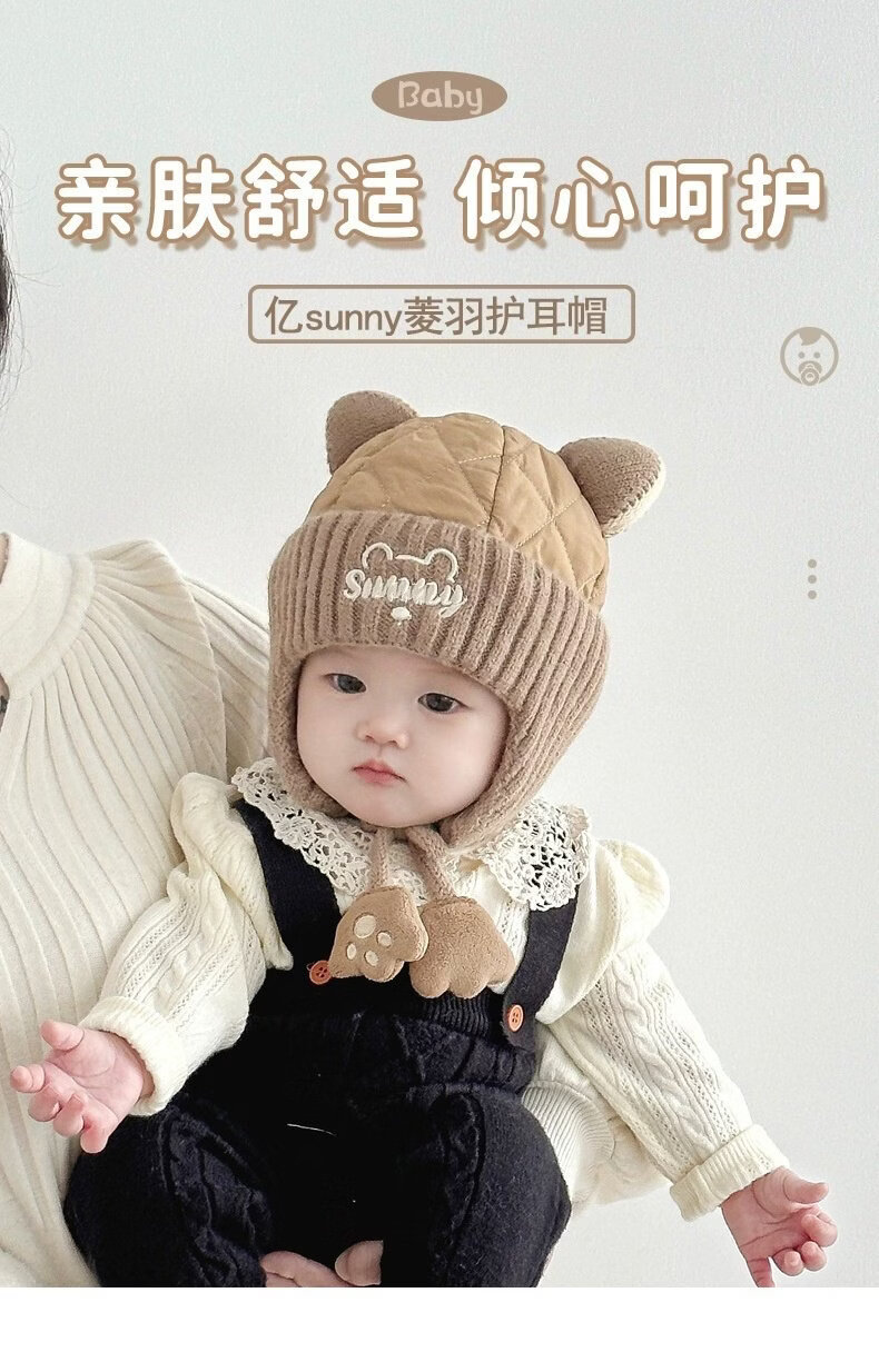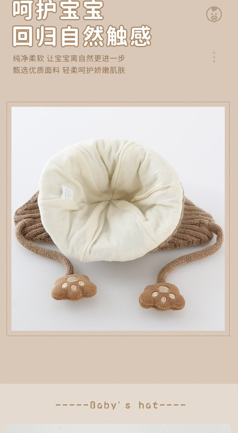 德国精工秋冬季6到12个月婴儿帽子秋冬款男童1岁宝宝冬天帽子儿童 米色加布内里 头围44-49cm参考年龄6个月-3岁以头围大小为