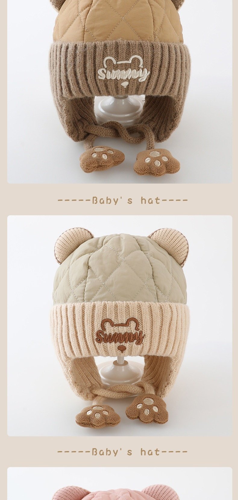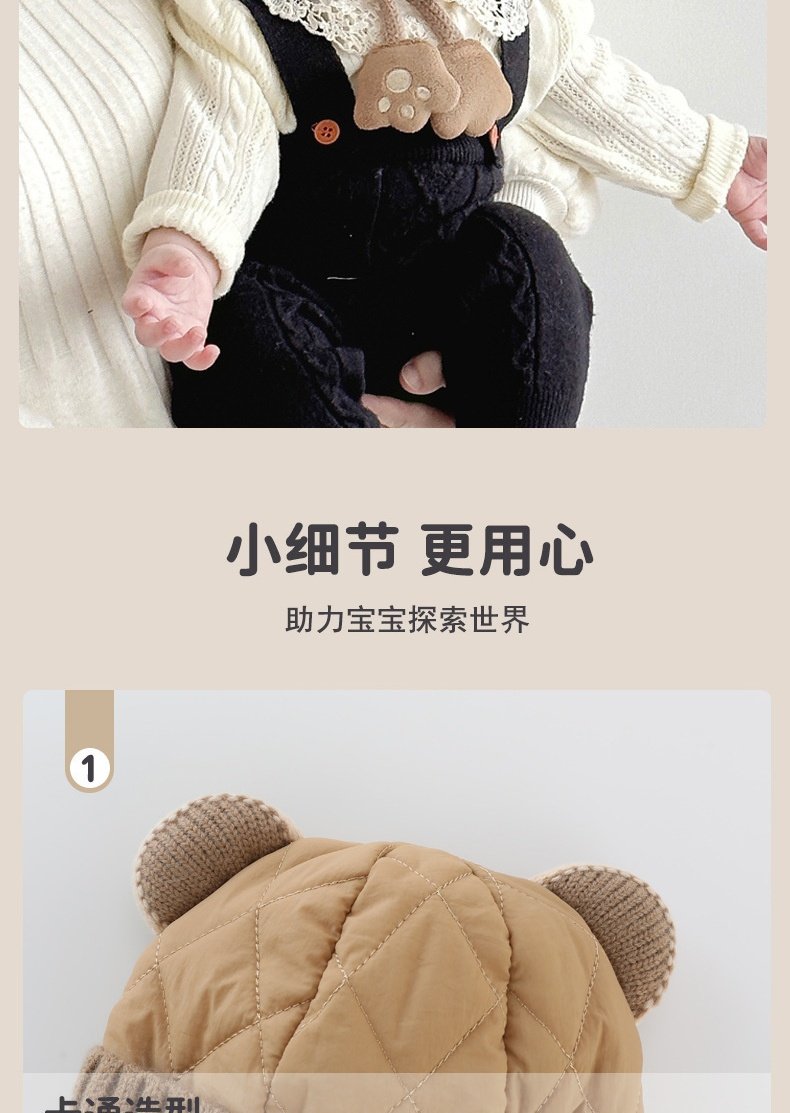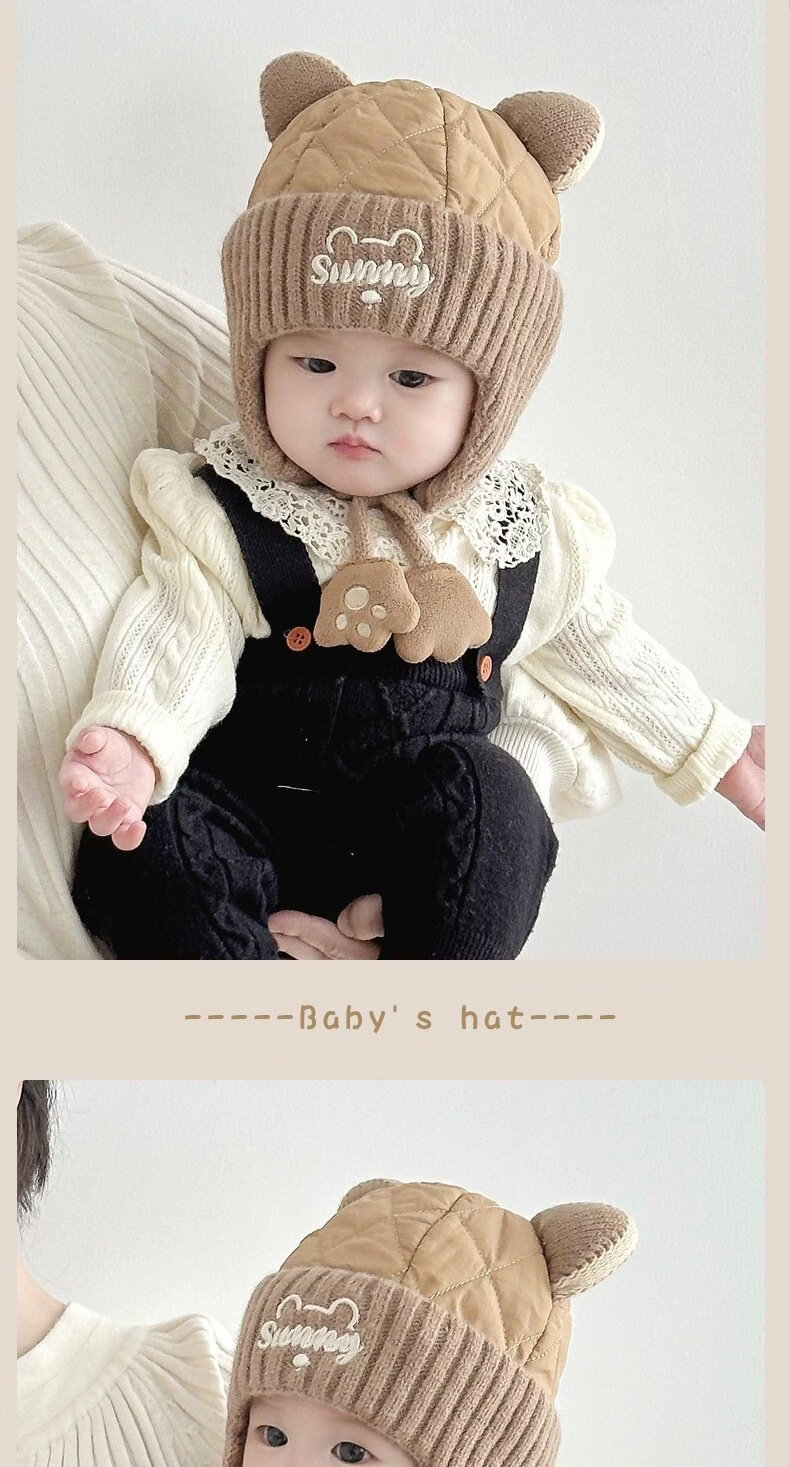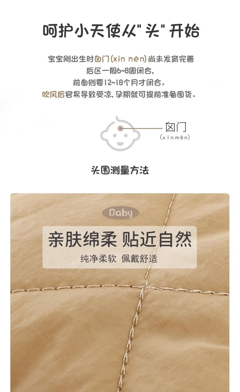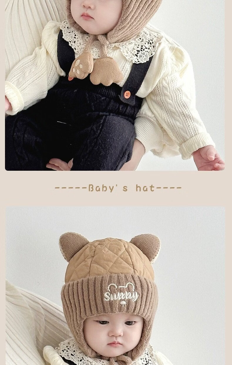 德国精工秋冬季6到12个月婴儿帽子秋冬款男童1岁宝宝冬天帽子儿童 米色加布内里 头围44-49cm参考年龄6个月-3岁以头围大小为