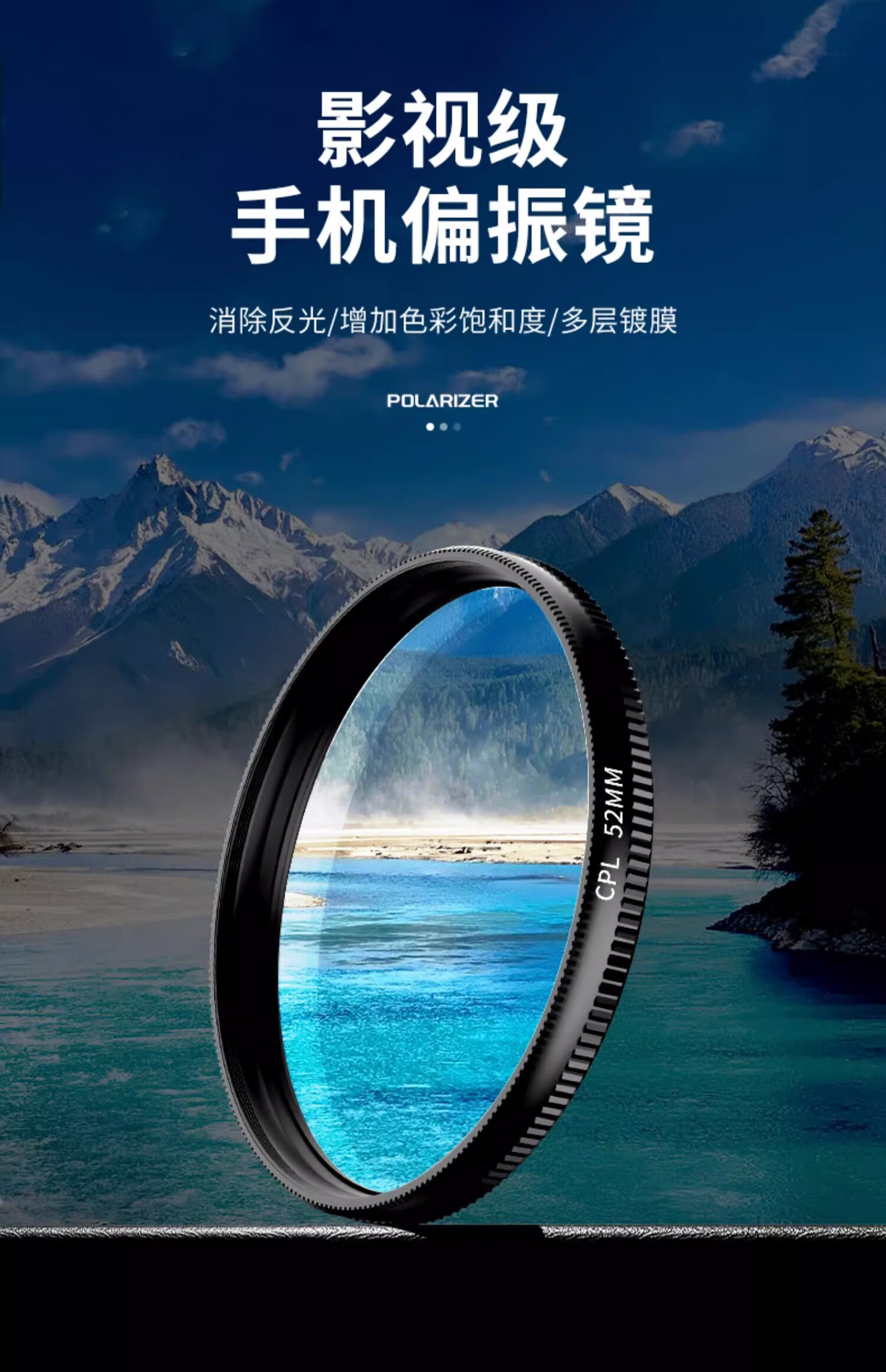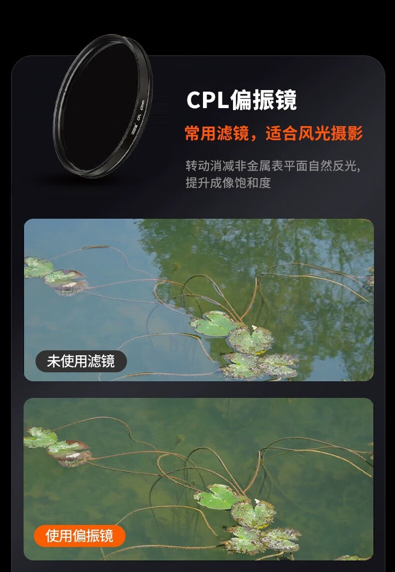 榎创优品手机偏振镜拍照摄影辅助神器52mm偏光镜消除反光CPL高清滤镜镜头 黑色52mmCPL偏振镜‘