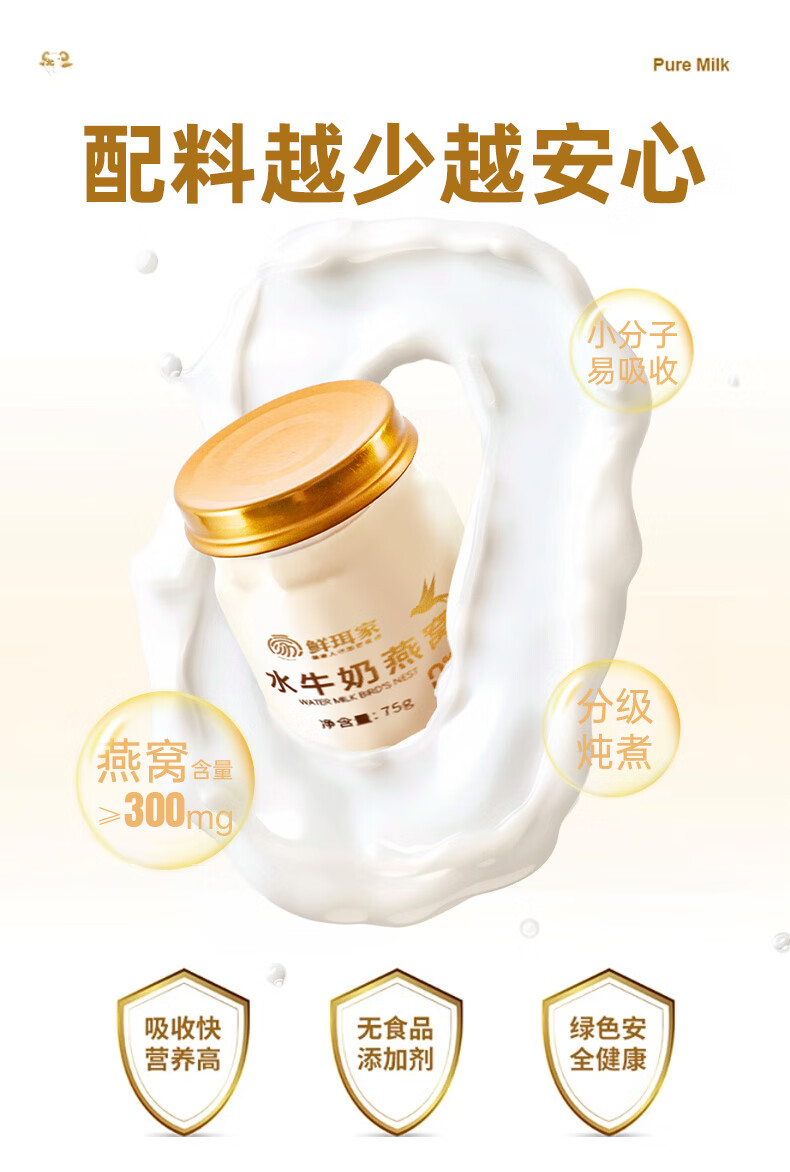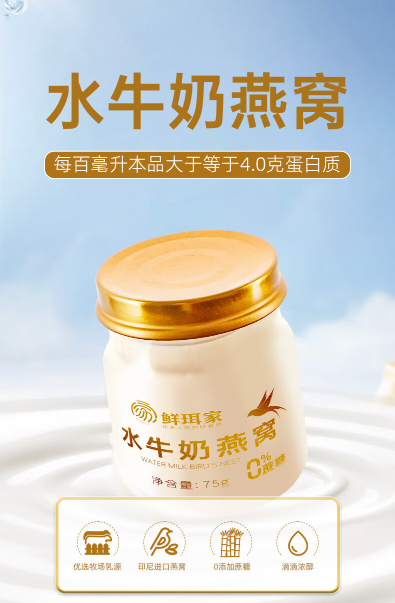王小珥水牛奶燕窝礼盒装75g*8瓶儿童孕妇早餐奶营养鲜炖4.0蛋白质纯牛奶 水牛奶燕窝75g*8瓶【礼盒装】