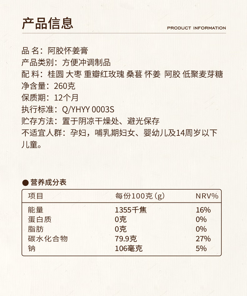 细初阿胶怀姜膏阿胶桂圆大枣玫瑰桑葚怀姜古法熬制非玉灵膏正品旗舰店 【1瓶尝鲜装】阿胶怀姜膏