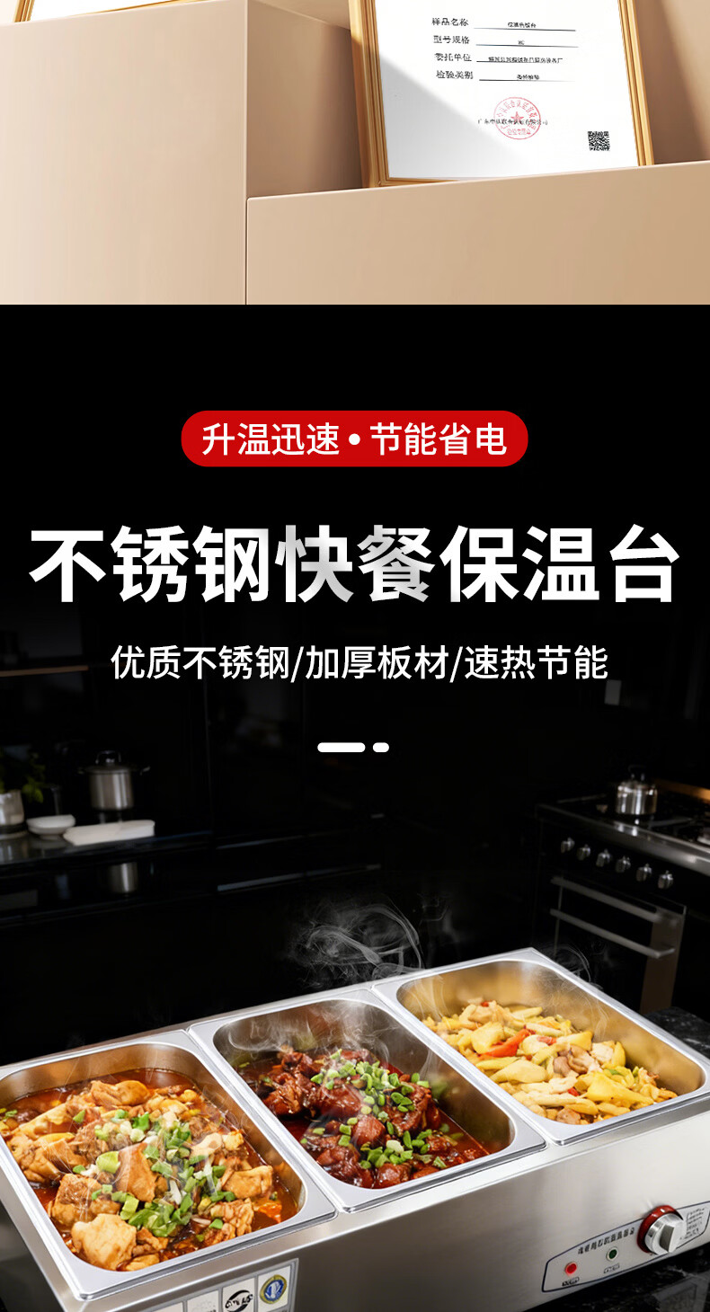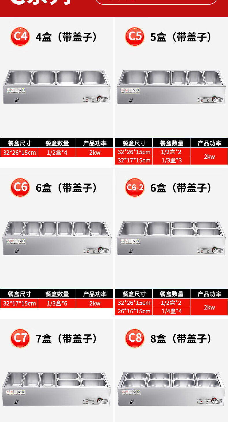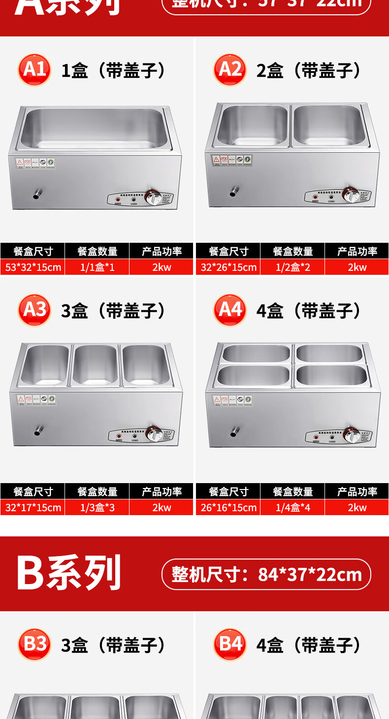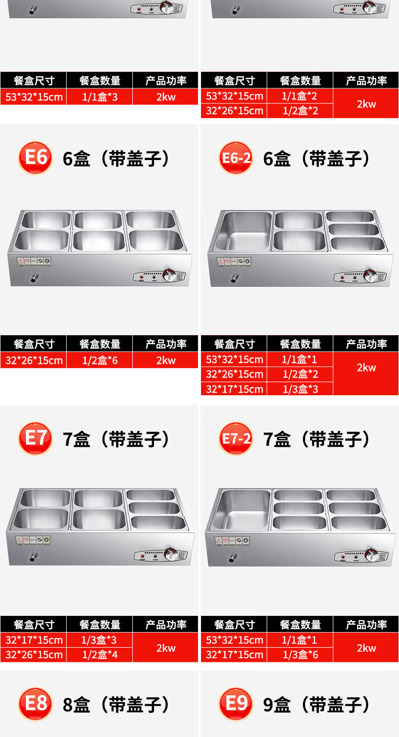 A6不锈钢加热保温汤池商用大容量自助餐专用多格保温台食堂餐厅 A6盒节能保温台