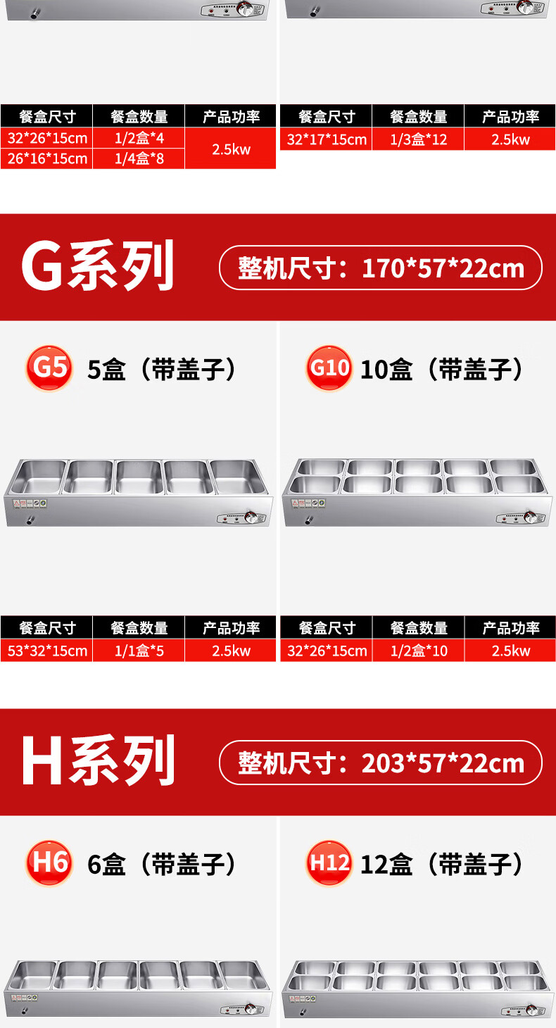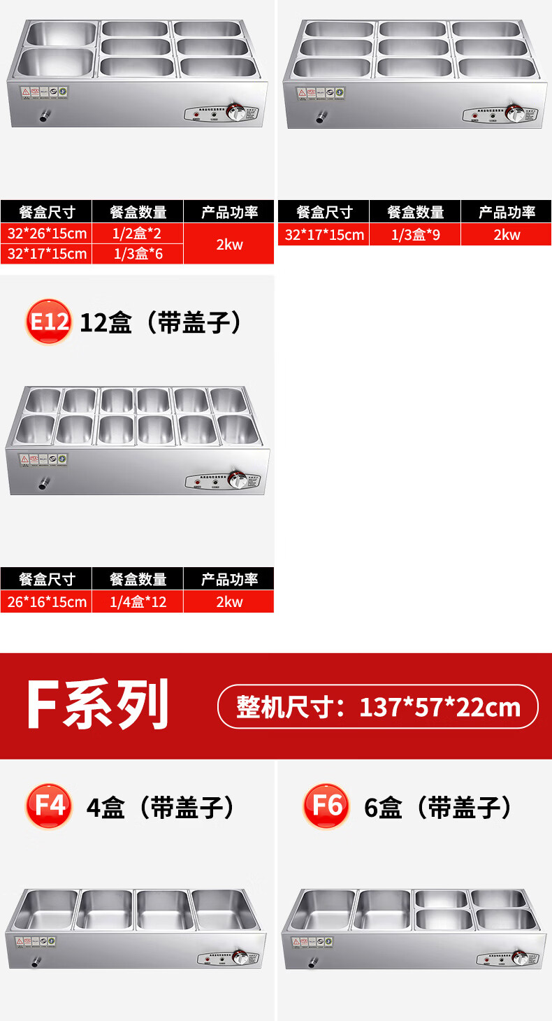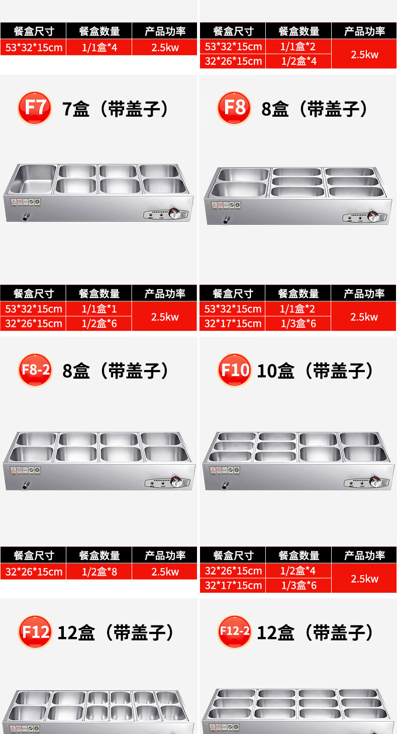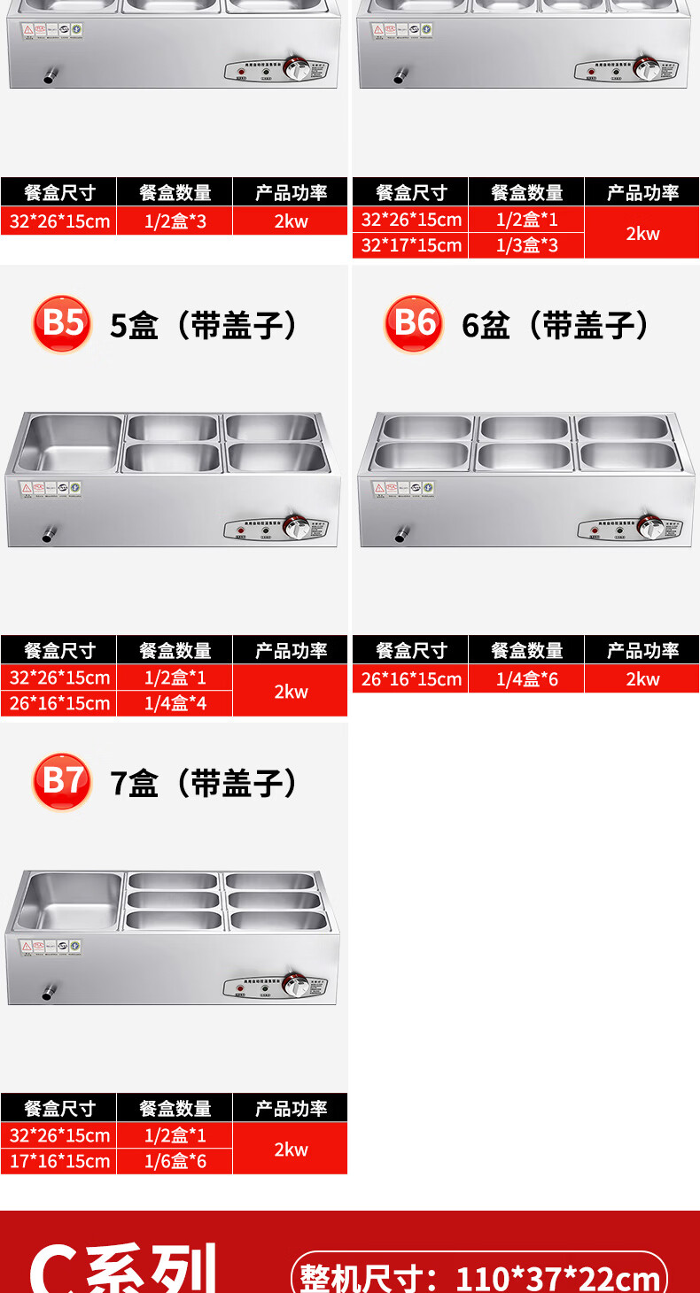 A6不锈钢加热保温汤池商用大容量自助餐专用多格保温台食堂餐厅 A6盒节能保温台