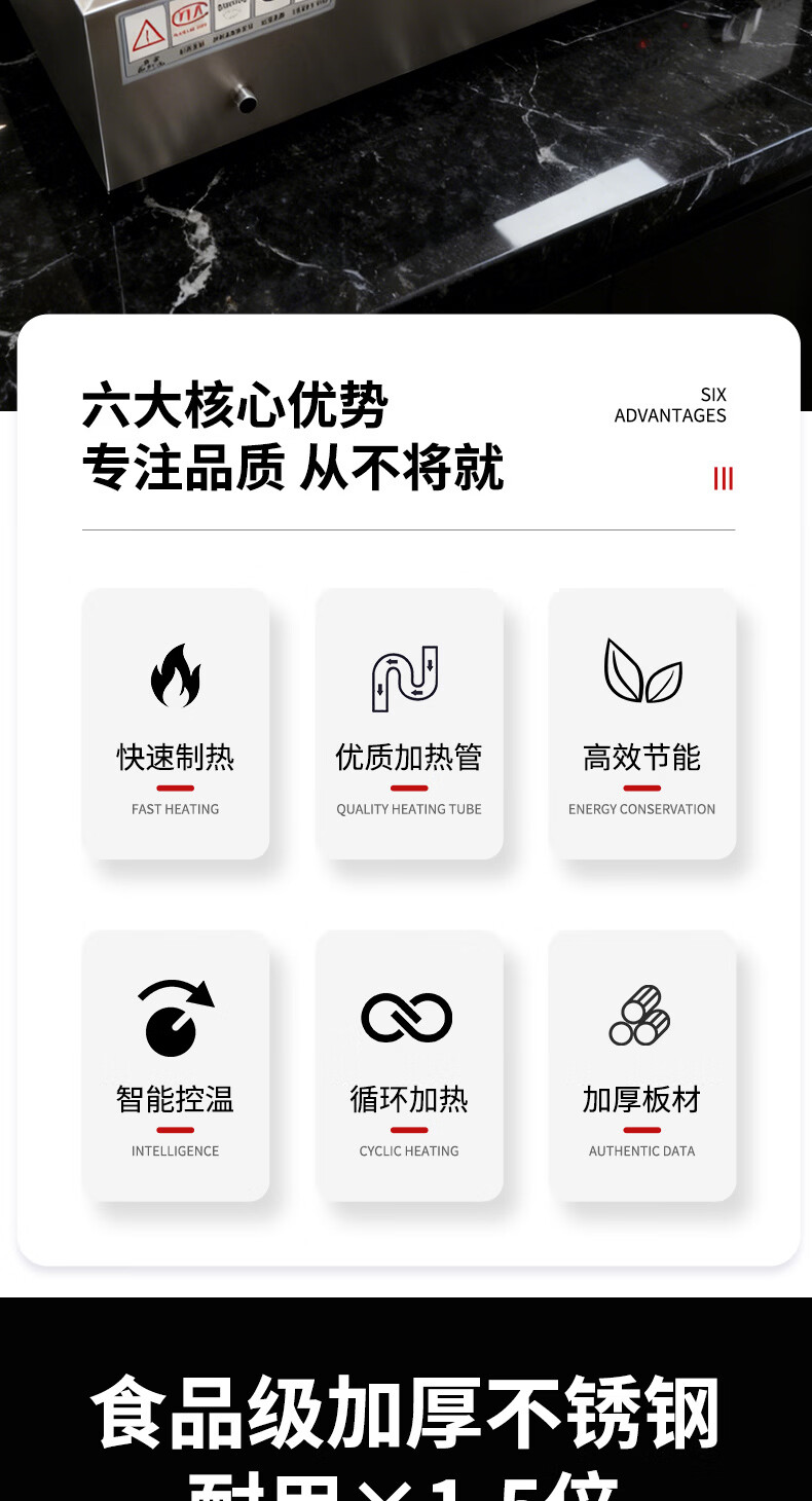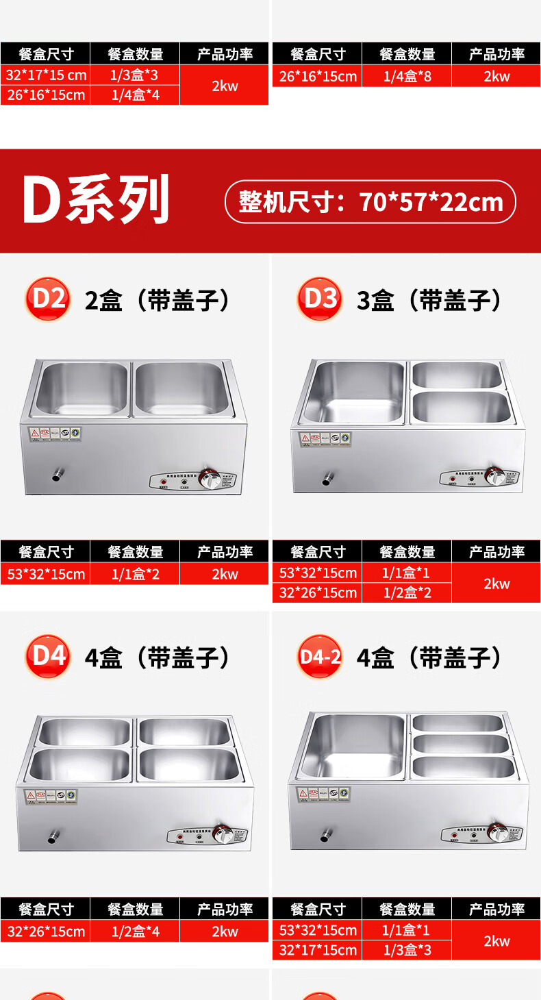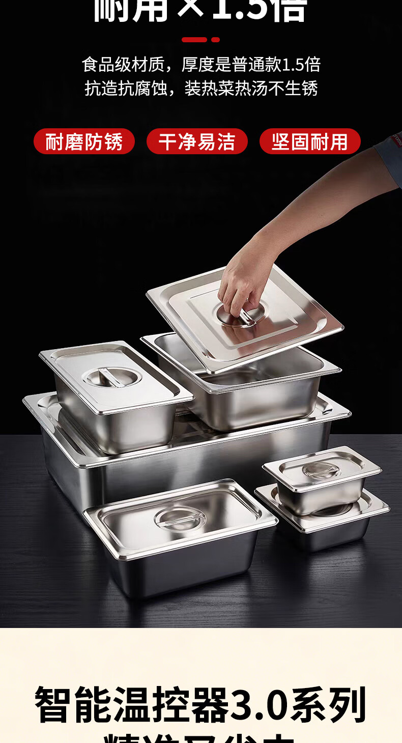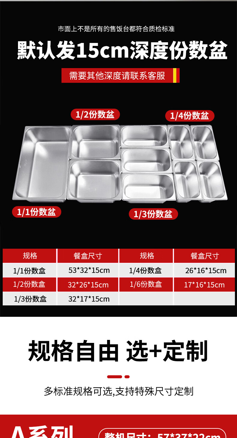 A6不锈钢加热保温汤池商用大容量自助餐专用多格保温台食堂餐厅 A6盒节能保温台