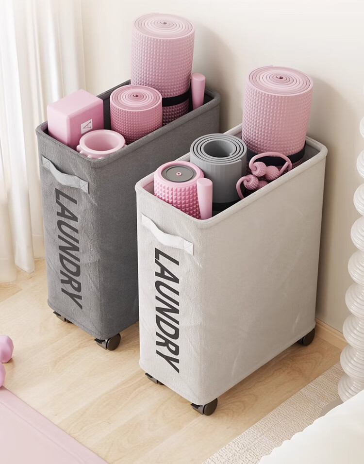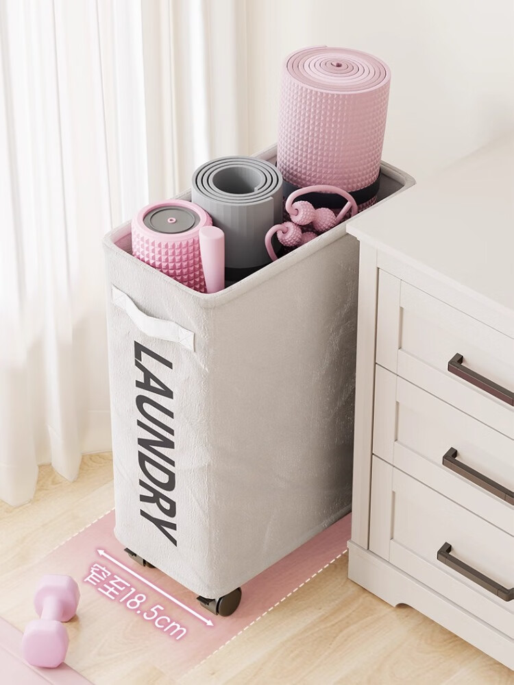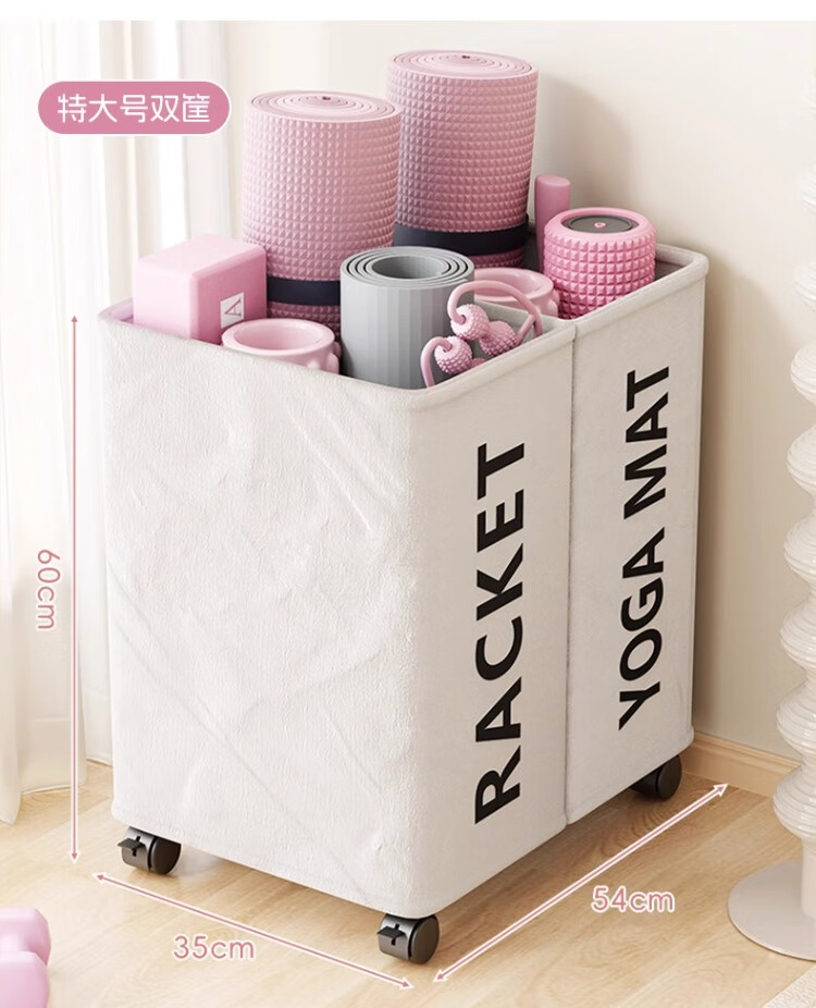 尔思家瑜伽垫收纳架室内可移动体育用品置物架家用带轮健身器材收纳神器 方形筐-米白带轮