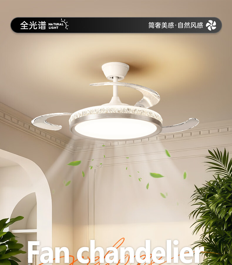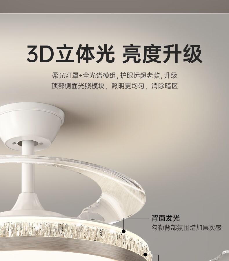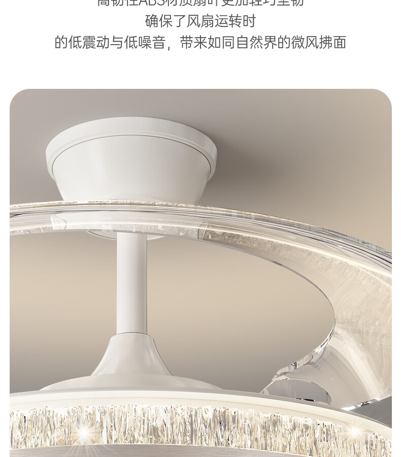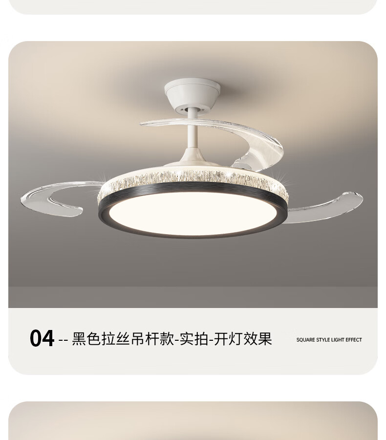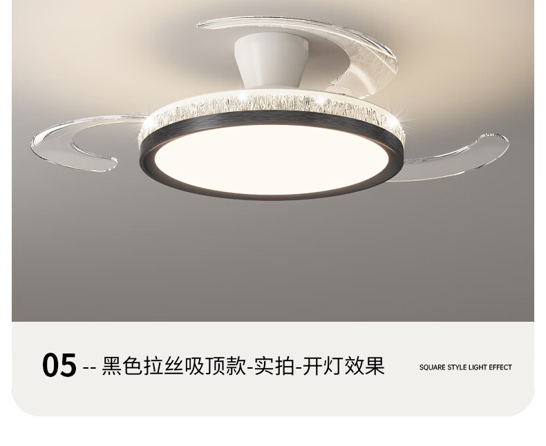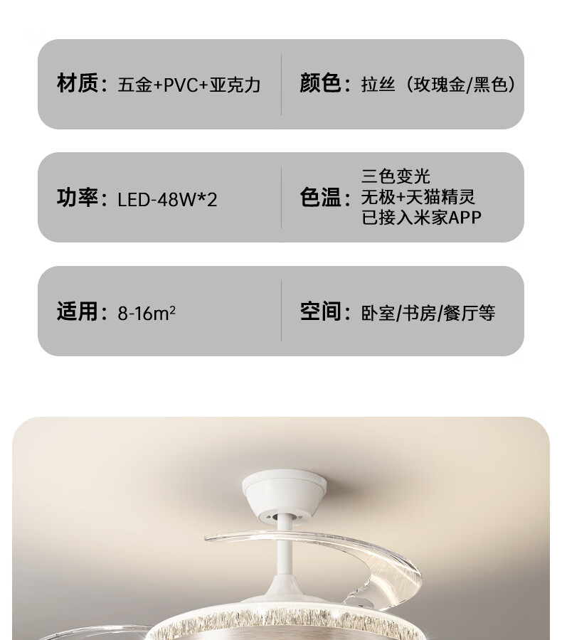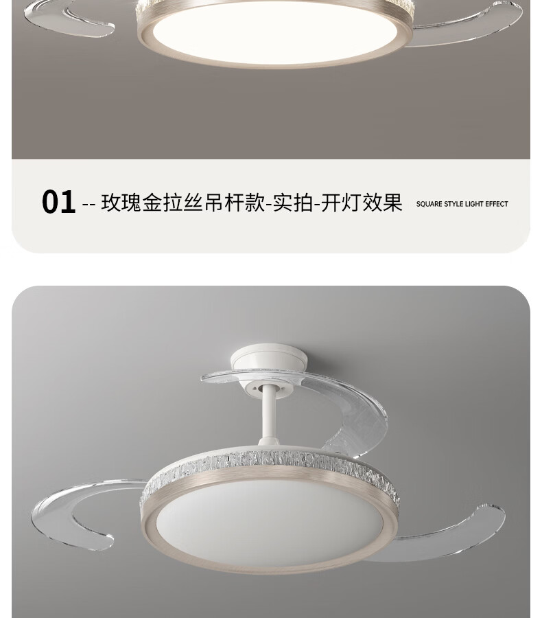 卡伯森意式极简餐厅风扇吊灯隐形多功能现代轻奢大气高档饭厅吧台卧室灯 玫瑰金拉丝风扇吸顶款-直径50CM【三色变光】