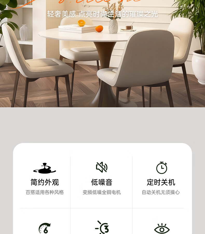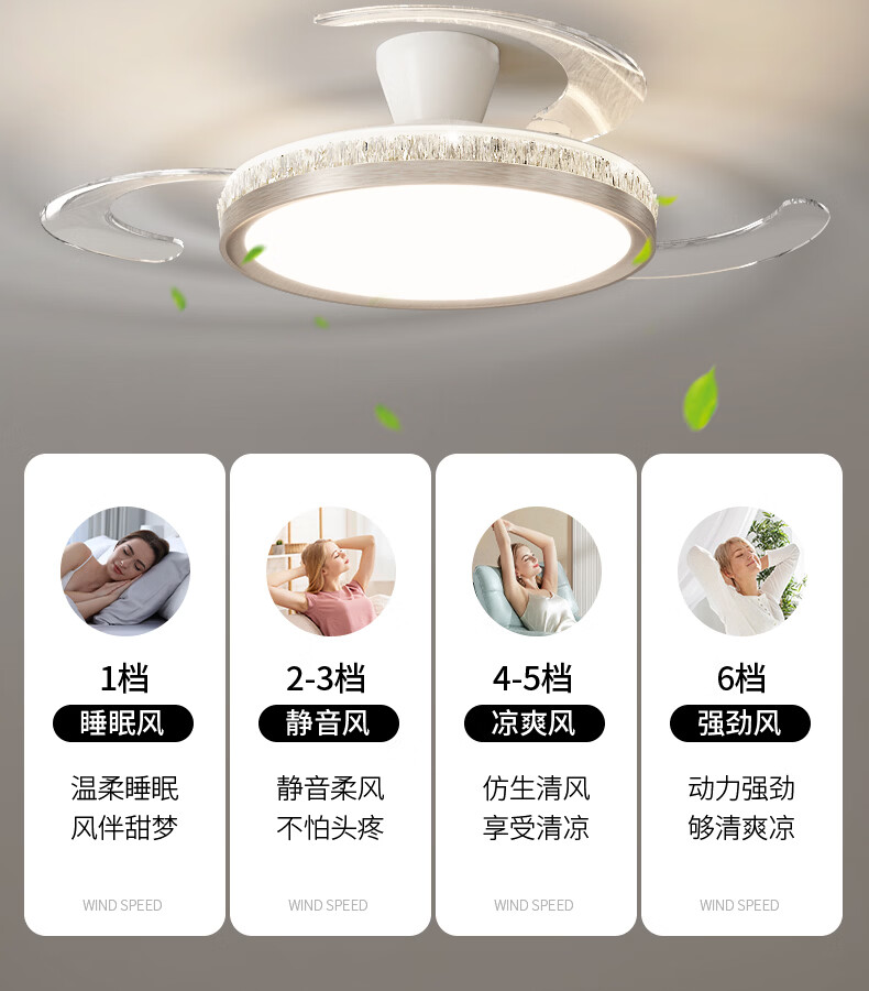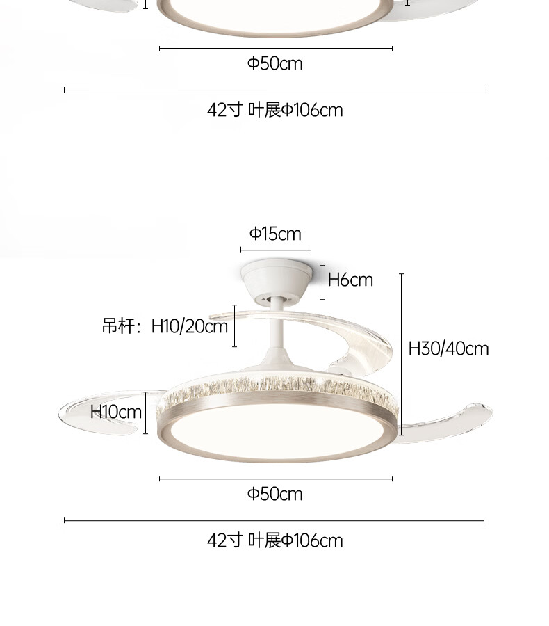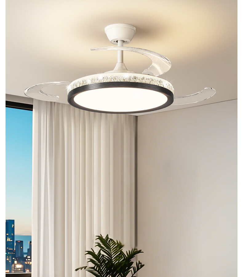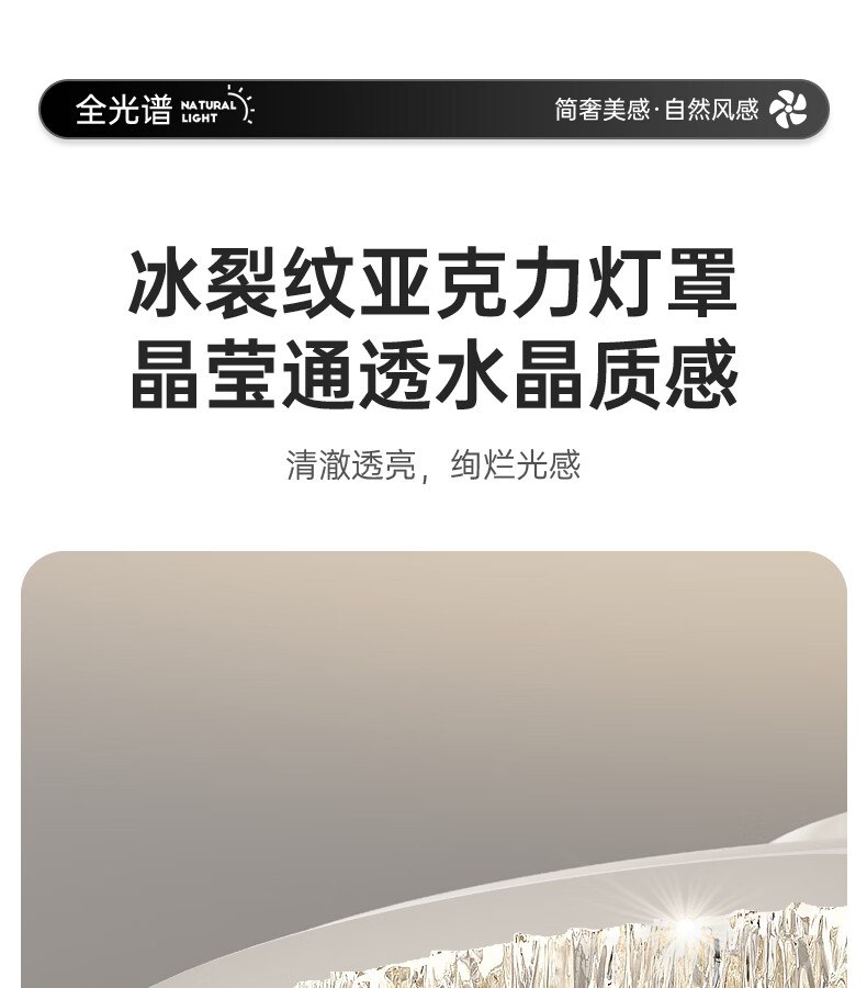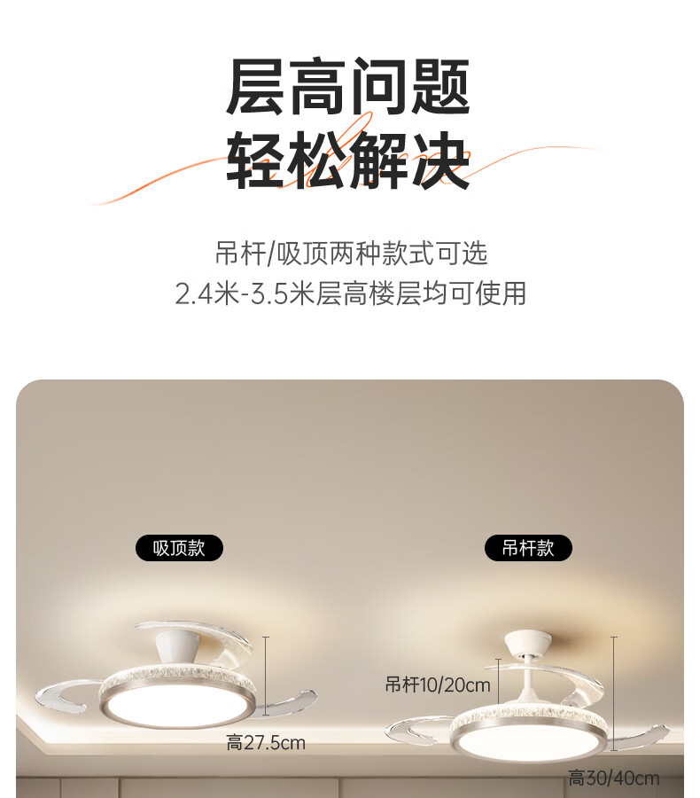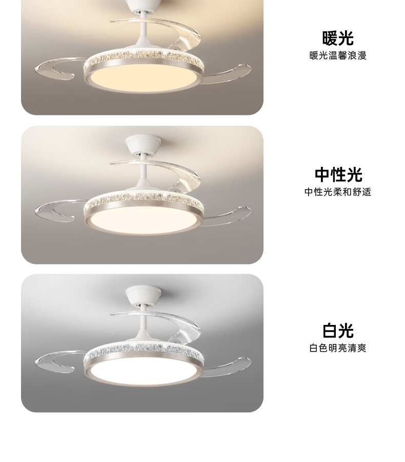 卡伯森意式极简餐厅风扇吊灯隐形多功能现代轻奢大气高档饭厅吧台卧室灯 玫瑰金拉丝风扇吸顶款-直径50CM【三色变光】