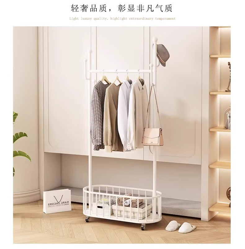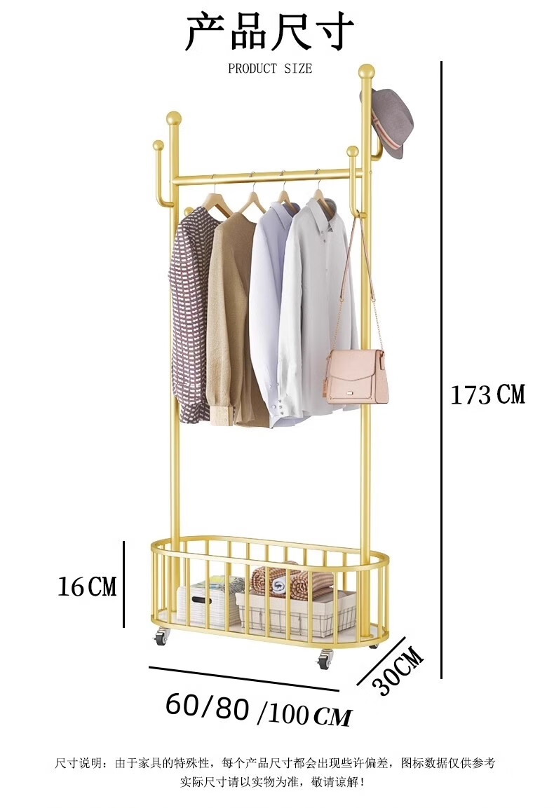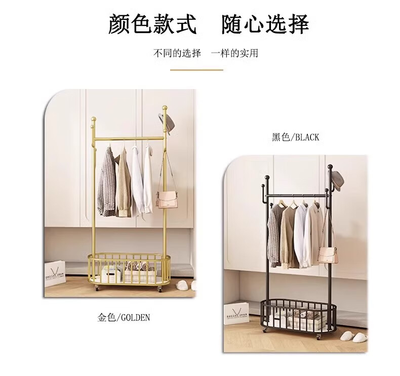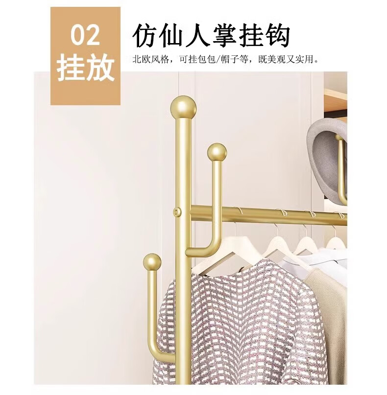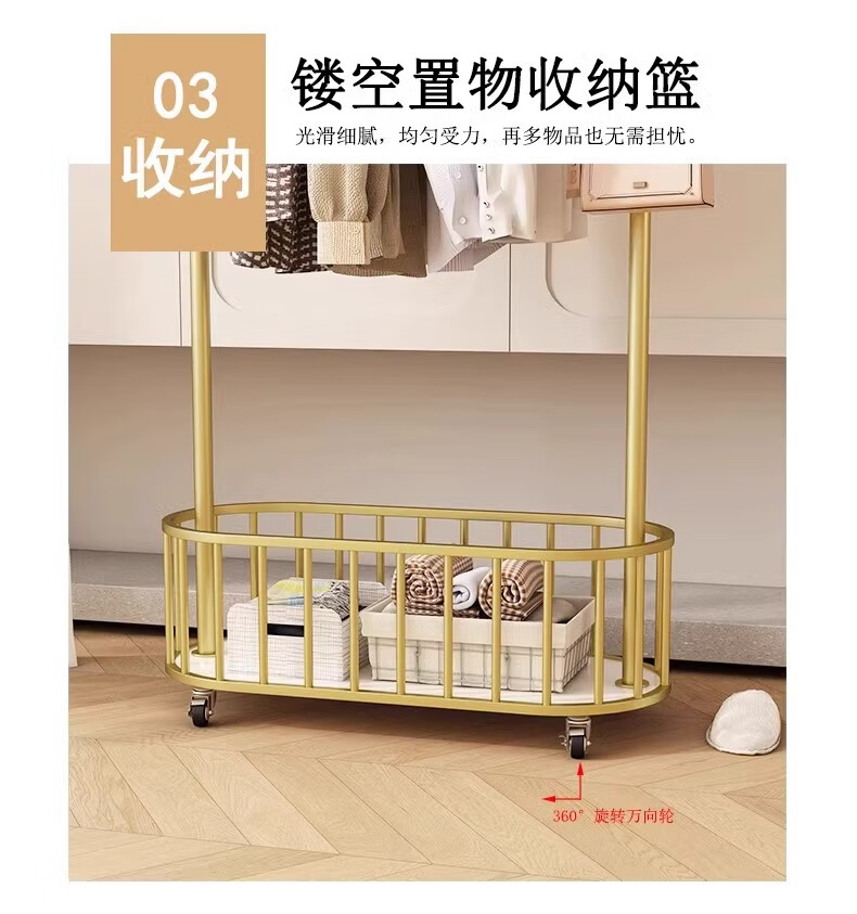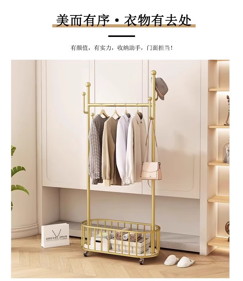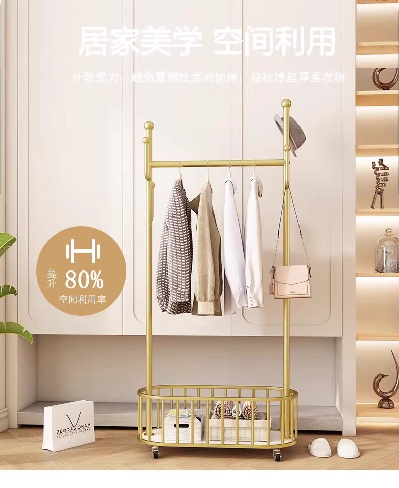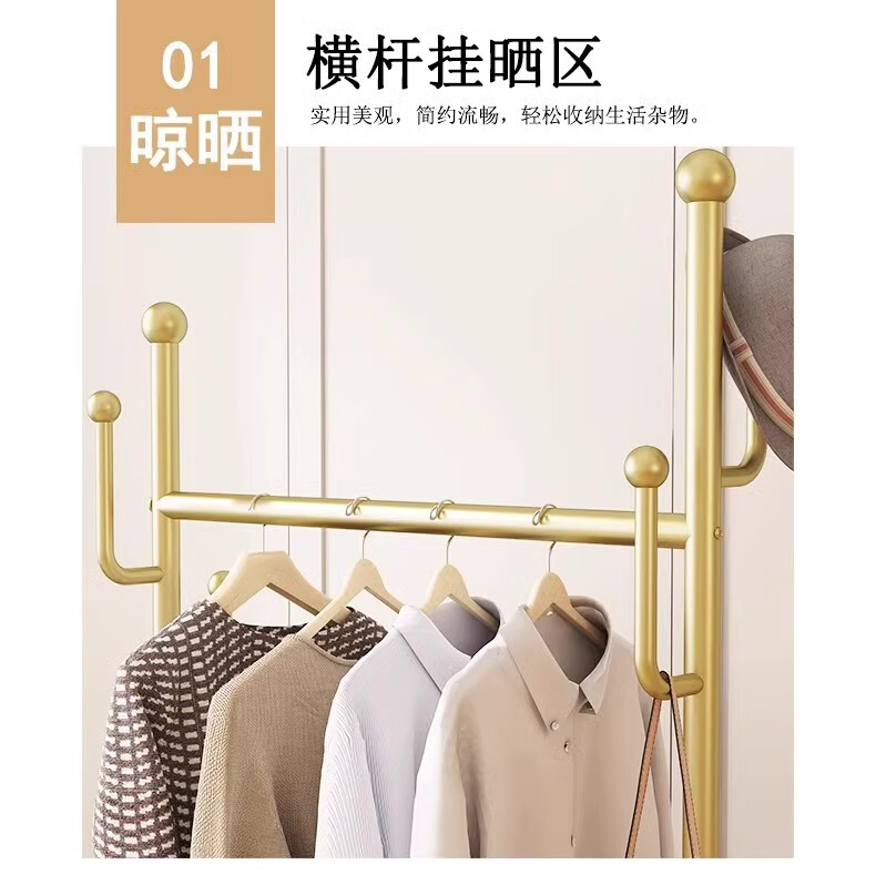 馨婺家衣架落地卧室挂衣架可移动家用房间晾衣架室内衣服架子简易衣帽架 金色-加粗管径【长60cm】