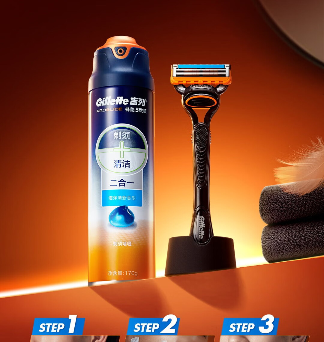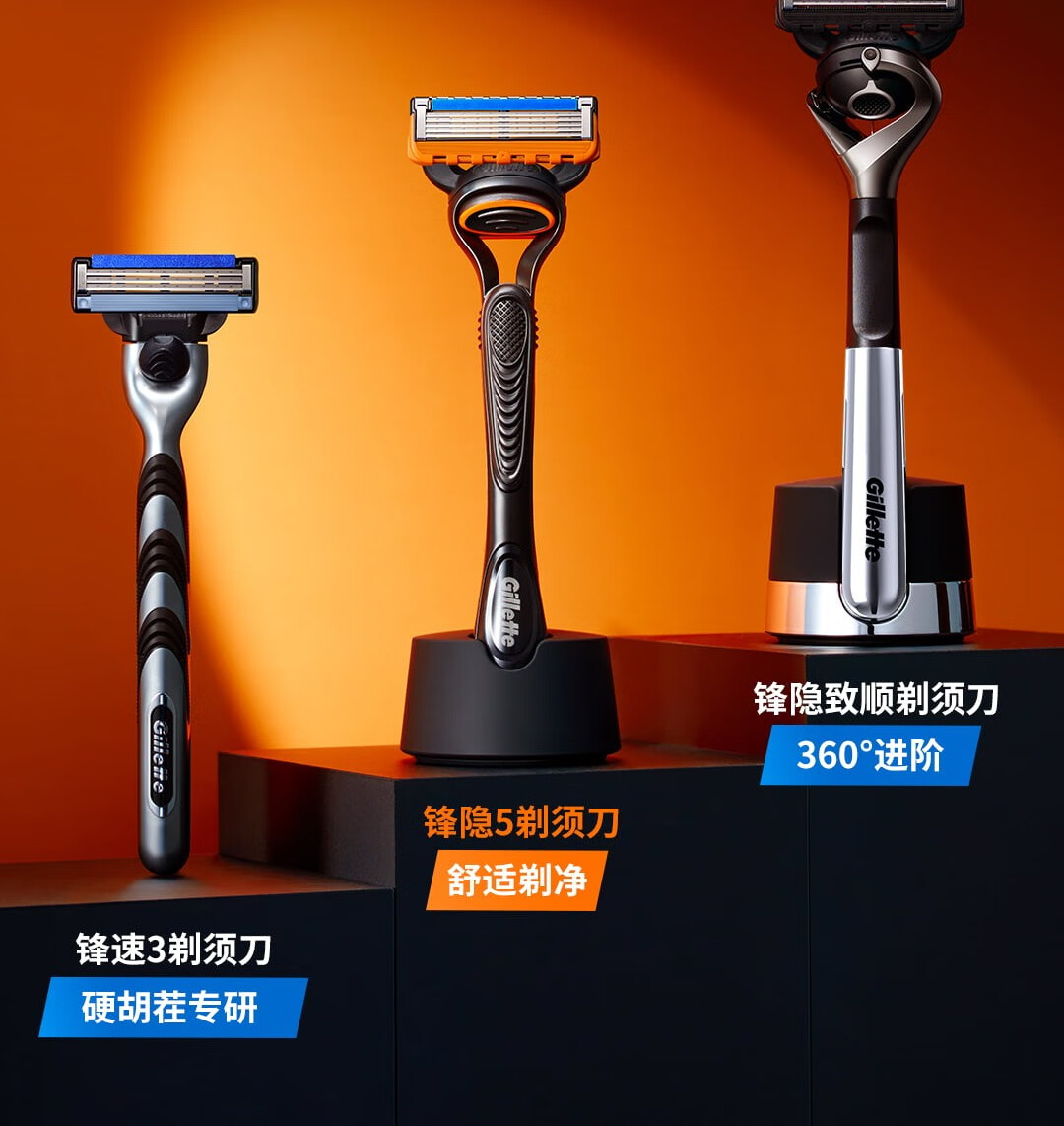吉列锋隐5基础 剃刮胡须刀手动差旅便携款 1刀架7刀头 5层刀片男士情人节礼物 京东自营旗舰非吉利 防刮伤免须泡