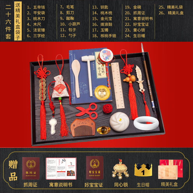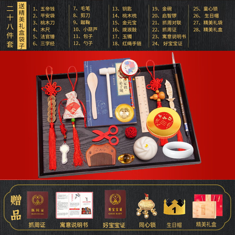 抓周道具用品一周岁中式装饰布置周岁抓阄T型毯全套摆件宝宝婴儿仪式1 1周岁T型毯
