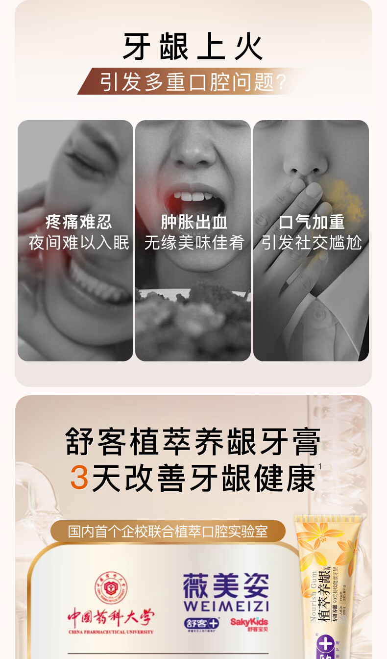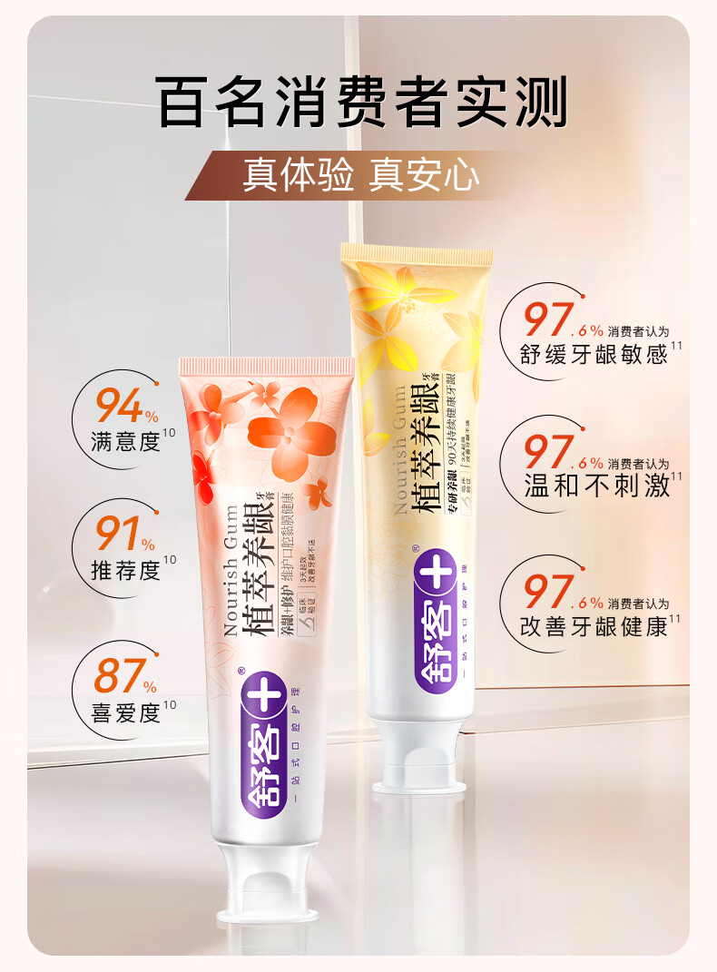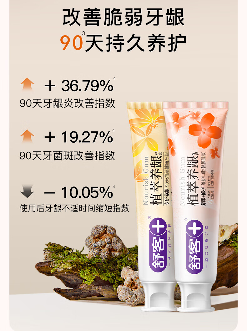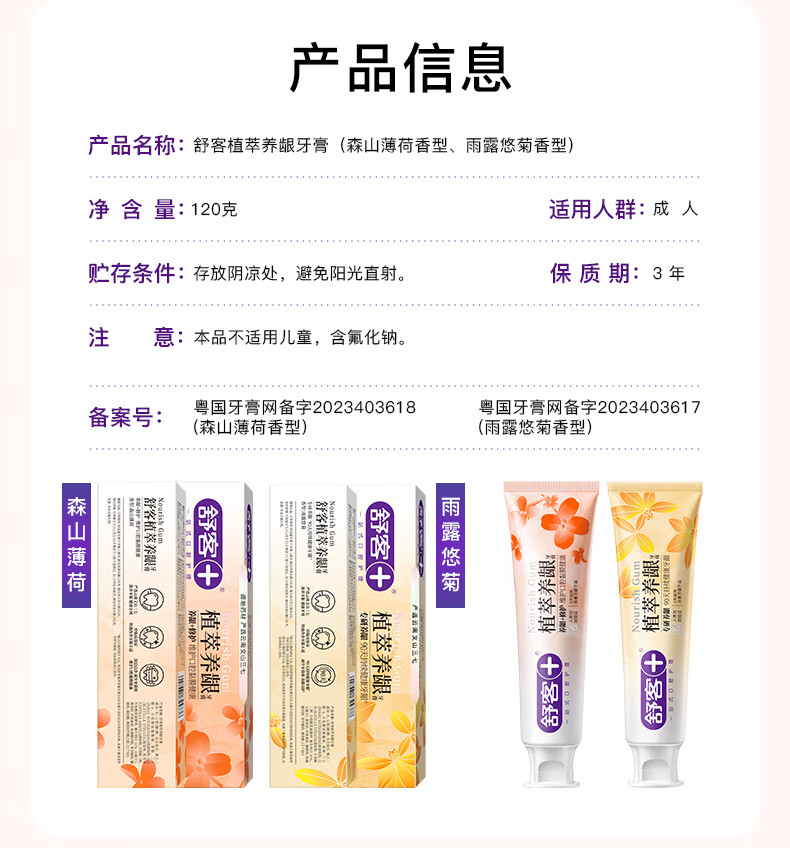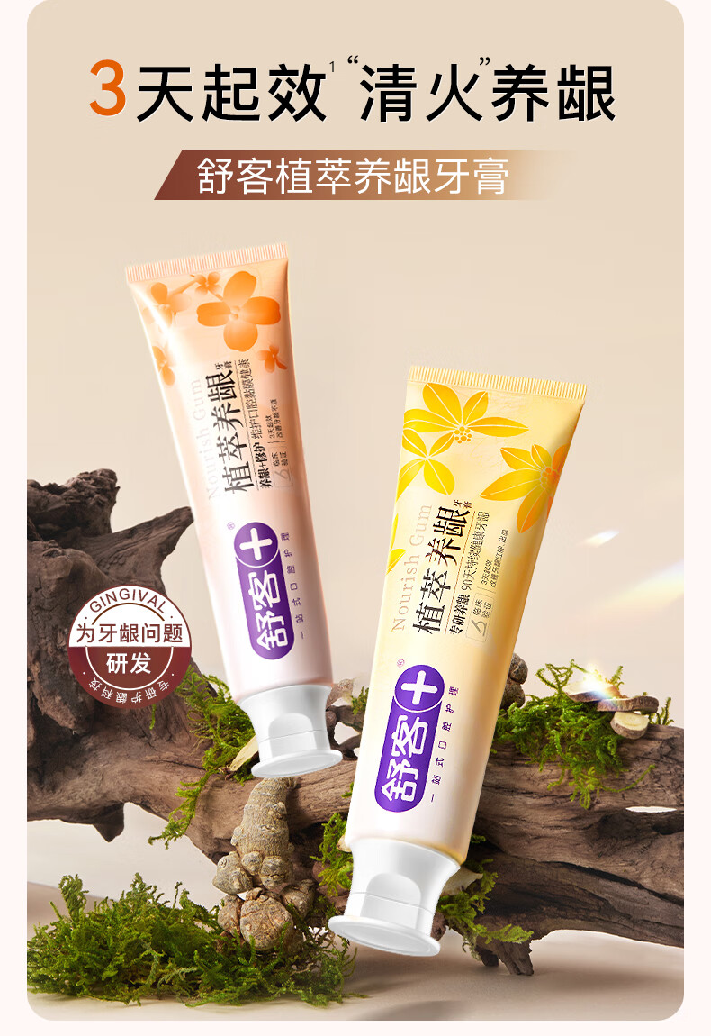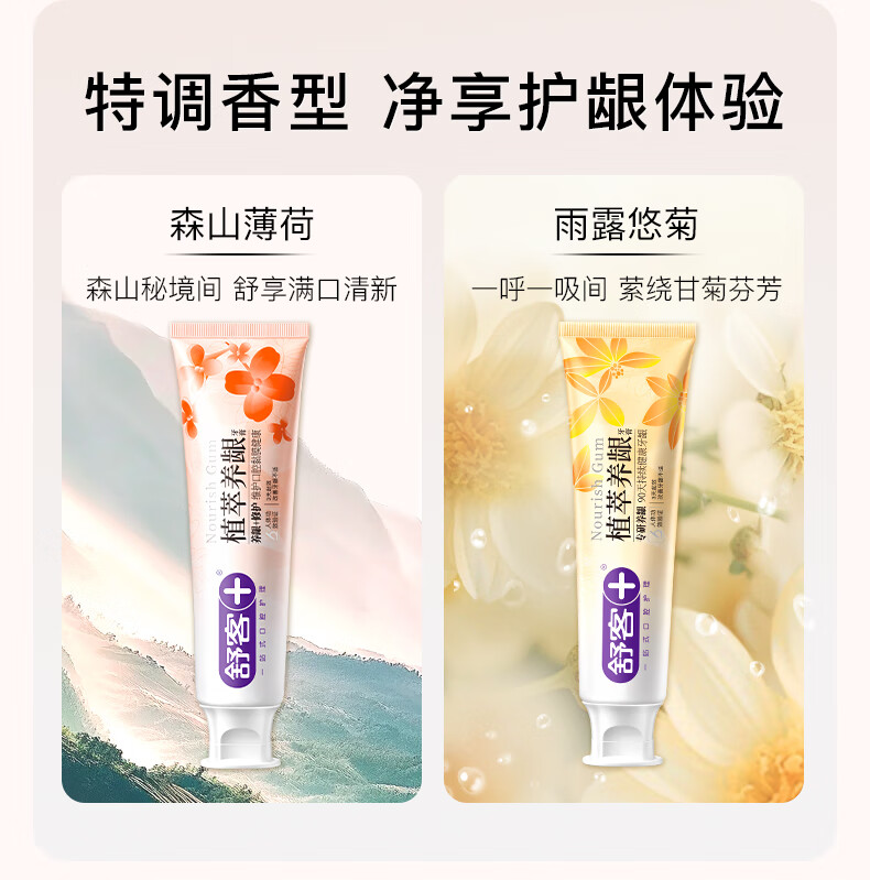 舒客植萃养龈牙膏 清火护龈改善牙龈修护120g*4悠菊薄荷味新旧随机发