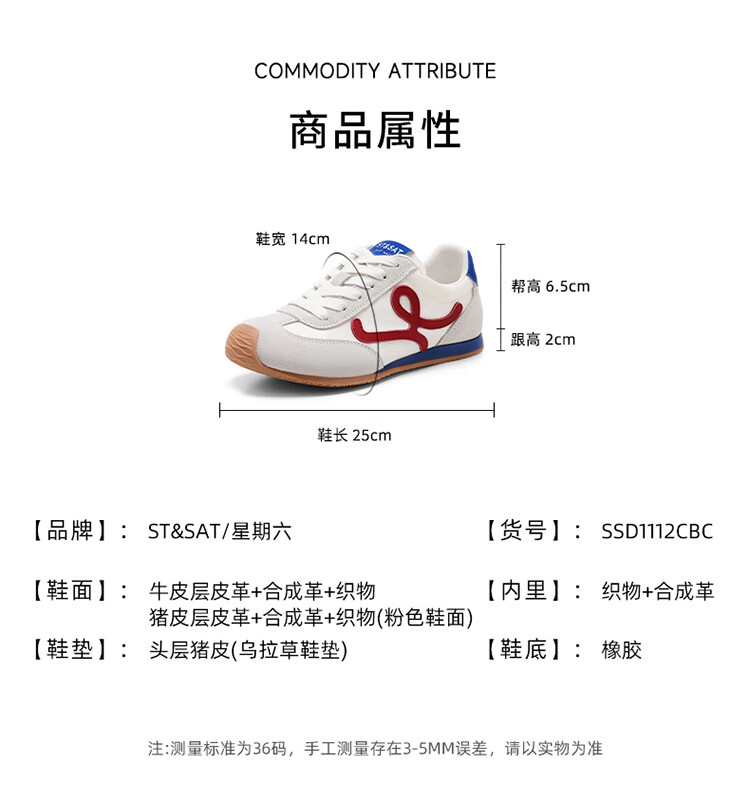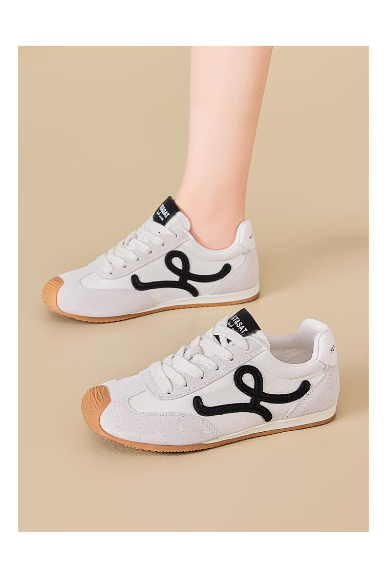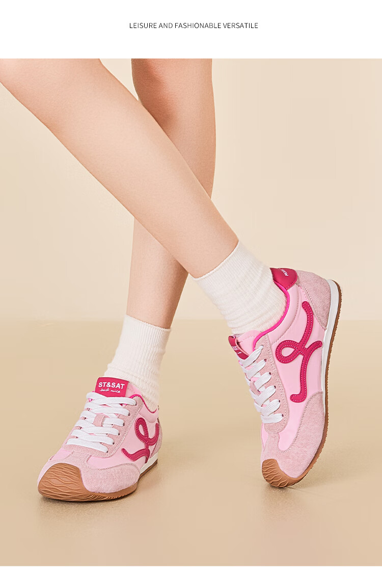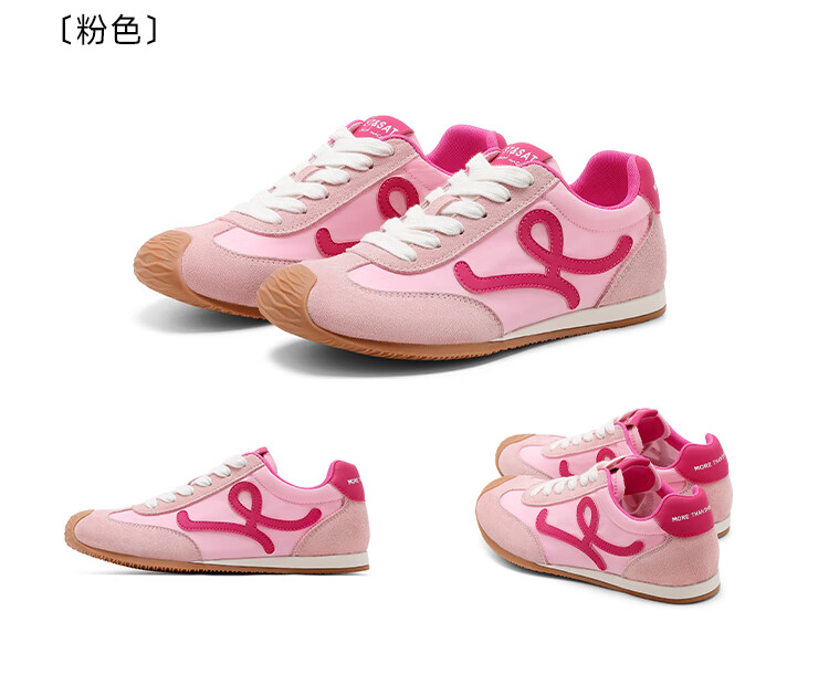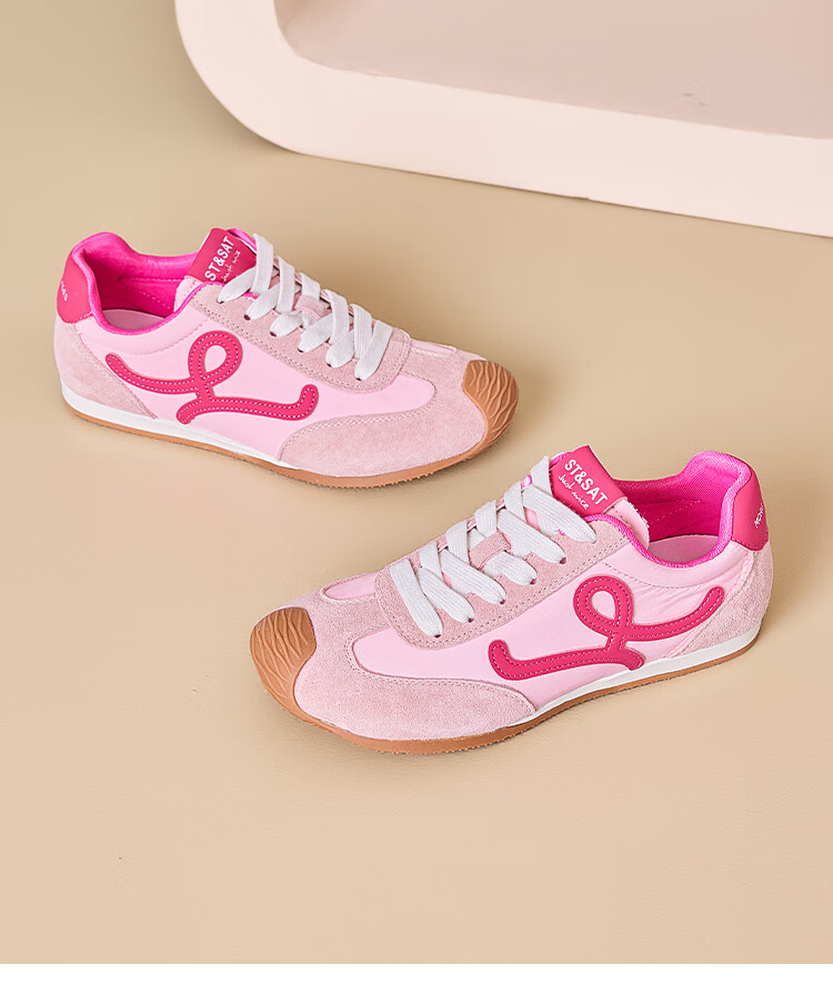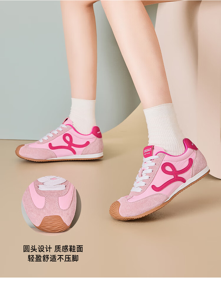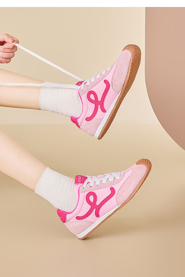 星期六粉色德训鞋女平底阿甘单鞋2025秋季新款女鞋复古休闲运动鞋子 粉色 35