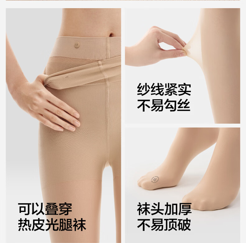 蕉内热皮5系女士袜子保暖光腿神器连裤袜自然隐形丝袜防勾丝秋冬季1双 【轻暖|连脚款】裸肤 (替换装) 1条 均码 S-M