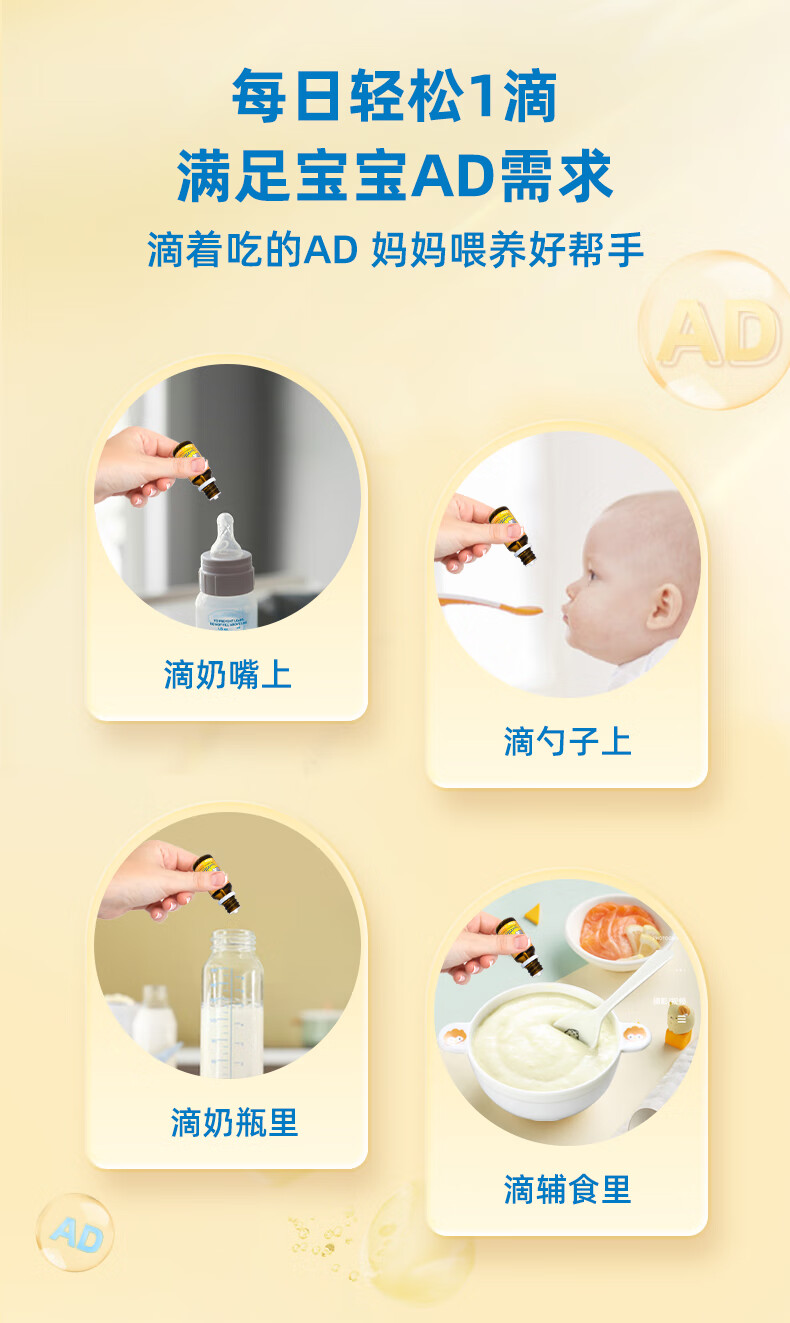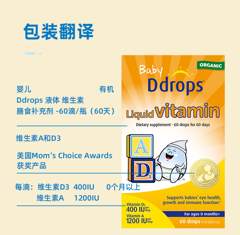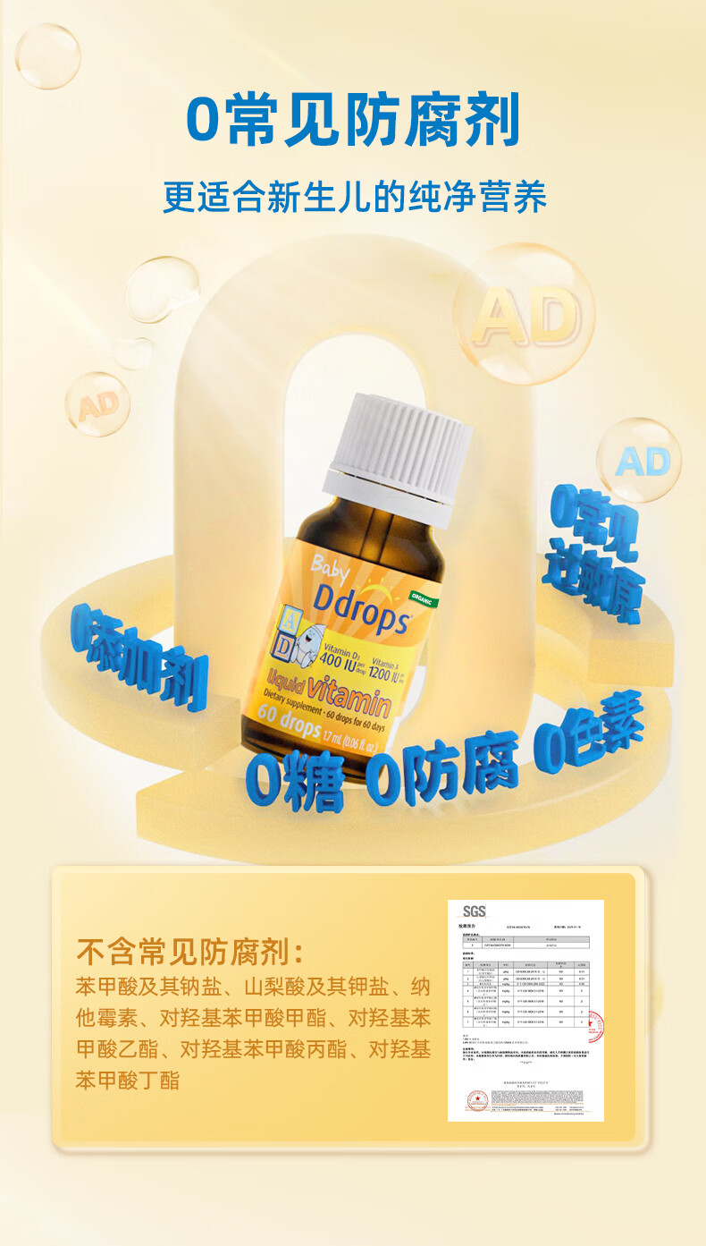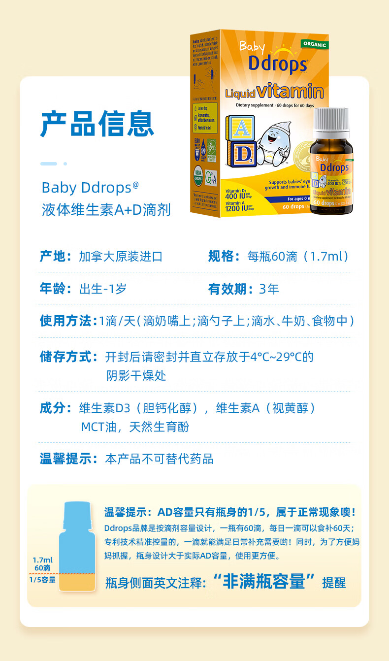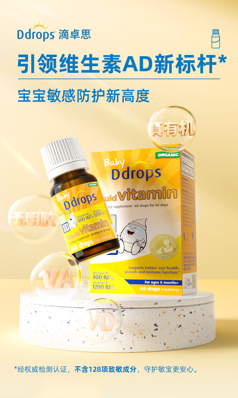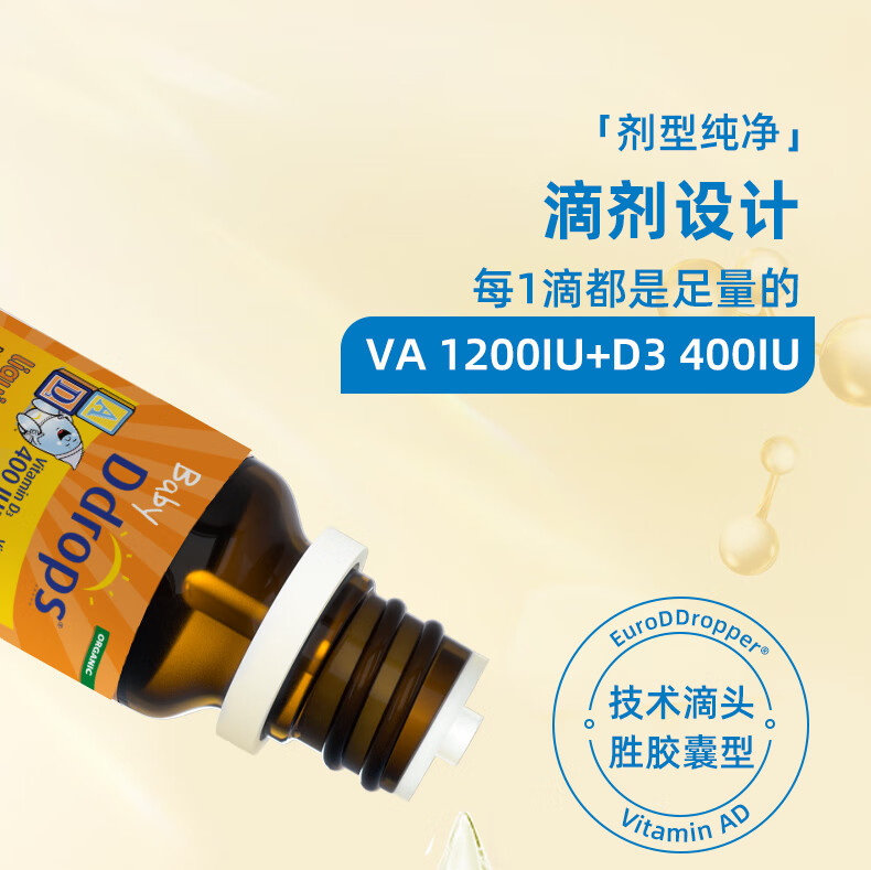 Ddrops滴卓思 新生婴幼儿童营养维生素AD滴剂vd3 初生0-1岁 1.7ml 400IU