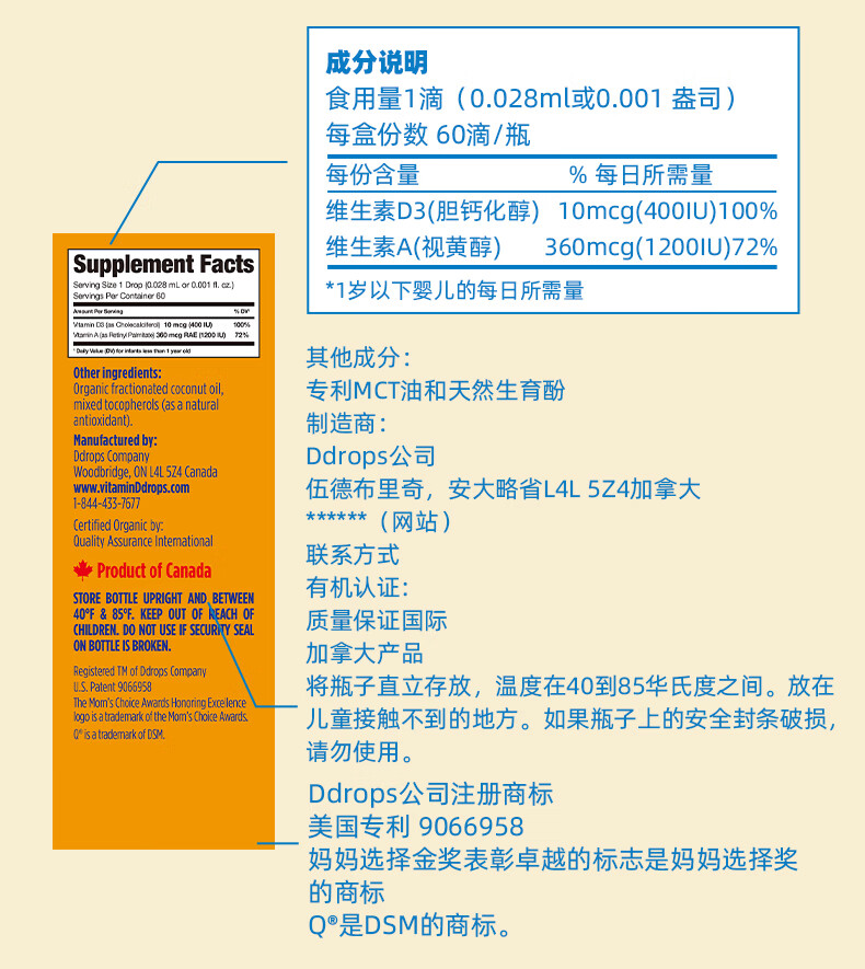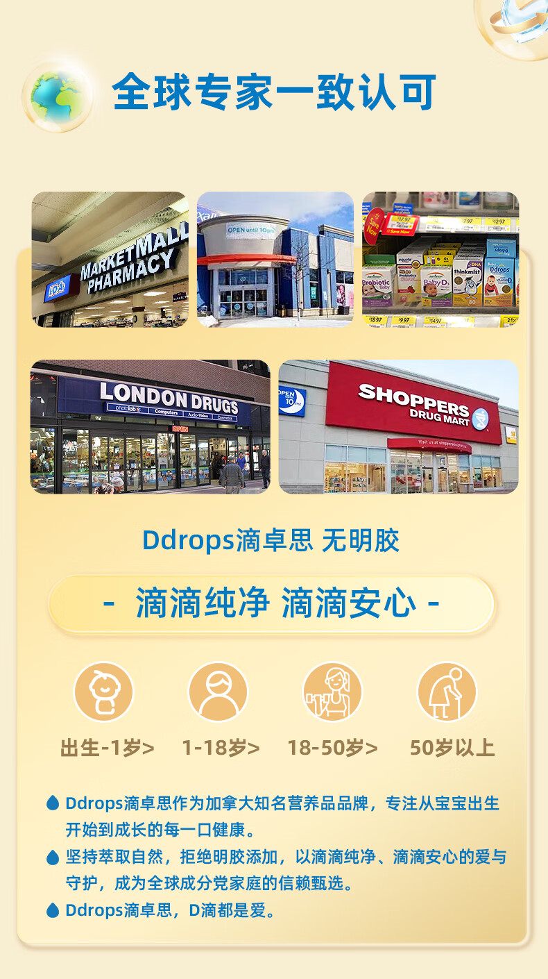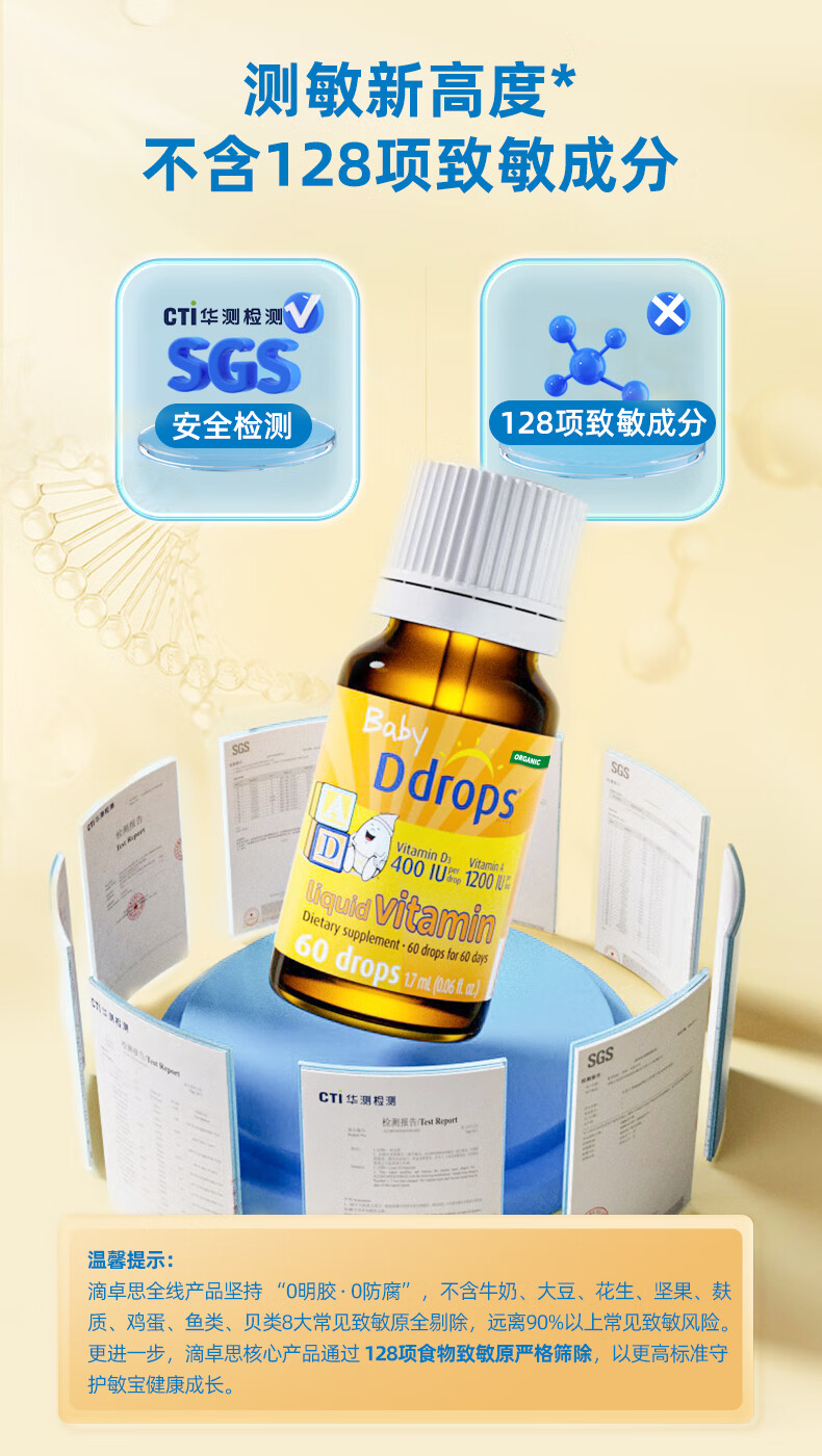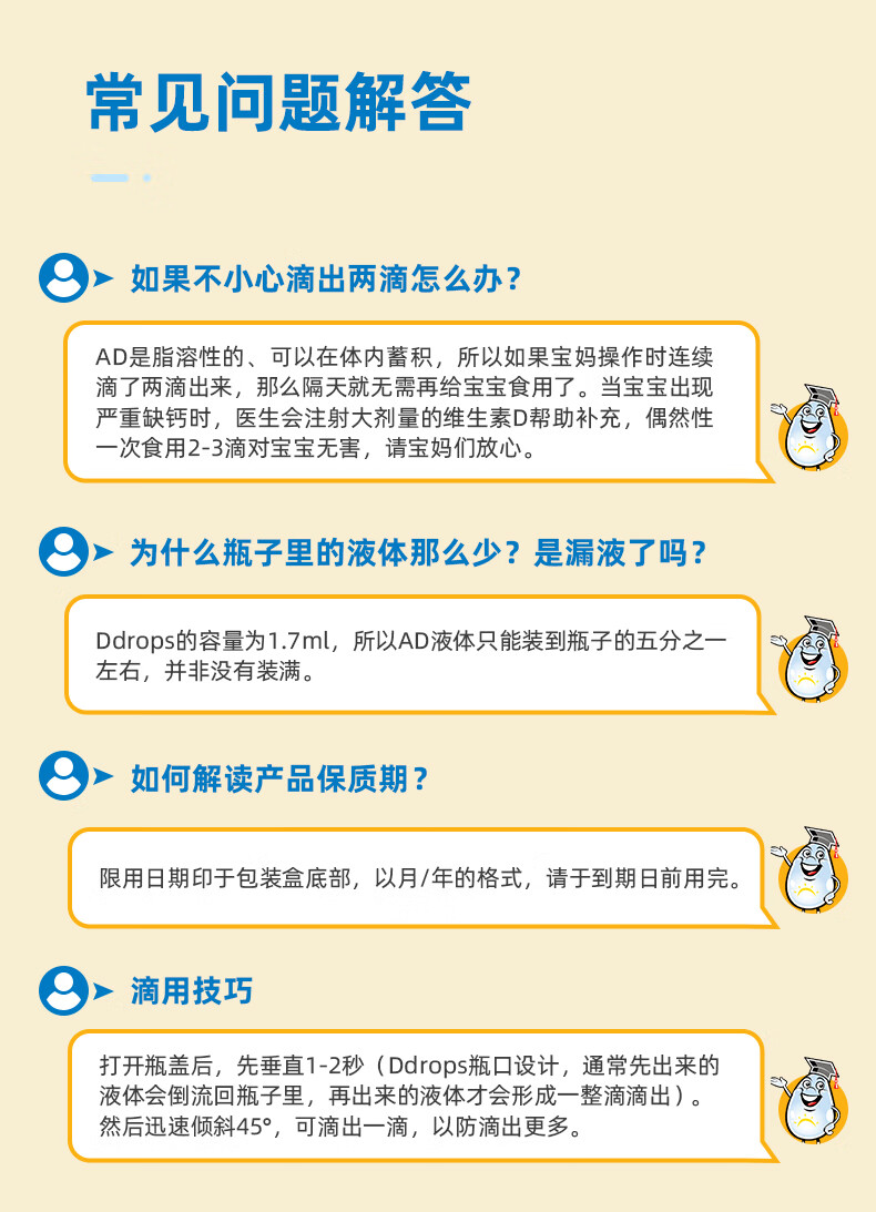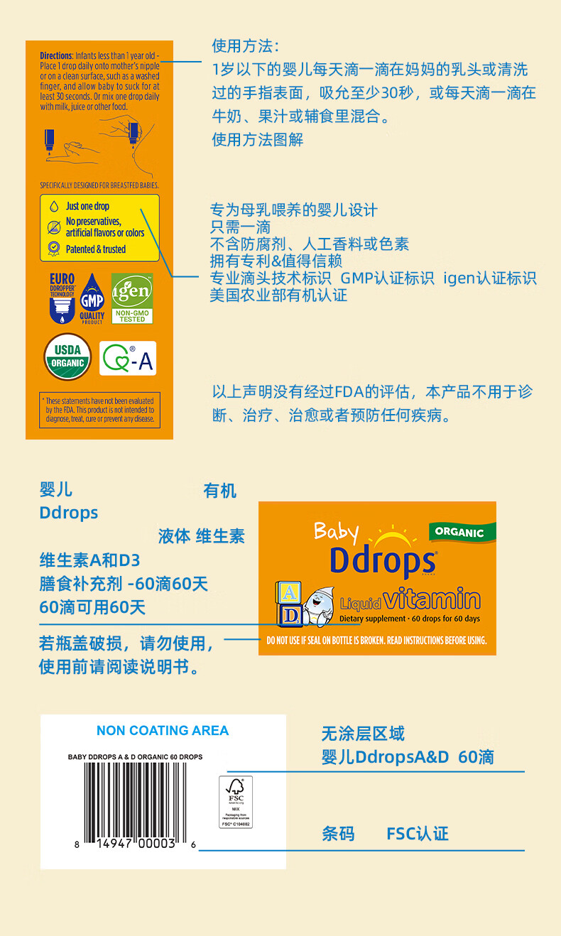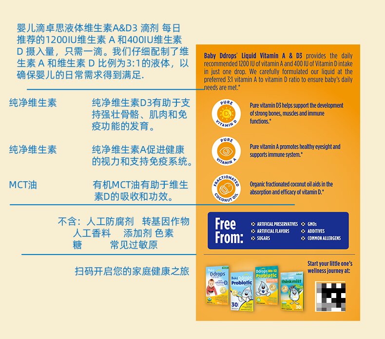 Ddrops滴卓思 新生婴幼儿童营养维生素AD滴剂vd3 初生0-1岁 1.7ml 400IU