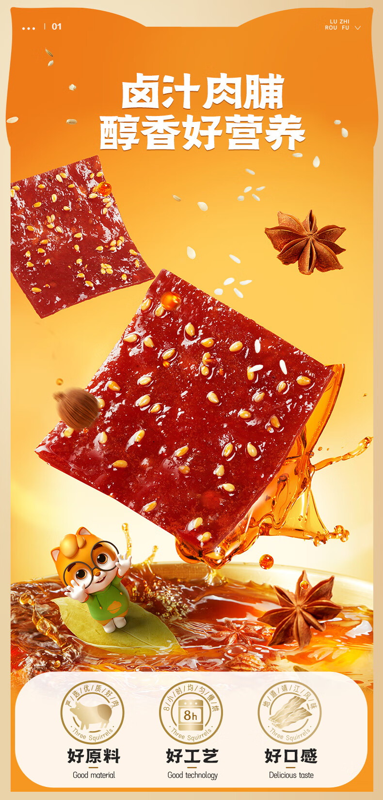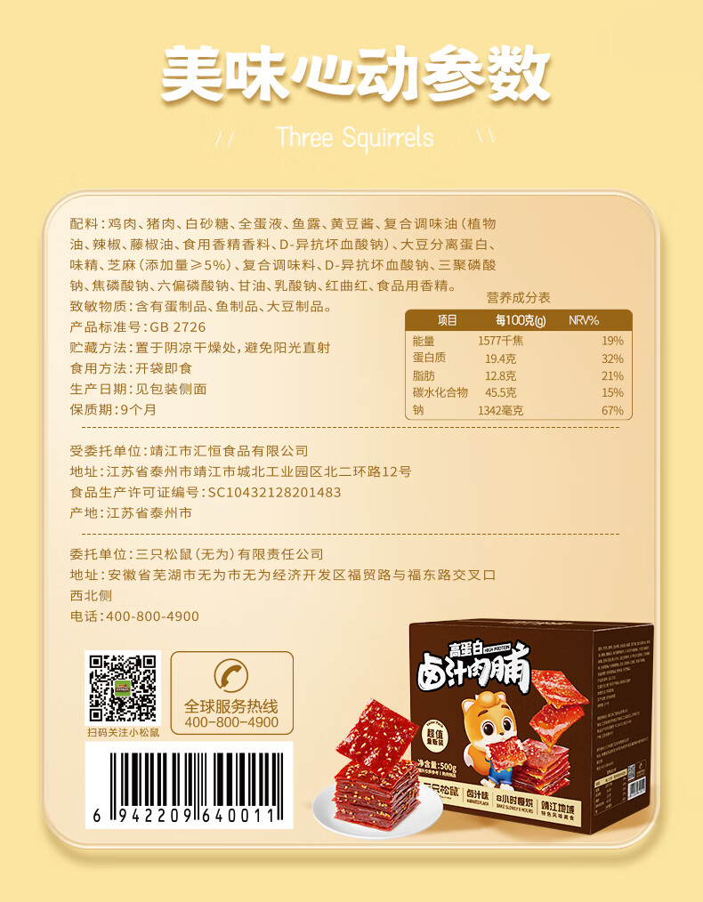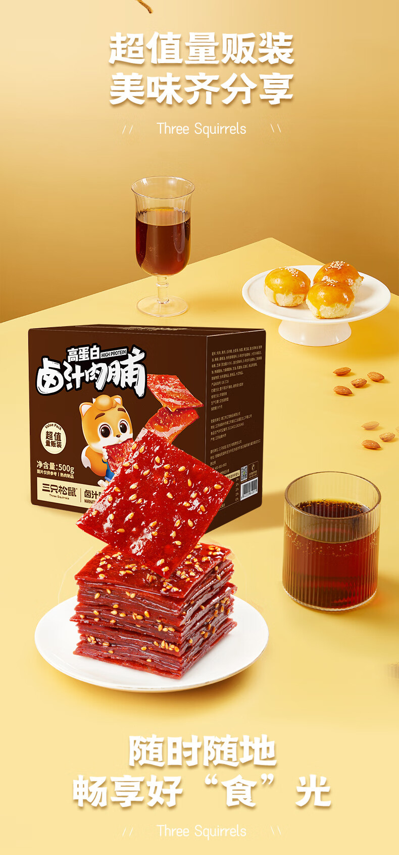 三只松鼠卤汁肉脯500g卤香味箱装休闲零食高蛋白猪肉脯即食解馋年货送礼
