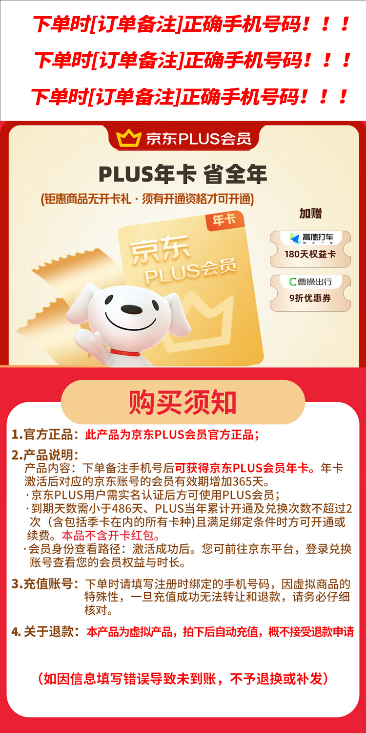 【直充到账】京东PLUS年卡会员12个月一年plus会员直充365天