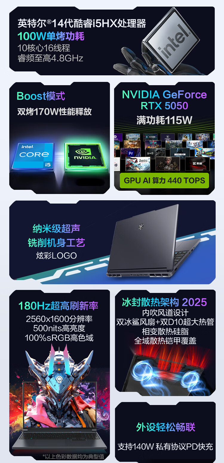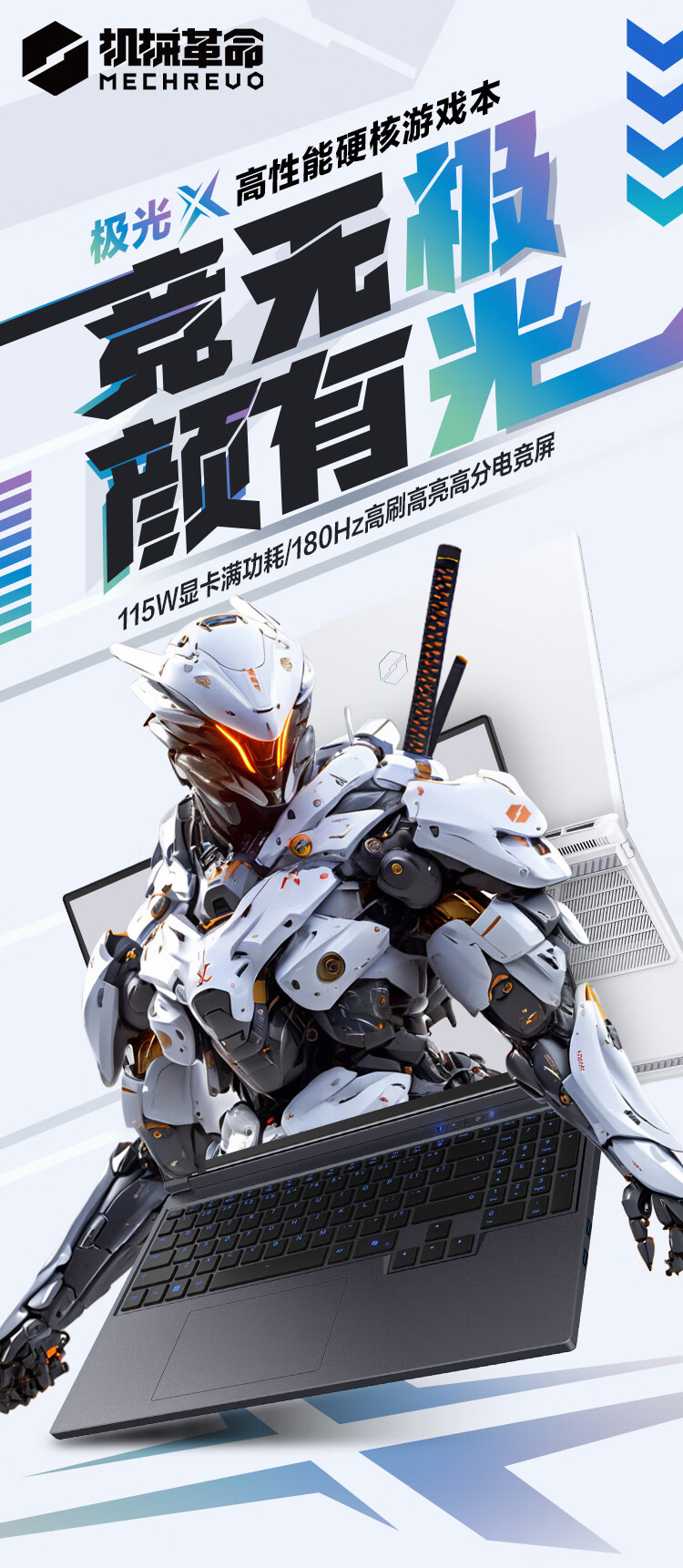 机械革命极光 X 酷睿i5HX 游戏本笔记本电脑(i5-14450HX 16G 512G RTX5050 2.5K屏 180Hz 灰)