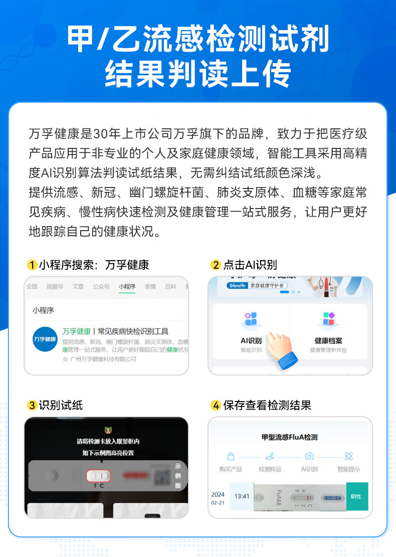万孚甲流乙流流感检测试剂 甲型乙型新冠抗原检测试剂盒 非支原体