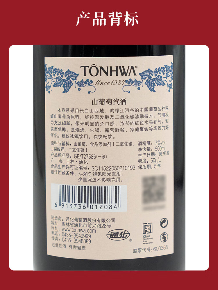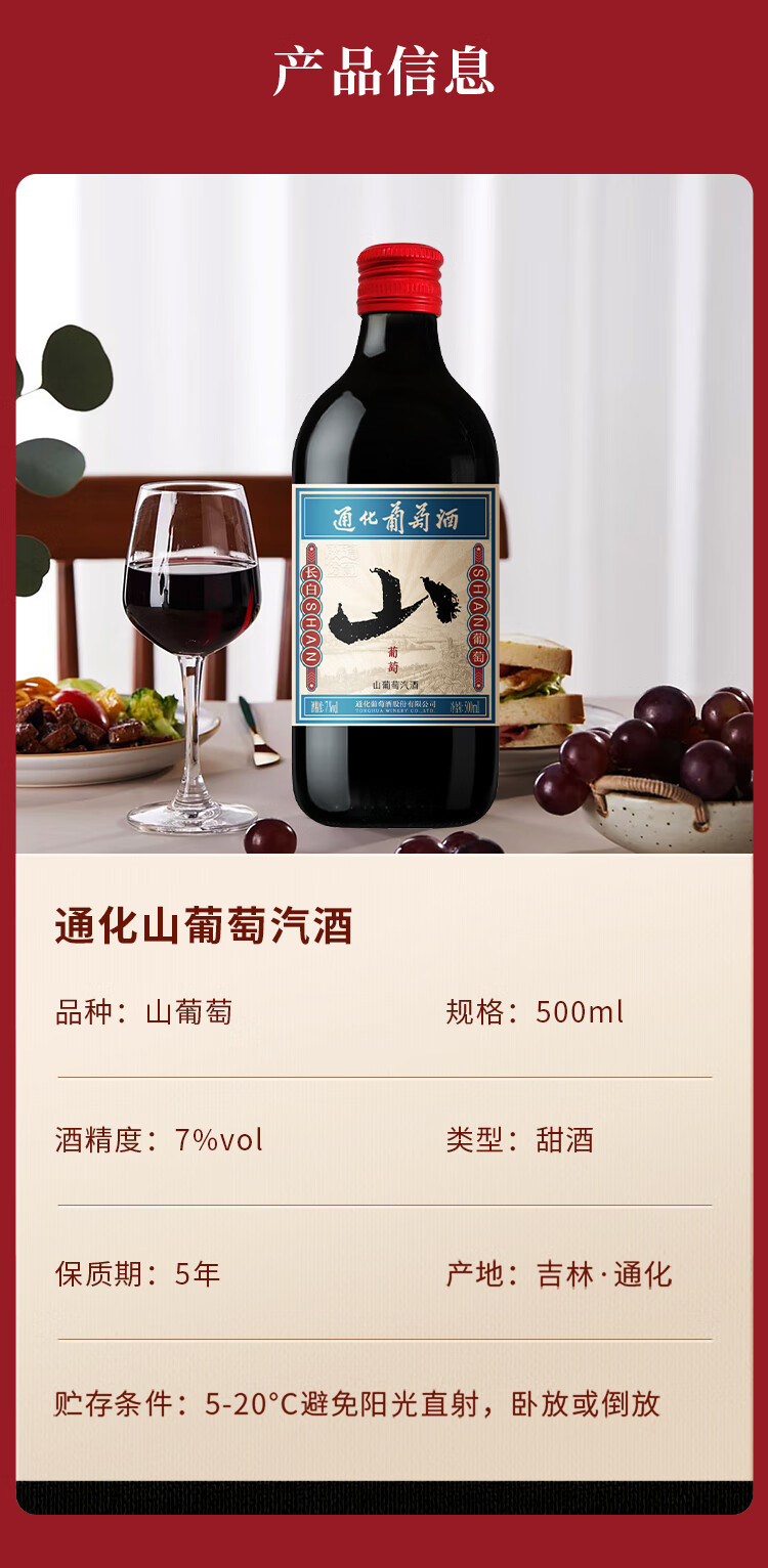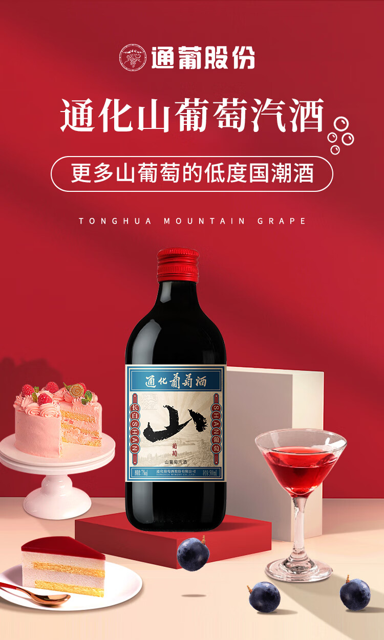 通化山葡萄气泡酒7%vol起泡酒 红酒500ml单瓶葡萄酒果酒新老包装交替