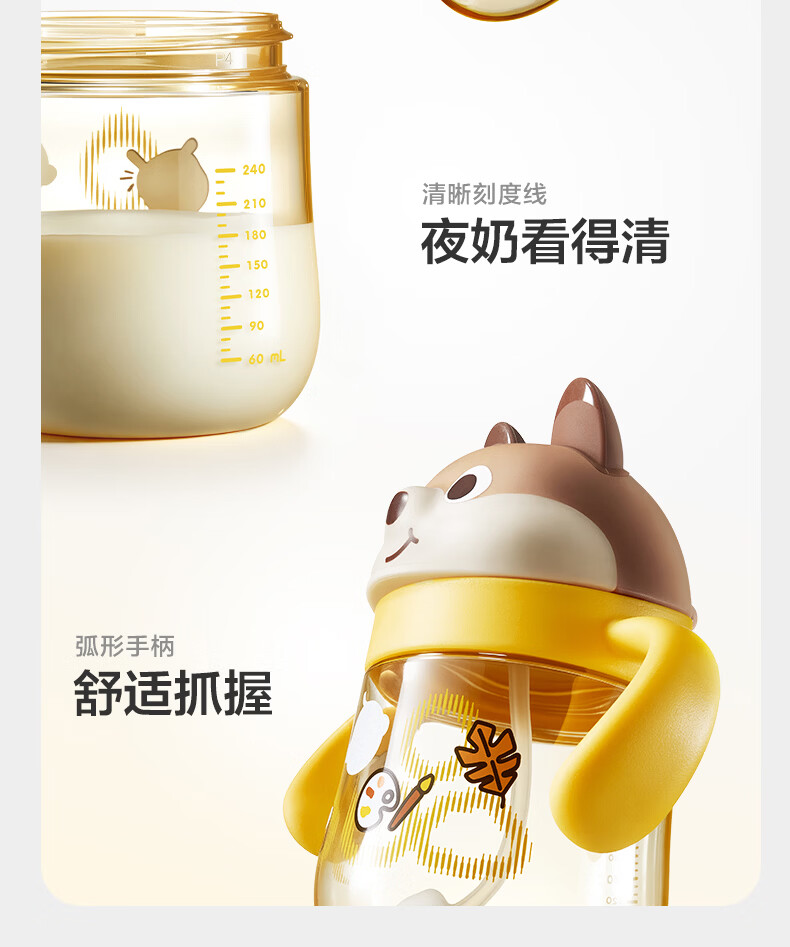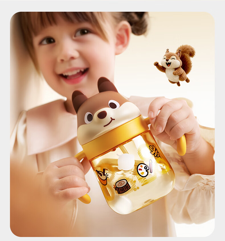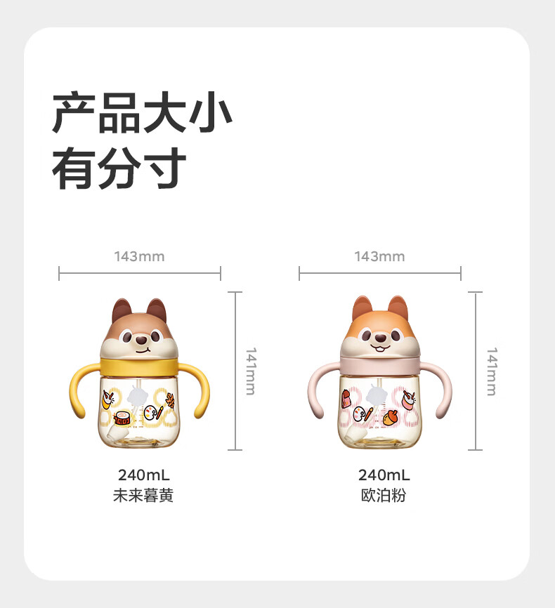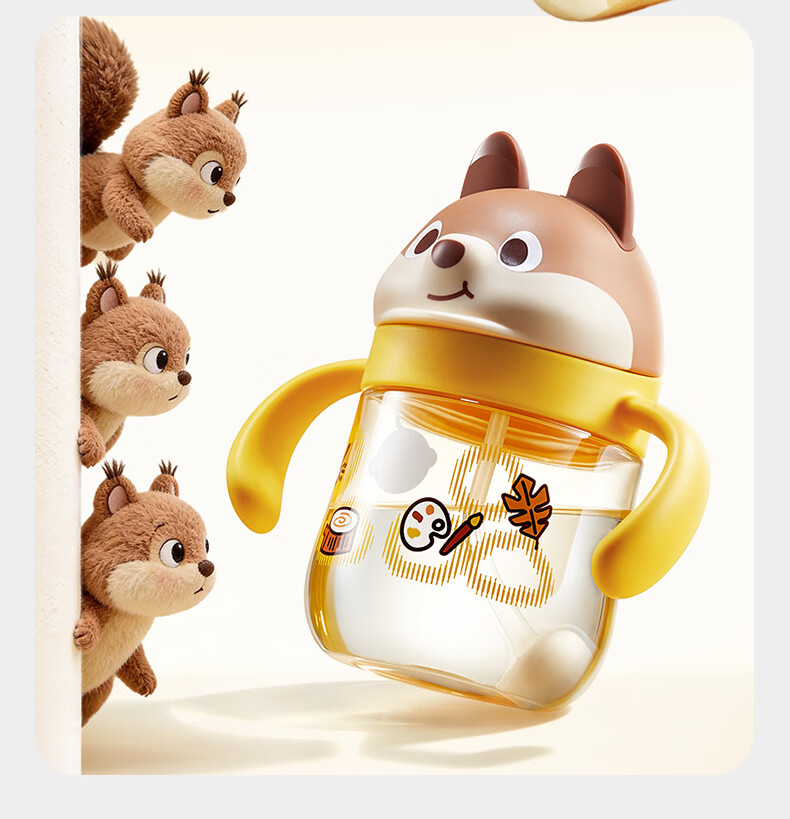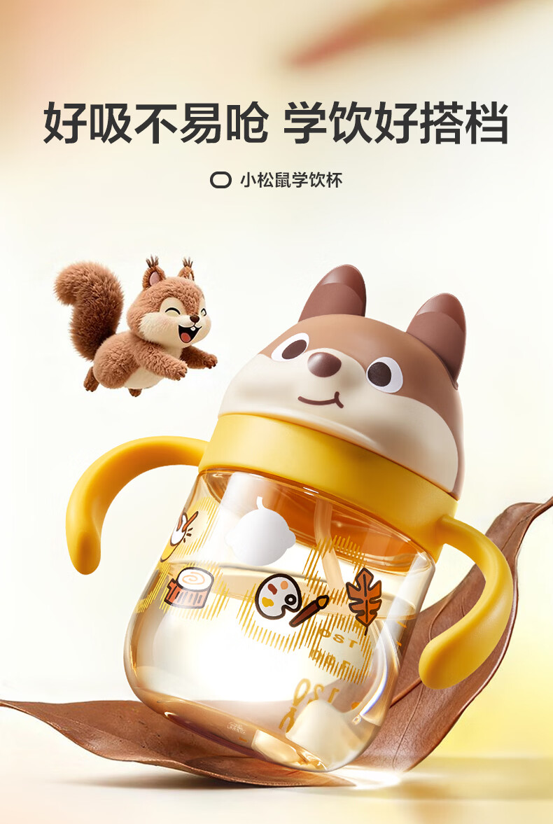 babycare小松鼠儿童水杯学饮杯宝宝吸管杯防呛夏季水壶未来暮黄PPSU240ml