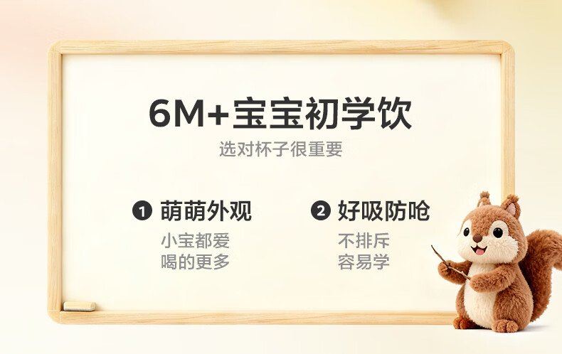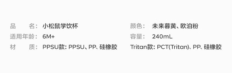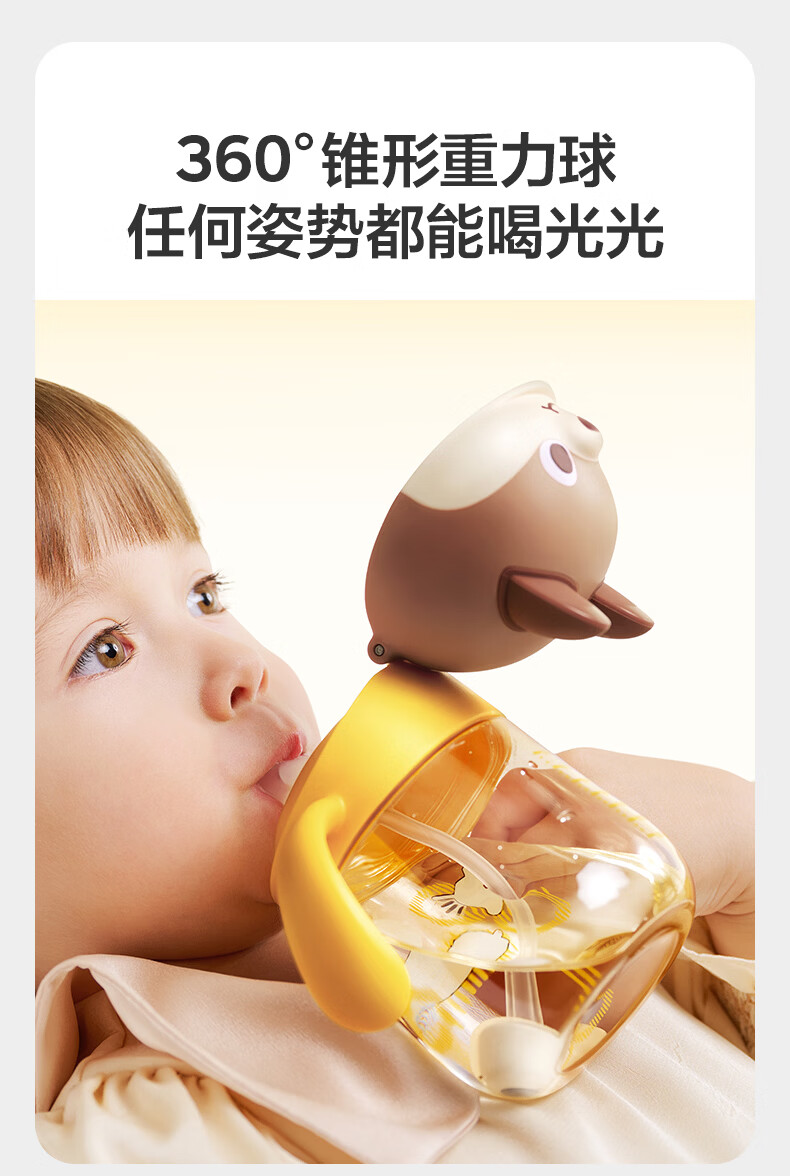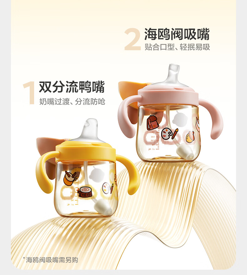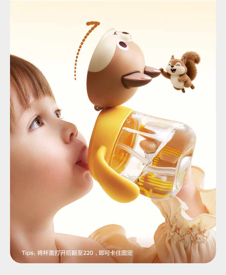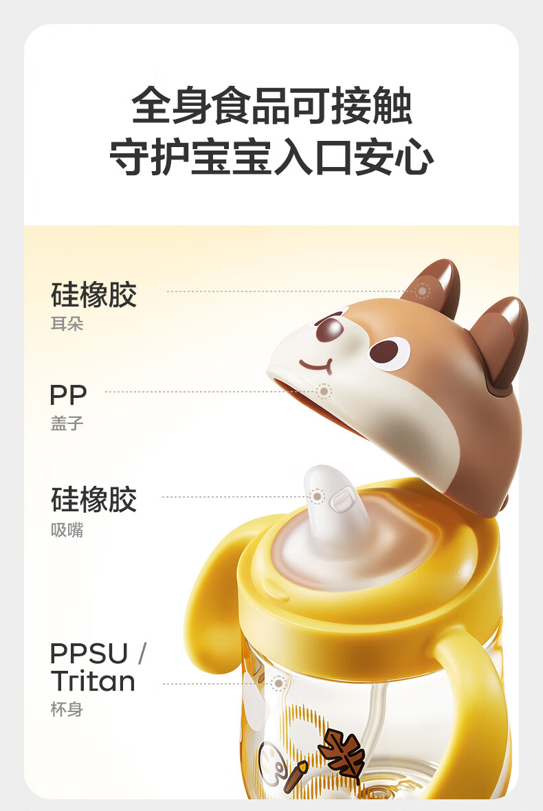 babycare小松鼠儿童水杯学饮杯宝宝吸管杯防呛夏季水壶未来暮黄PPSU240ml