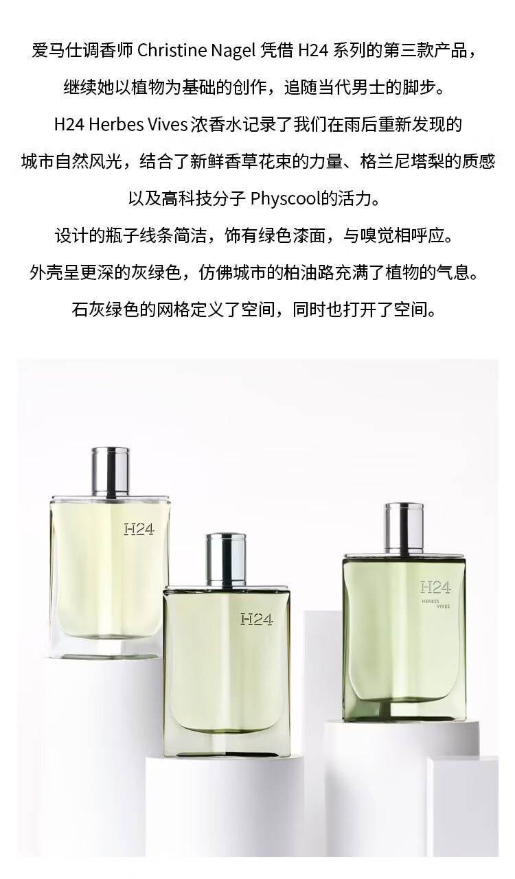 HERM'S爱马仕HERMESH24男士浓香水100mL绿叶芳香调情人节新年礼物送男友 100ML+礼盒礼袋