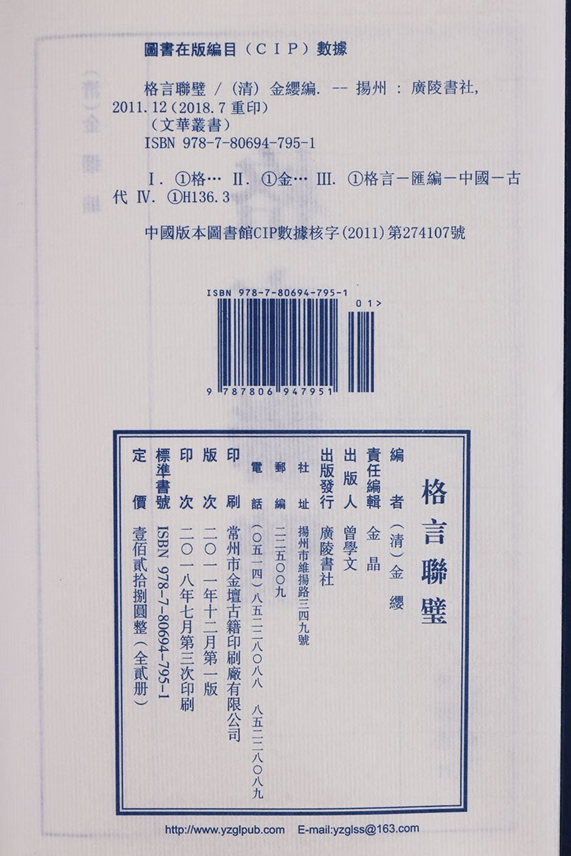 线装书 格言联璧 宣纸古籍 繁体竖排(一函二册)广陵书社