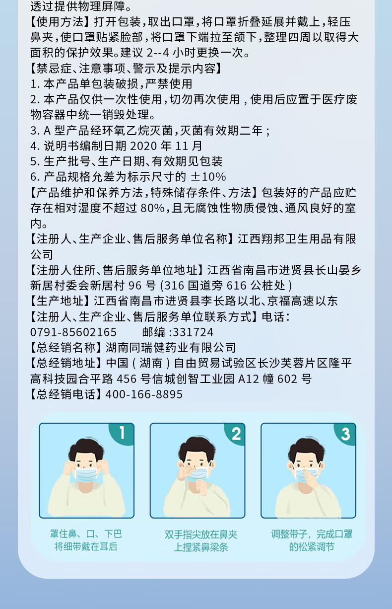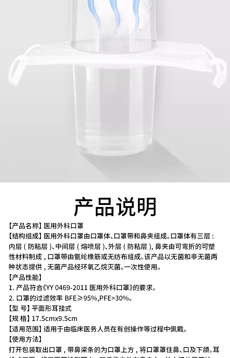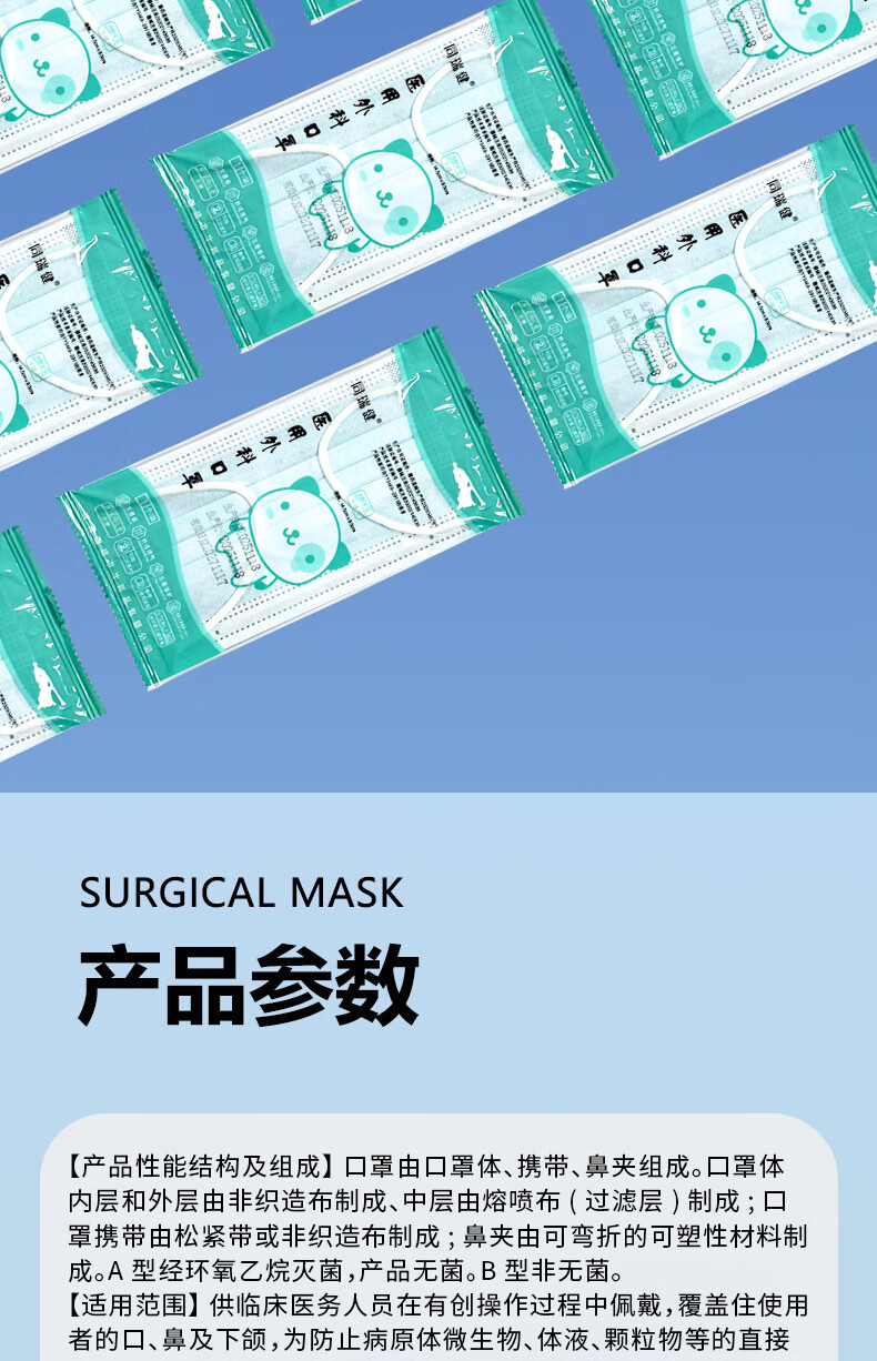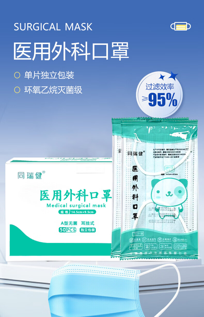 同瑞健一次性医用外科口罩灭菌 独立包装无菌成人/儿童口罩三层防护口罩 成人口罩50只*2盒装【共100只】