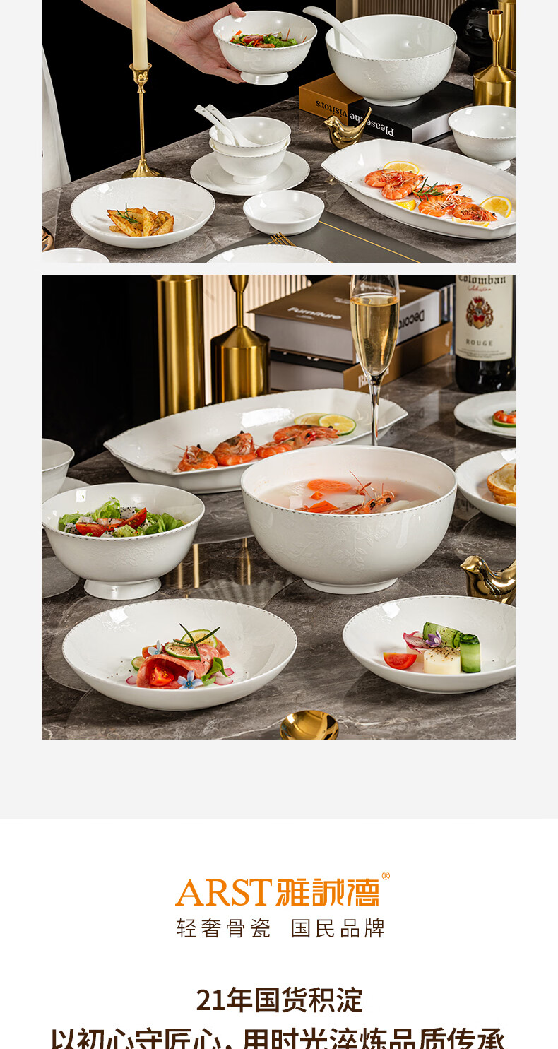 ARST雅誠德骨瓷餐具陶瓷套装简约家用碗具乔迁碗筷盘子高颜值整套贴花礼盒装 二人食10件套【高档骨瓷】