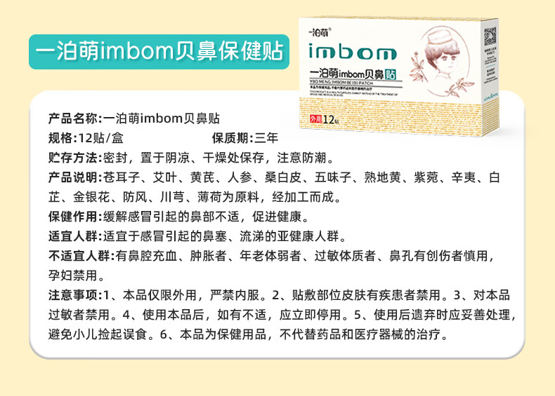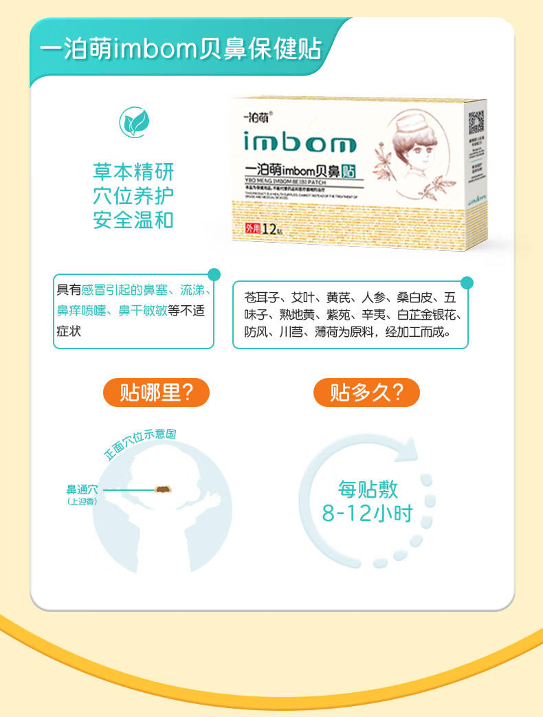 一泊萌【官方】穴位贴化痰贴 消食贴 鼻贴草本植物贴 一泊萌贝鼻贴