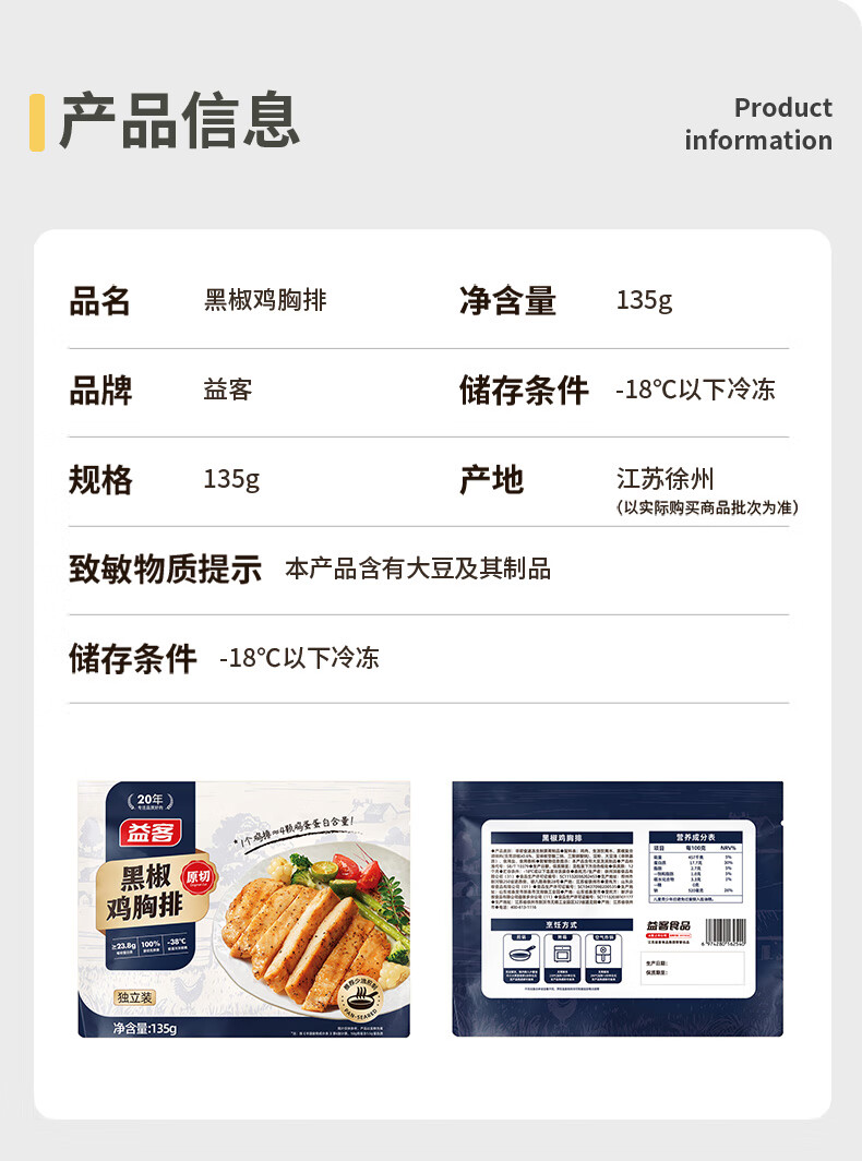 益客黑椒鸡胸排135g包半成品香煎代餐鸡胸肉生鲜冷冻轻食 135g*20袋