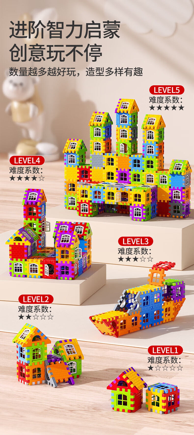 乐凑(L)儿童节礼物房子积木大颗粒益拼装玩具3-6岁立体智力拼图男女孩 【赠收纳盒】体验版130片可开窗